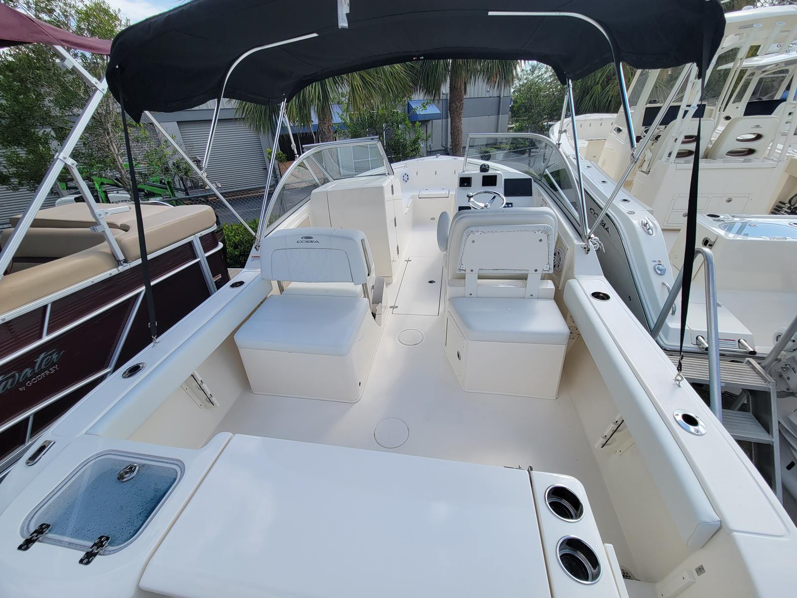 The 2024 Cobia 220 DC is a new addition to the celebrated Cobia lineup, measuring an impressive 21.58 feet in length. This dual console boat is designed to offer a perfect balance between spaciousness and maneuverability, making it ideal for a wide range of boating activities. The Cobia 220 DC’s modern profile, combined with its robust construction, ensures a smooth and enjoyable ride in various water conditions. As a new model, it boasts the latest advancements in marine technology and design, making it a standout choice for anyone seeking a Cobia boat for sale.