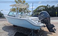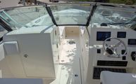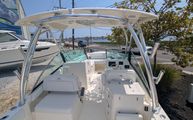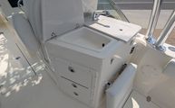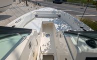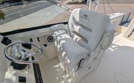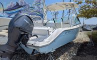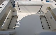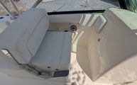 The most feature-packed 24-foot dual console on the water! From its spacious and clean layout to its wealth of smart amenities, the Cobia 240 DC beckons you to a relaxing, sun-drenched day on the water. Dedicated seating with deluxe upholstery for nine, including a hideaway aft bench and a convertible first-mate’s chaise lounge, means everybody on board will ride in style and comfort. But just because comfort is at a premium it doesn’t mean that the serious angler is forgotten. This boat expertly melds all its soft touches with standard fishing features like dual in-floor 24-gallon fishboxes (macerators optional), a 22-gallon fully plumbed livewell, plenty of rod and tackle storage and a bait prep area with sink. Combine all this and there’s no better looking, more feature-rich and better performing 24-foot dual console on the water.