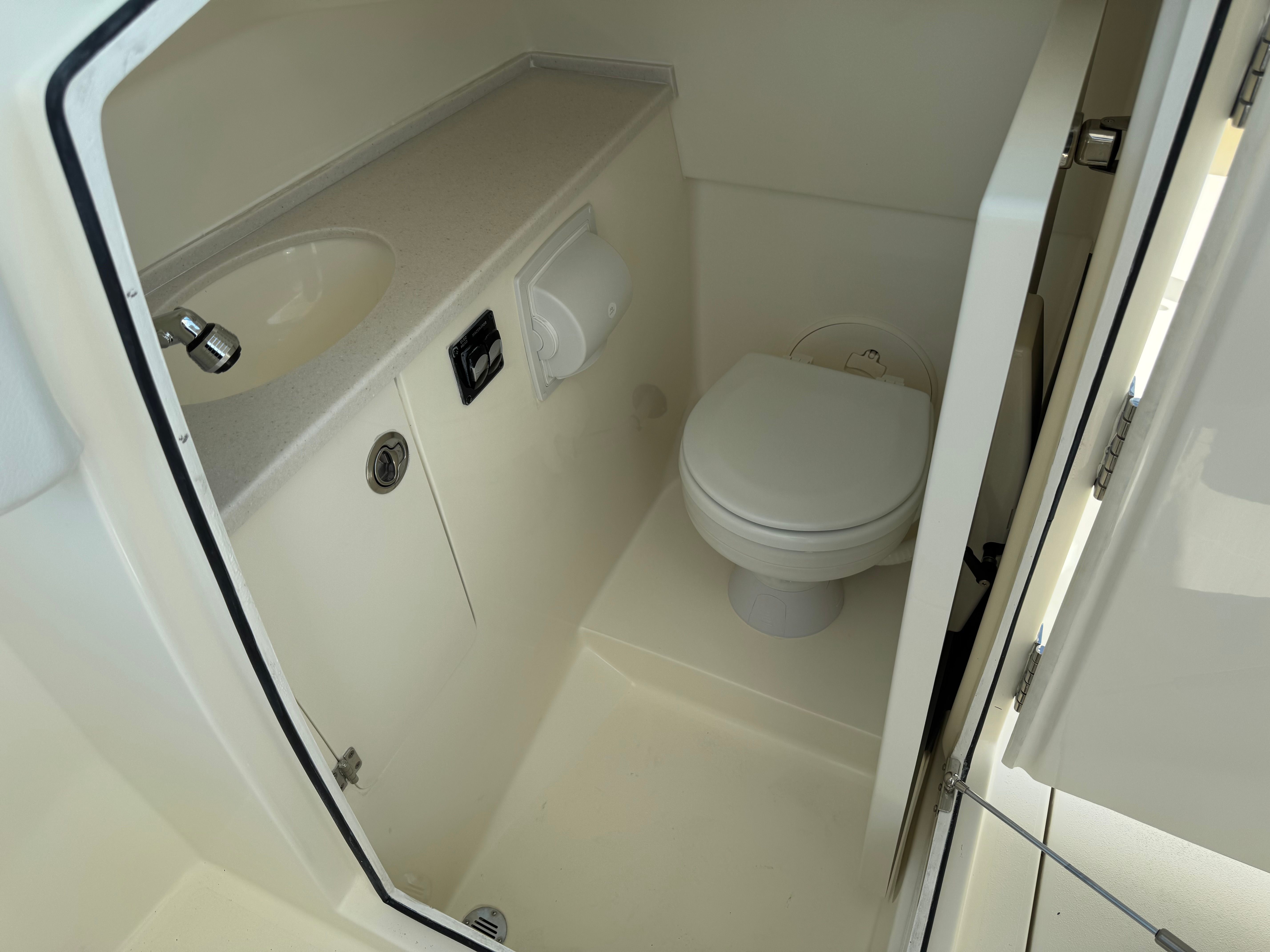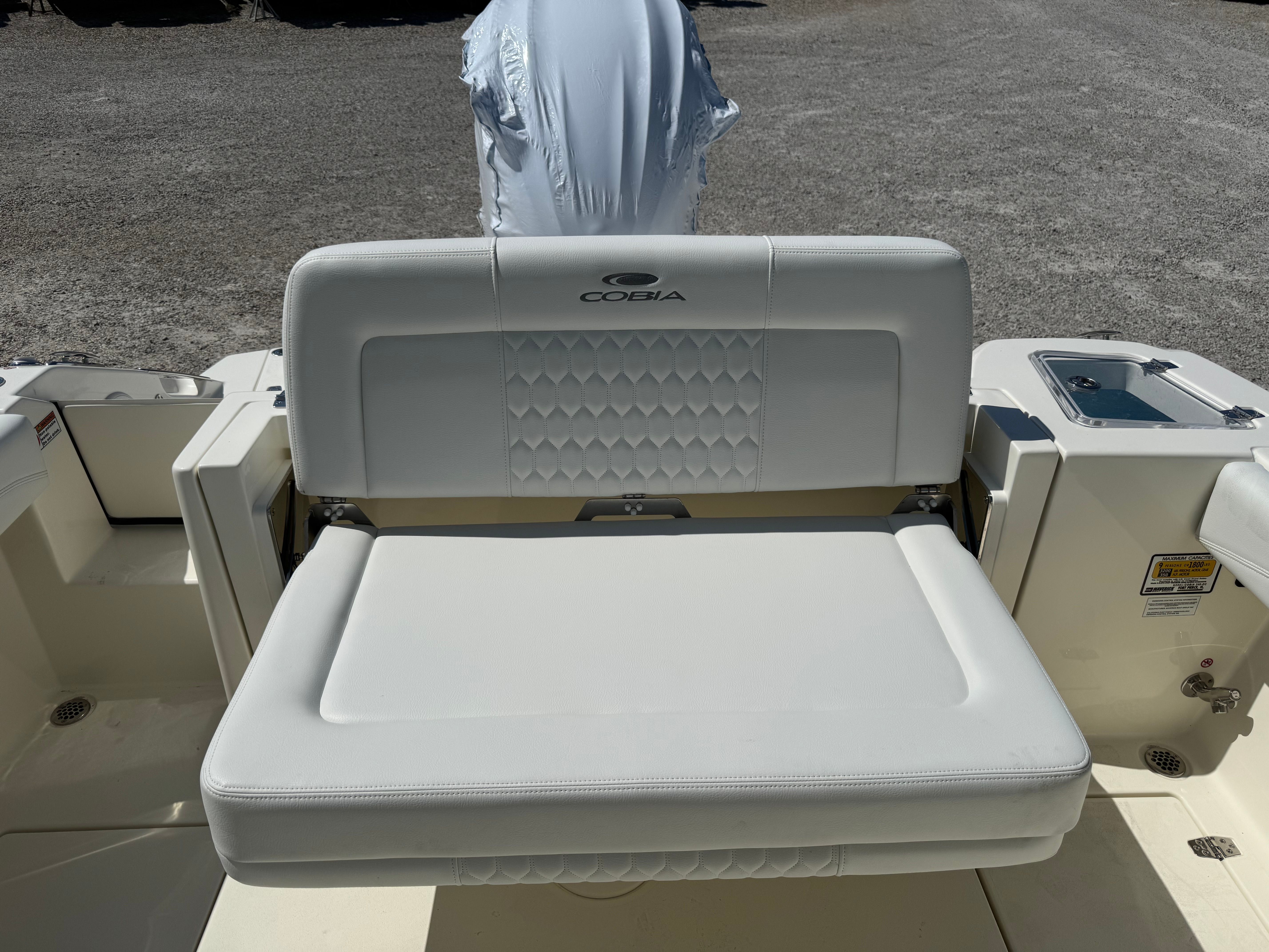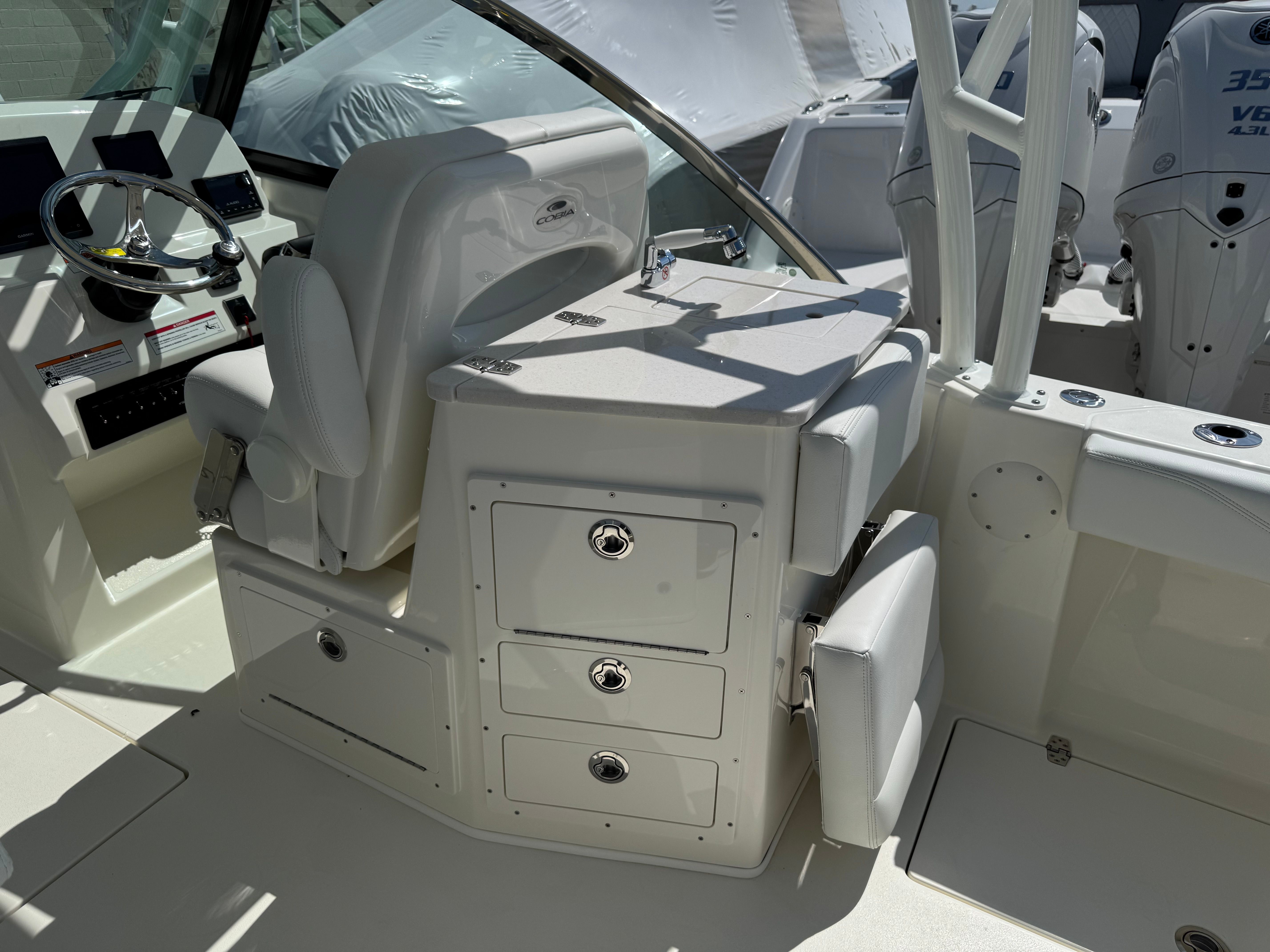 Powering the Cobia 240 DC is a single Yamaha F300NSB2 engine in a striking white finish, delivering an impressive 300 horsepower. This engine is renowned for its reliability, smooth operation, and fuel efficiency, ensuring you have the power you need for thrilling rides and long days on the water. The advanced Helm Master EX engine controls provide intuitive handling and precise maneuverability, while the Digital Electric Steering system offers effortless control at any speed. The upgraded steering wheel adds a touch of luxury and comfort, making every trip enjoyable. With this powerful setup, the Cobia 240 DC is designed to deliver exhilarating performance whether you’re cruising, fishing, or exploring new destinations.