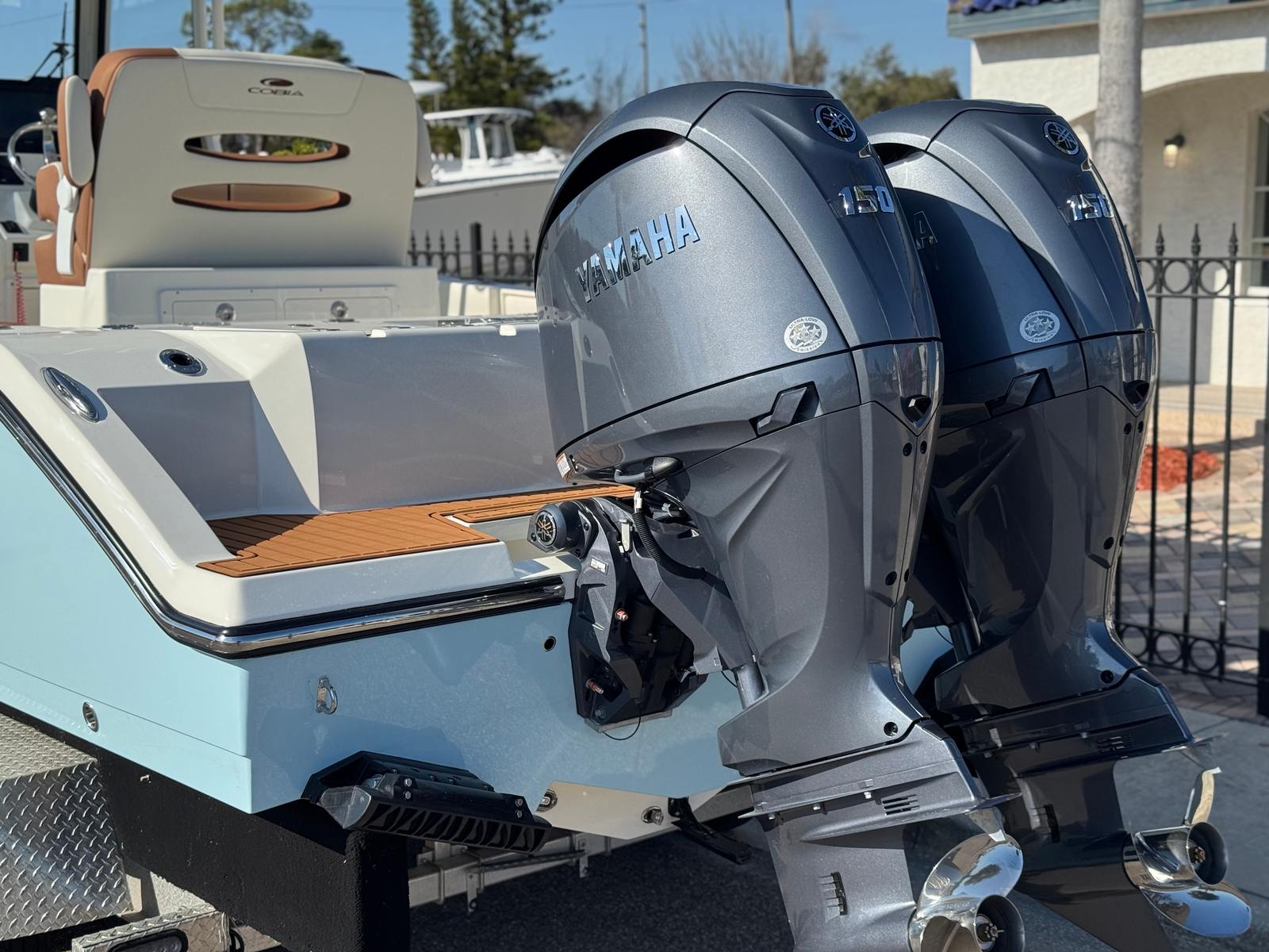The Cobia 245 CC is as practical as it is enjoyable. Its 24.5-foot length strikes the perfect balance between maneuverability and space, making it easy to dock, trailer, and store. The efficient Yamaha Twin 150XSA engines offer excellent fuel economy, so you can spend more time on the water and less time at the pump.The helm’s advanced controls, including Digital Electric Steering and Helm Master EX DES Twin, simplify navigation and docking, even in tight spaces. The durable GEM stainless steel hardware ensures longevity and low maintenance, while the ISO charger keeps your electronics powered up for extended outings. The versatile seating and storage solutions make it easy to switch between fishing, cruising, and relaxing, adapting to whatever your day on the water brings.