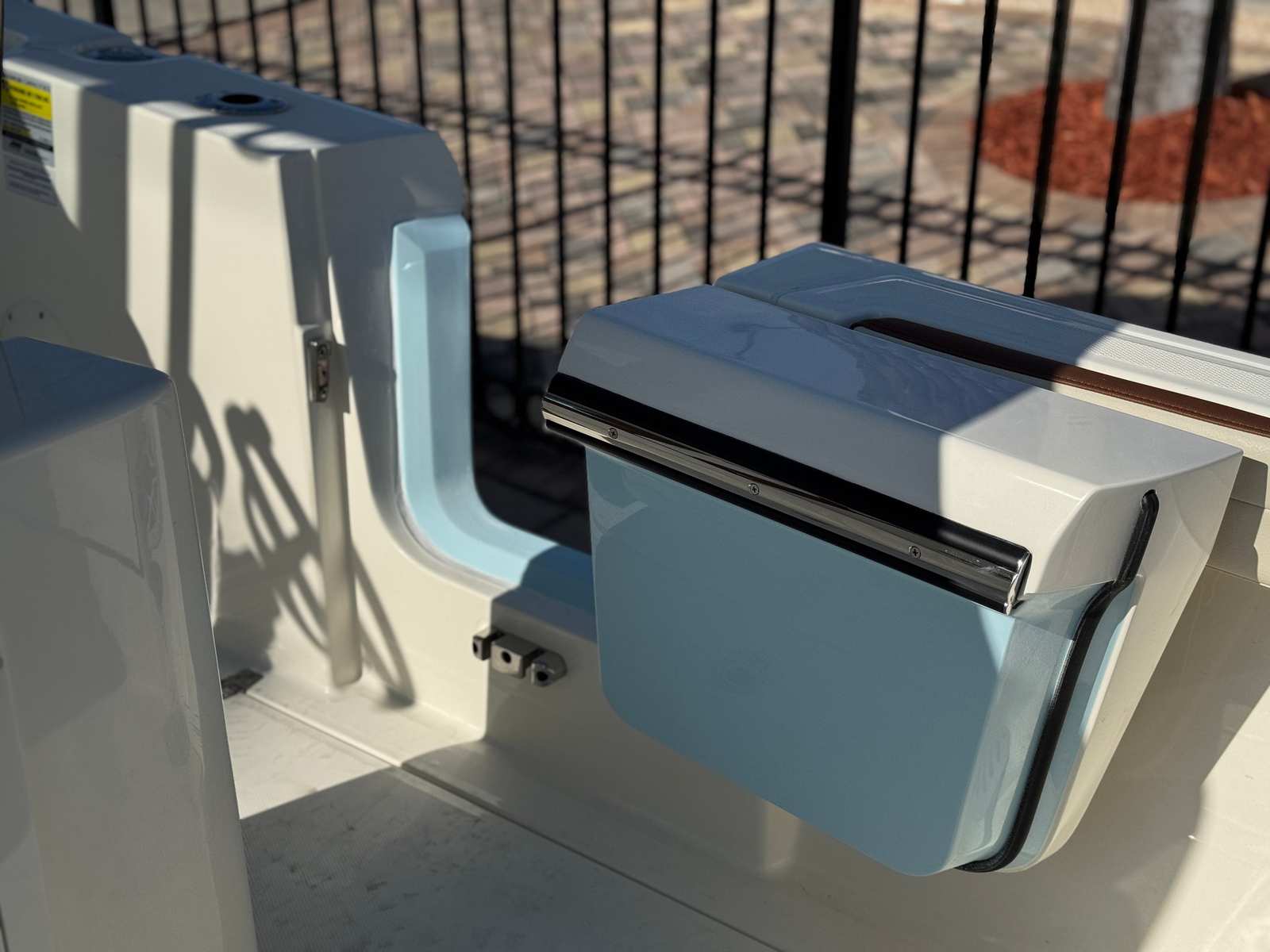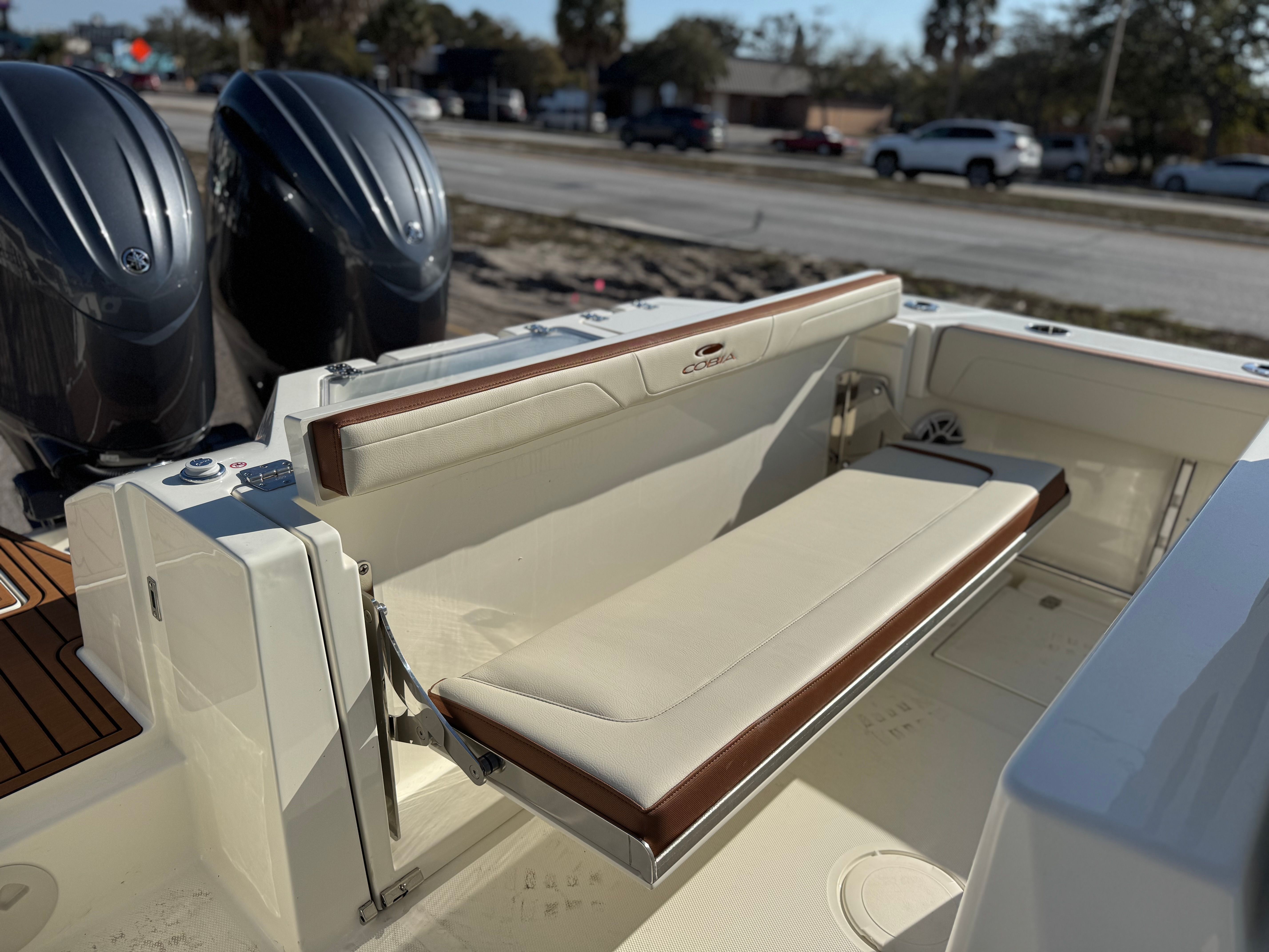 The Cobia 245 CC is loaded with premium features designed to enhance your boating experience. The GEM stainless steel components offer durability and a polished look, while the Seakeeper Ride system and Seakeeper Ride Indicator provide advanced stability and comfort, reducing pitch and roll for a smoother ride even in choppy waters. The helm seat comes standard with a tackle station, making it easy to organize your gear and prepare for a successful day of fishing.The interior is as inviting as it is functional, with a two-tone caramel and cream cushion package that adds a touch of luxury and comfort. The bow cushion package extends the seating area, creating a relaxing space for sunbathing, socializing, or simply enjoying the view. The Atlantic Blue hull color not only enhances the boat’s visual appeal but also reflects Cobia’s attention to detail and commitment to quality.