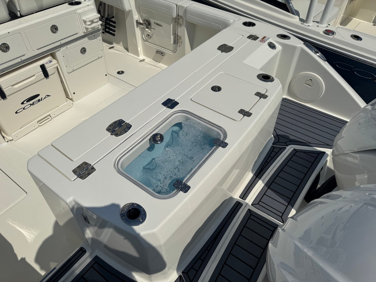 Owning the Cobia 265 CC means embracing a lifestyle of fun, relaxation, and adventure. The spacious layout is perfect for socializing, with plenty of room for friends and family to gather, lounge, and enjoy the ride. The premium seating and cushion package ensure everyone stays comfortable, whether you’re cruising along the coast or anchored at your favorite spot. The advanced engine controls and steering systems make piloting the boat easy and enjoyable, so you can focus on making memories rather than managing complicated systems. The faux teak decking adds both beauty and practicality, creating a welcoming environment that’s easy to maintain.
