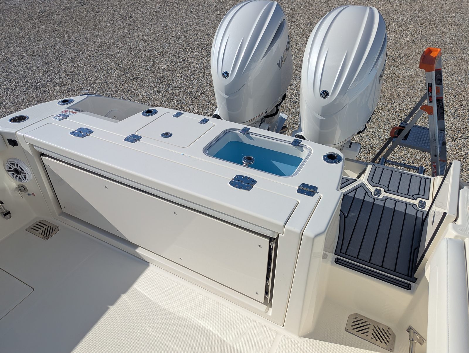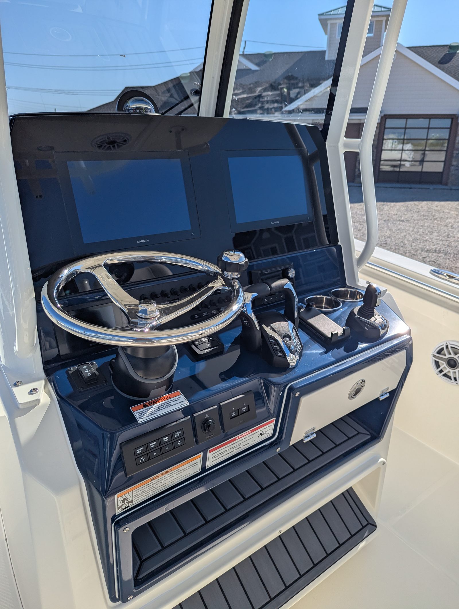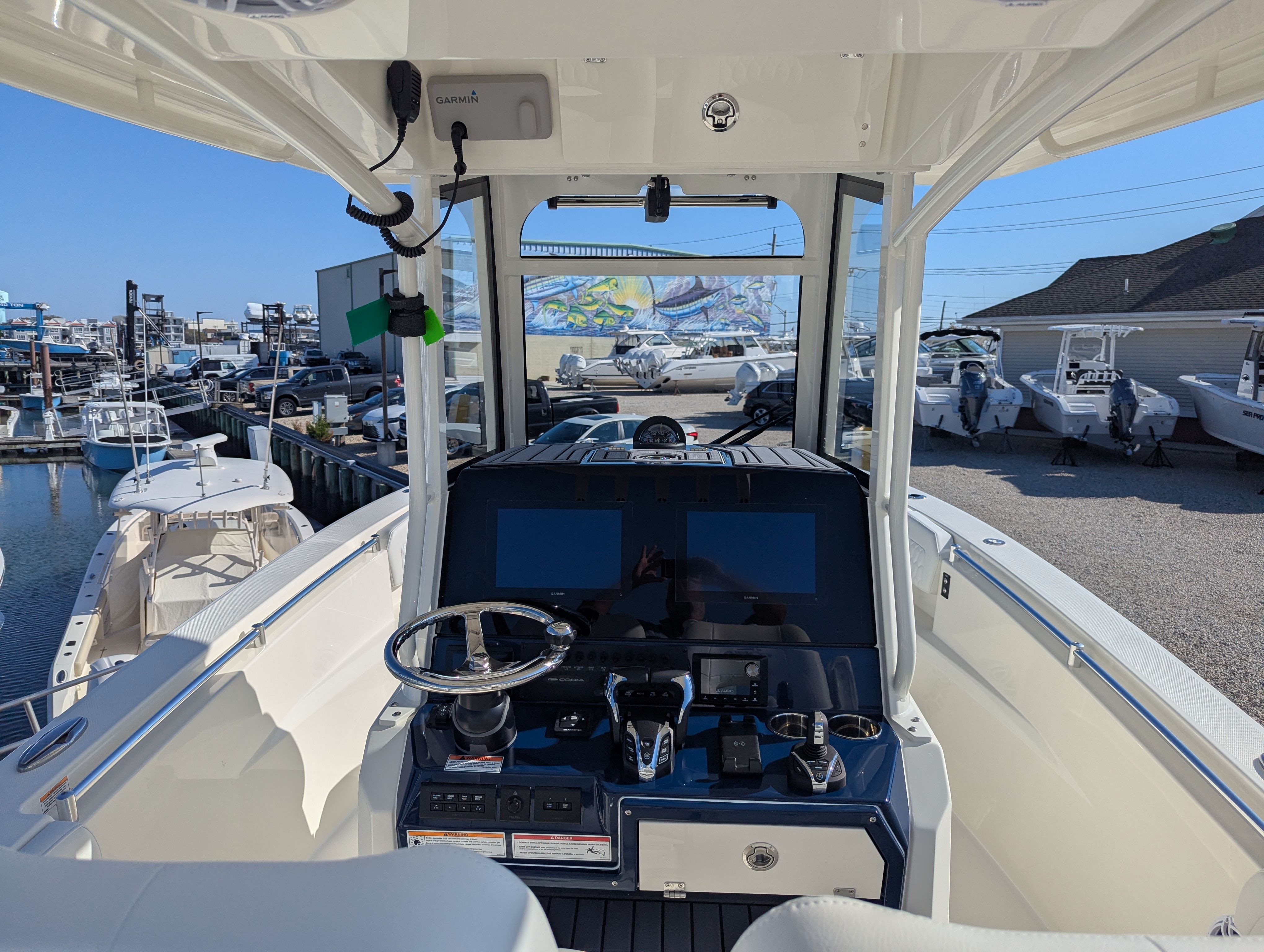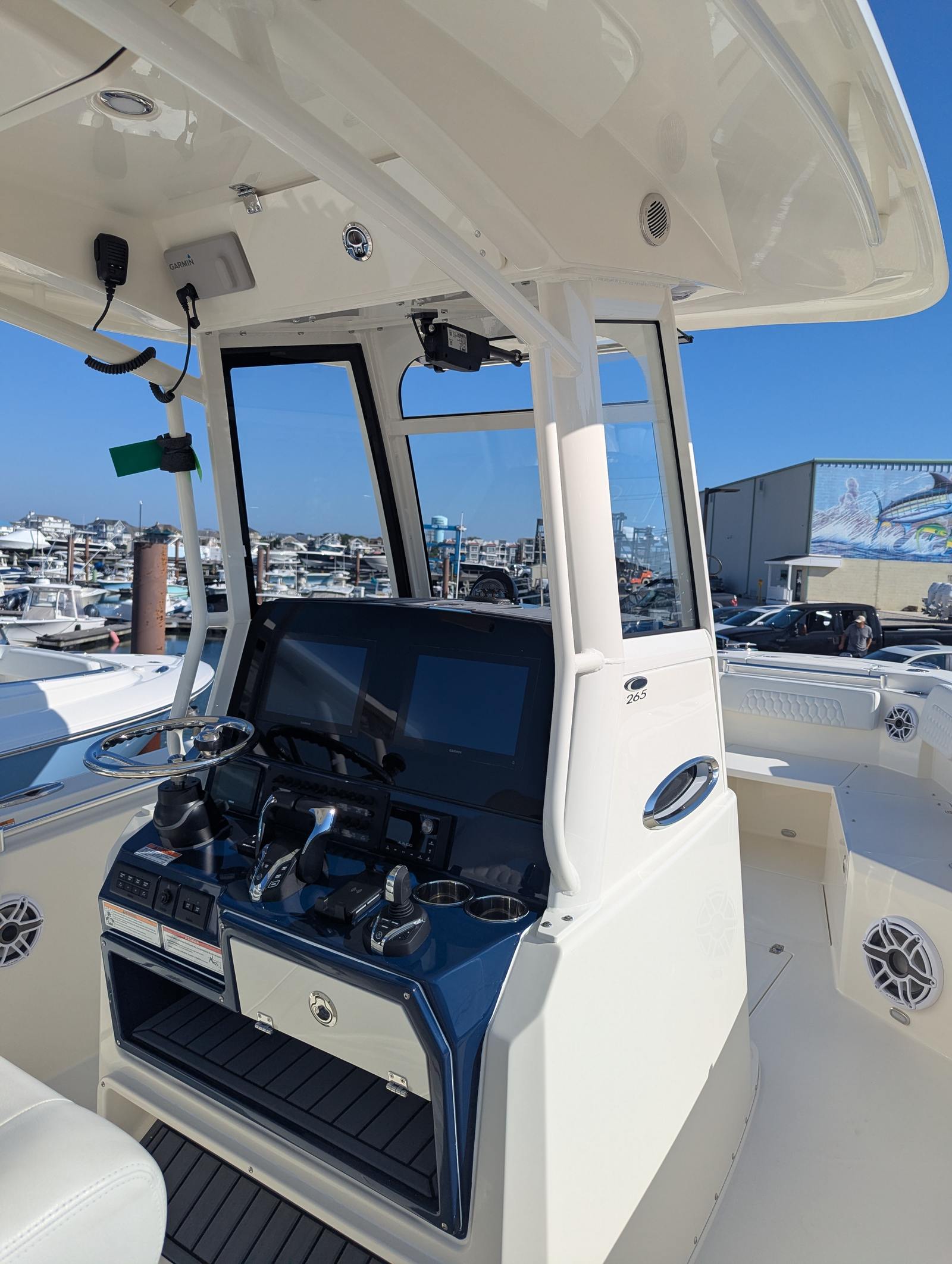 Powering the Cobia 265 CC are twin engines, delivering a combined 400 horsepower for exhilarating acceleration and confident handling. The advanced engine controls, featuring the Helm Master EX DES Twin Engine with AP/JOY and ISO Charger, provide precise maneuverability and effortless docking, even in challenging conditions. The Seakeeper Ride trim tabs and indicators further enhance stability and ride comfort, allowing you to tackle choppy waters with ease. Whether you’re chasing the next big catch or cruising with loved ones, this center console boat for sale offers the performance and reliability you need for unforgettable days on the water.