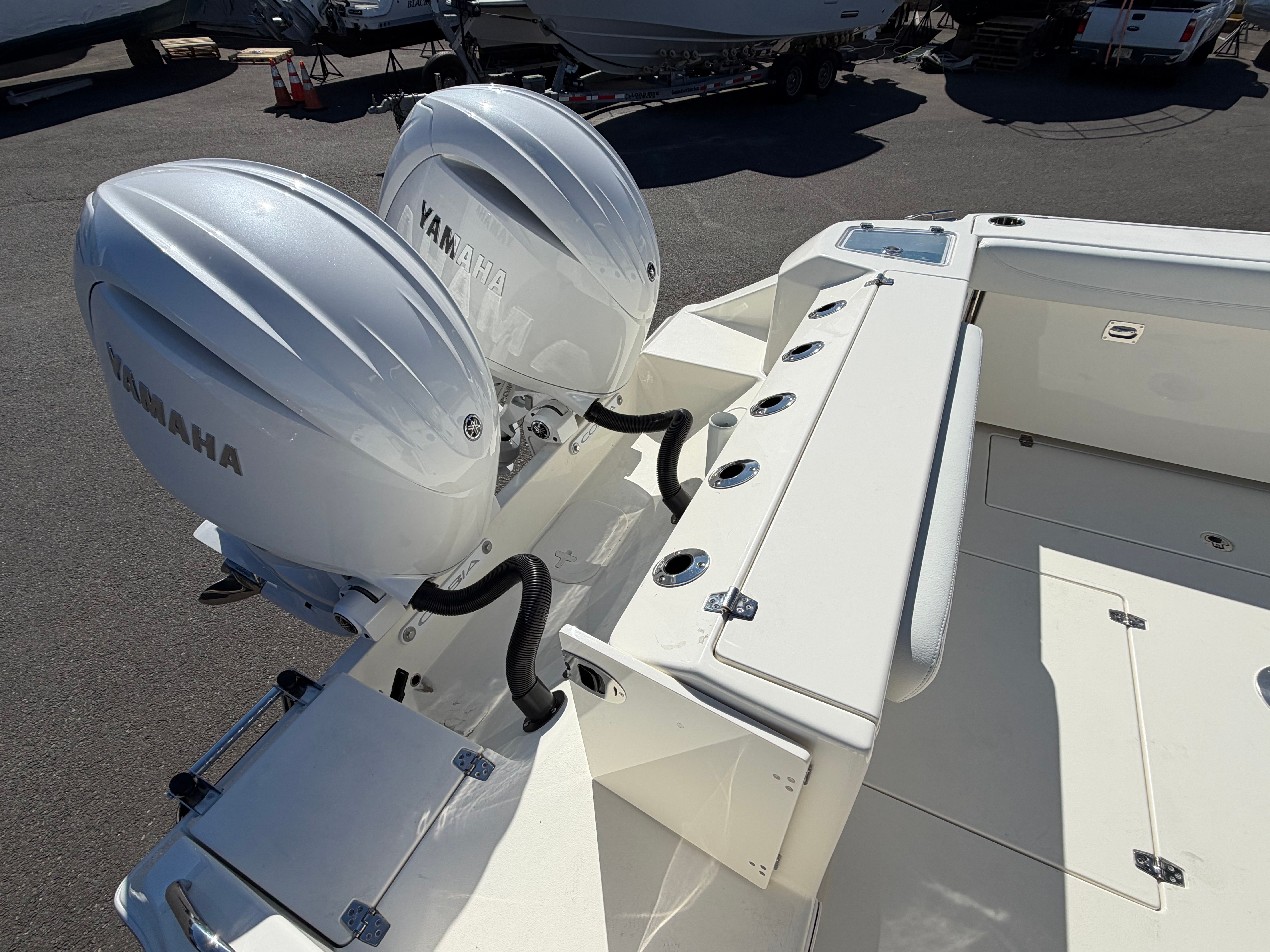 At the heart of the Cobia 280 DC is a powerful Yamaha Twin 200XSA2 engine setup, finished in striking white. With a combined 400 horsepower, this Dual Console boat delivers exhilarating speed, smooth acceleration, and impressive handling, making it ideal for cruising, watersports, or reaching your favorite fishing spots quickly. The advanced Helm Master EX DES Twin Engine Controls with AP/JOY and ISO Charger provide intuitive, precise command over your engines, enhancing maneuverability and docking ease. Whether you are navigating tight marinas or open waters, the Cobia 280 DC offers a responsive and confident ride every time.