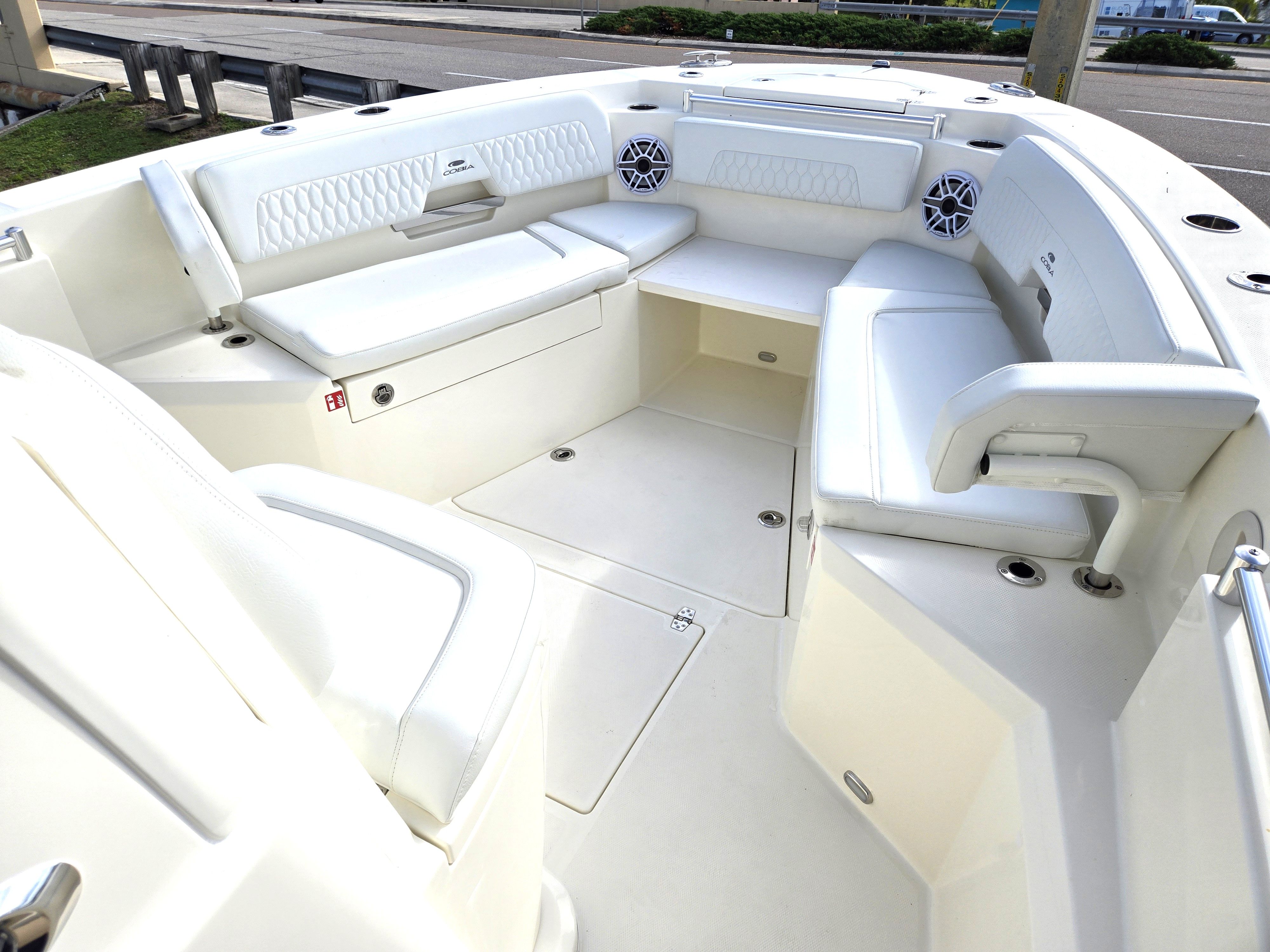 Powering the Cobia 285 CC are twin engines, delivering a combined 400 horsepower for exhilarating speed and smooth handling. Whether you’re cruising along the coastline, heading offshore for a fishing expedition, or enjoying a leisurely day on the lake, this Center Console boat responds with agility and confidence. The advanced digital electric steering system ensures precise control and effortless maneuverability, making docking and navigating tight spaces a breeze. With robust power and innovative steering, the 285 CC is engineered for both performance enthusiasts and those who appreciate a relaxed, enjoyable ride.