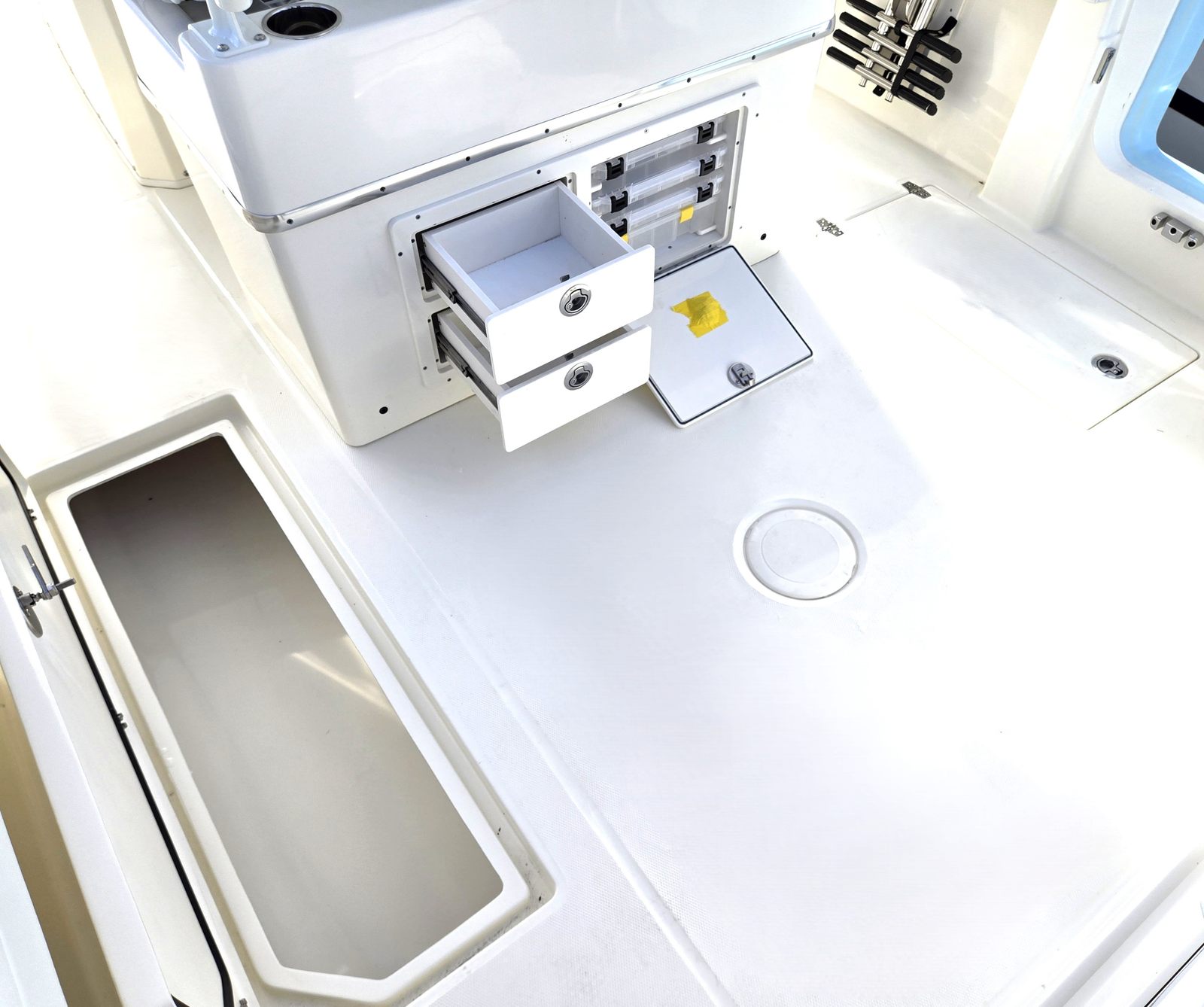 Owning the Cobia 285 CC means embracing a lifestyle of fun, relaxation, and adventure. The spacious Center Console layout is perfect for hosting family gatherings, entertaining friends, or enjoying solo escapes. The comfortable bow cushions invite you to stretch out and soak up the sun, while the advanced audio system sets the mood for every occasion. Whether you’re casting lines, sharing meals, or simply cruising, the 285 CC creates the ideal environment for making memories.The thoughtful design ensures that every inch of the boat is optimized for comfort and convenience. The helm seat tackle station keeps your fishing essentials within easy reach, while the faux teak decking provides a slip-resistant surface that’s both stylish and practical. With ample seating, generous storage, and a layout that encourages social interaction, the Cobia 285 CC is your ticket to endless enjoyment on the water.
