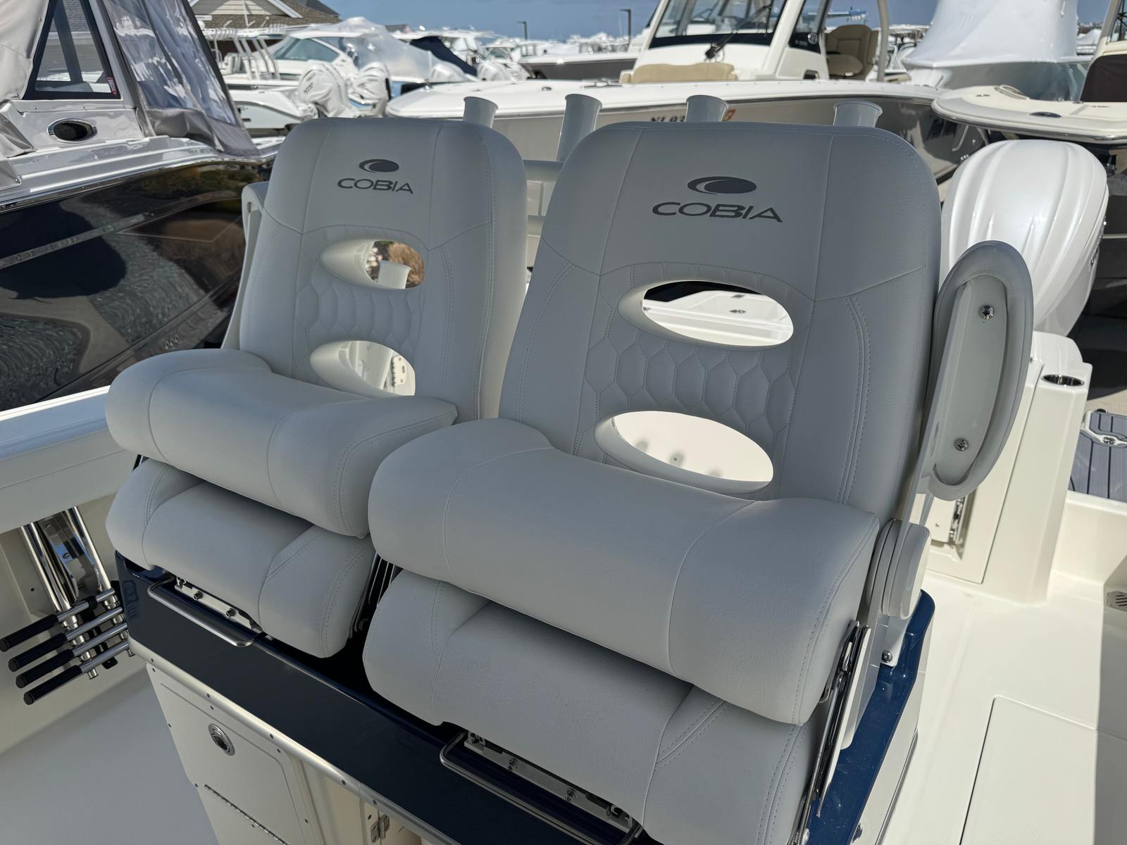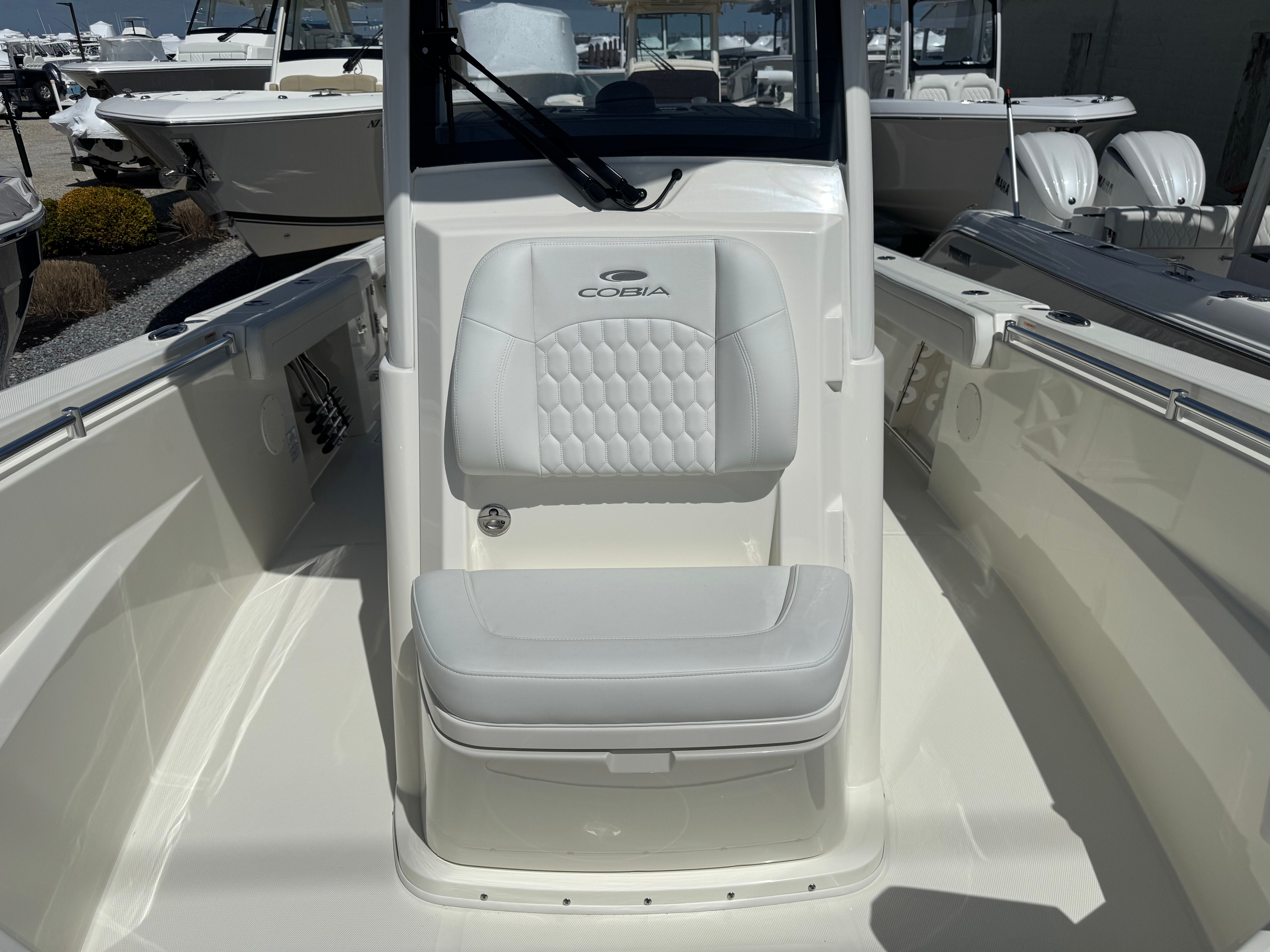 In summary, the 2026 Cobia 285 CC is a standout Center Console boat for sale, combining cutting-edge technology, luxurious comfort, and exceptional performance. With its twin Yamaha F300XSB2 engines, Helm Master controls, digital electric steering, and premium helm seating, this Cobia boat for sale is designed to impress. The pure white hull, faux teak decking, and plush cushion package add style and sophistication, while practical features like the tackle center and cooler enhance convenience. Whether you’re seeking adventure, relaxation, or a versatile platform for family fun, the Cobia 285 CC delivers it all. Don’t miss your chance to own this remarkable new Center Console boat—contact your local dealer today to learn more and start your next boating adventure.