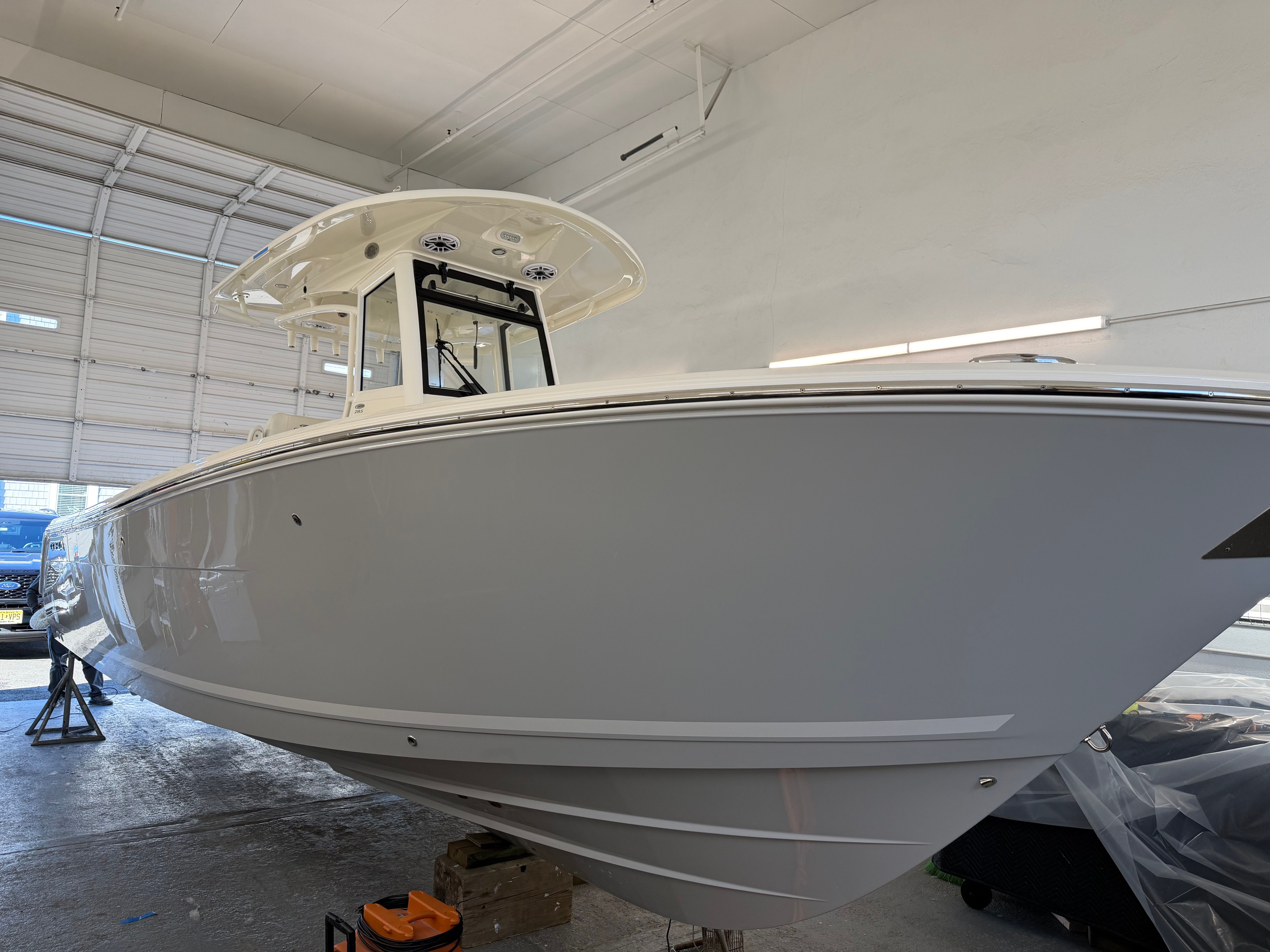 Owning the Cobia 285 CC means unlocking a world of fun, relaxation, and adventure on the water. The spacious layout and thoughtful amenities make it easy to entertain friends and family, whether you’re hosting a sunset cruise or enjoying a day of water sports. The premium audio system sets the mood for any occasion, while the wireless phone charger keeps everyone connected and ready to share their experiences.The advanced windlass system simplifies anchoring, allowing you to explore new coves and beaches with ease. The fresh water washdown ensures your boat stays clean after a day of fishing or swimming, while the extended line upgrade provides added flexibility for anchoring in deeper waters. The trolling motor prep gives anglers the freedom to customize their setup for optimal fishing performance.Comfort is paramount on the Cobia 285 CC, with the forward table/sun lounge offering a versatile space for relaxation and socializing. The sleek Pure White color scheme and stylish boot stripe create a sophisticated look that’s sure to impress guests and fellow boaters alike.