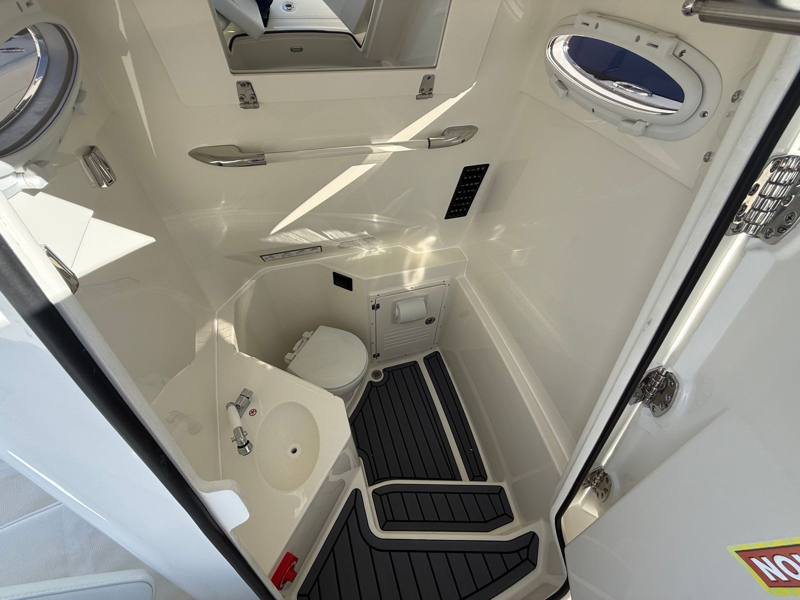 The 2026 Cobia 285 CC is loaded with special features that elevate your boating experience. The GEM stainless steel hardware adds durability and a polished finish, while the Seakeeper Ride system and Seakeeper Ride indicator provide unmatched stability, reducing roll and enhancing comfort in choppy conditions. The premium helm seat, complete with a tackle center and a cooler with a slide, ensures that both captain and crew have everything they need within arm’s reach. The white cushion color and bow cushion package create a welcoming, comfortable environment for lounging and socializing. Every detail, from the hull color to the advanced steering systems, reflects Cobia’s commitment to quality and innovation.