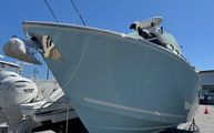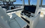 With an LOA of 28’ 5”, a beam of 9’ 11” and versatile seating options, you’ll have plenty of room for all your crew. Get to your favorite spot faster and fish all day with multiple twin engine options – up to 700 maximum horsepower. The helm can accommodate dual 16” Garmin screens, so navigating is second nature. The premium helm seat with tackle center and cooler with slide is standard on the Open or opt in for a version that includes space for more tackle, prep or an added Seakeeper 1.