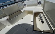 Dual fuel fills with 231-gallon capacity and twin engines with up to 700 maximum horsepower mean you can get out to your favorite fishing spot even faster. The bow table comes standard or you can upgrade to the electronically adjusted version and create the ultimate social zone with the push of a button. Spacious bow seating with the cushion package, forward console seat with integrated 57.5 quart cooler and the 54” hideaway aft bench seat provide plenty of room for your crew to spread out. The innovative in-floor fish box can be partitioned to create a cooler that can be accessed from the water through the side dive door once you hit the sandbar.