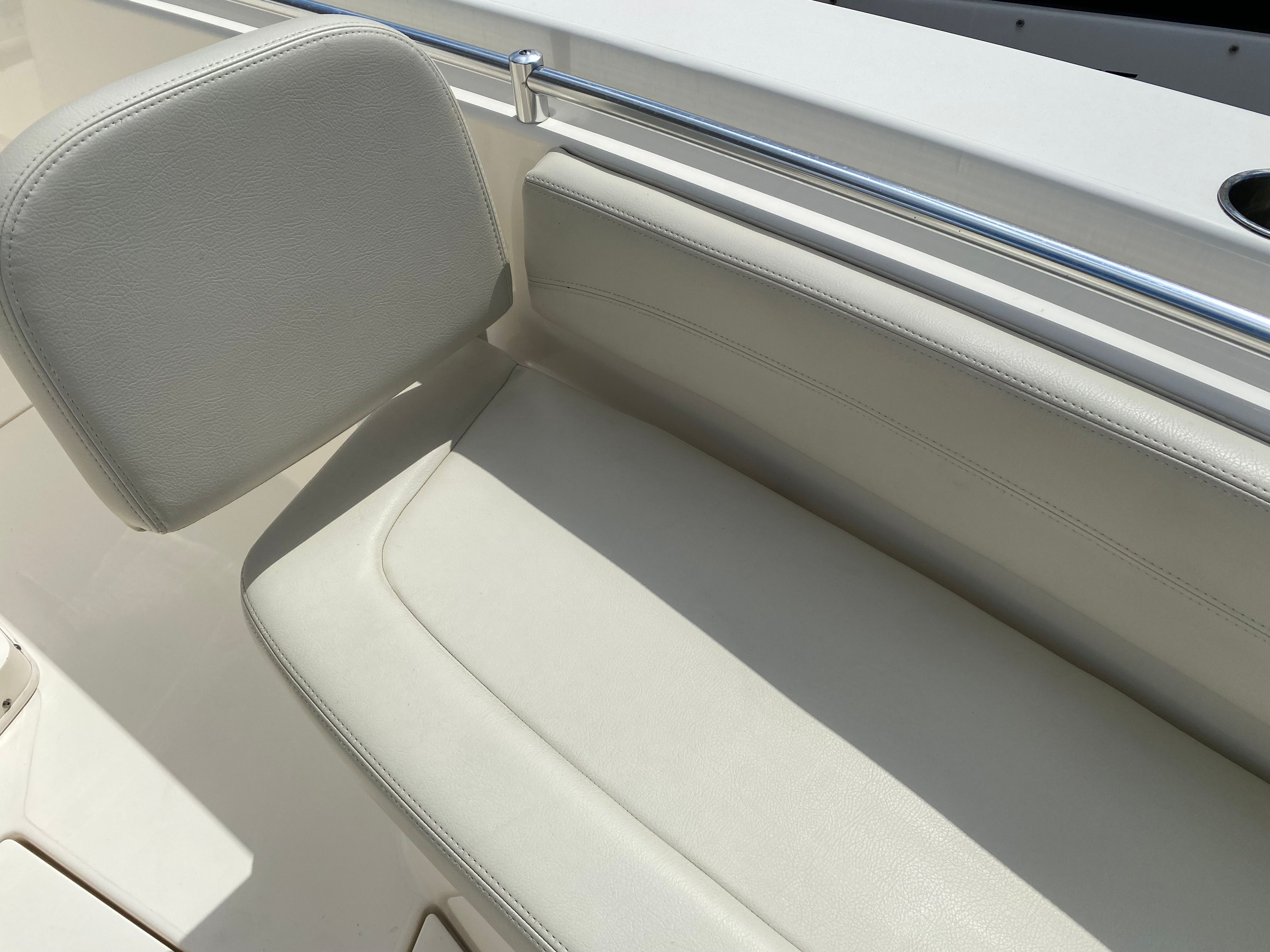 This Cobia boat for sale is as practical as it is exciting. The Center Console configuration allows for ample storage space for fishing gear, water toys, and personal belongings, keeping the deck clutter-free and organized. The boat’s design makes docking and maneuvering straightforward, even for those new to boating. The efficient twin-engine setup not only delivers impressive power but also offers the peace of mind that comes with redundancy and reliability. With only 150 engine hours, this used Cobia 301 CC is ready to provide years of dependable service. Whether you are planning a quick afternoon escape or a full day on the water, this boat’s thoughtful features make every trip easy and enjoyable.