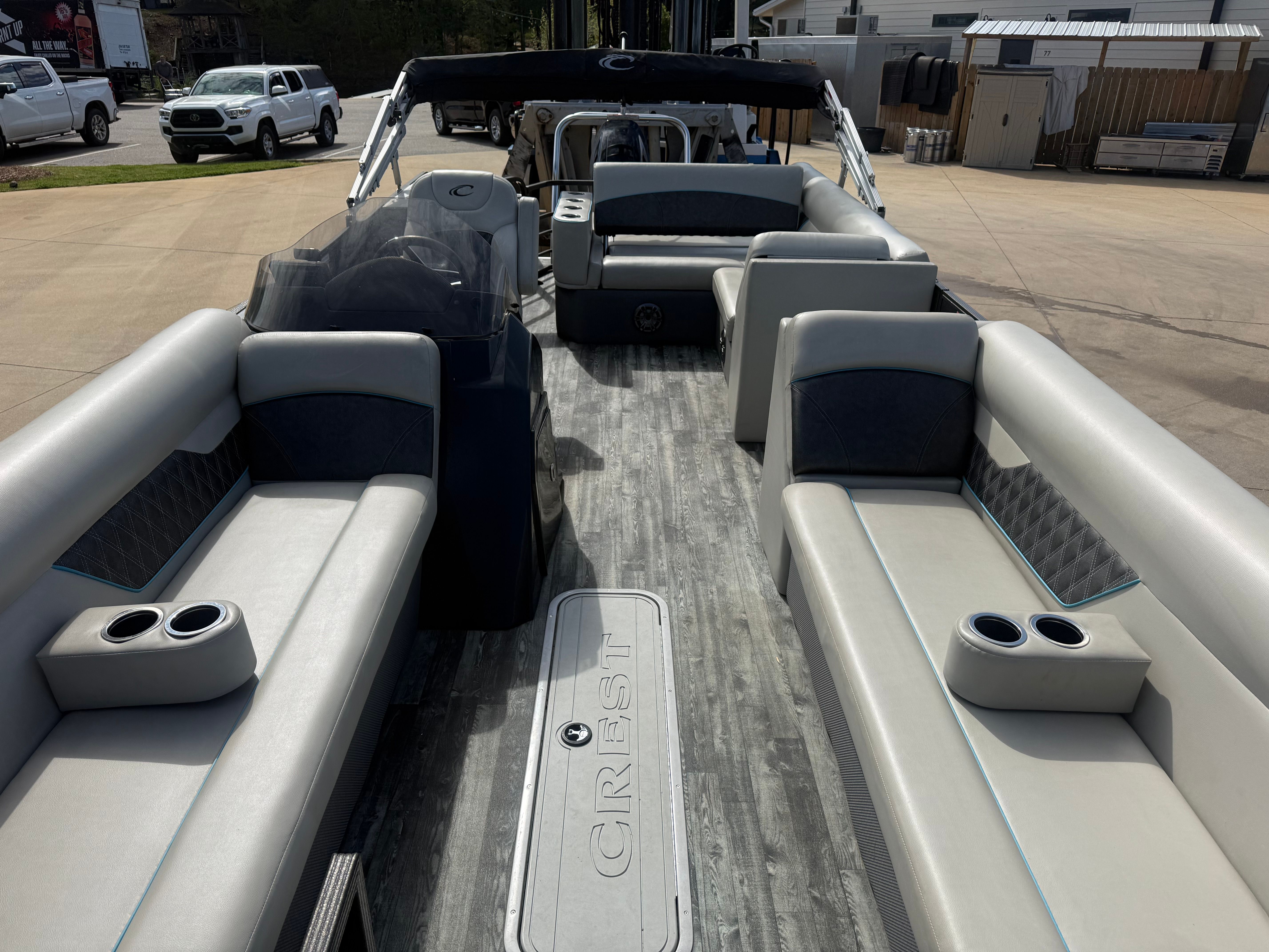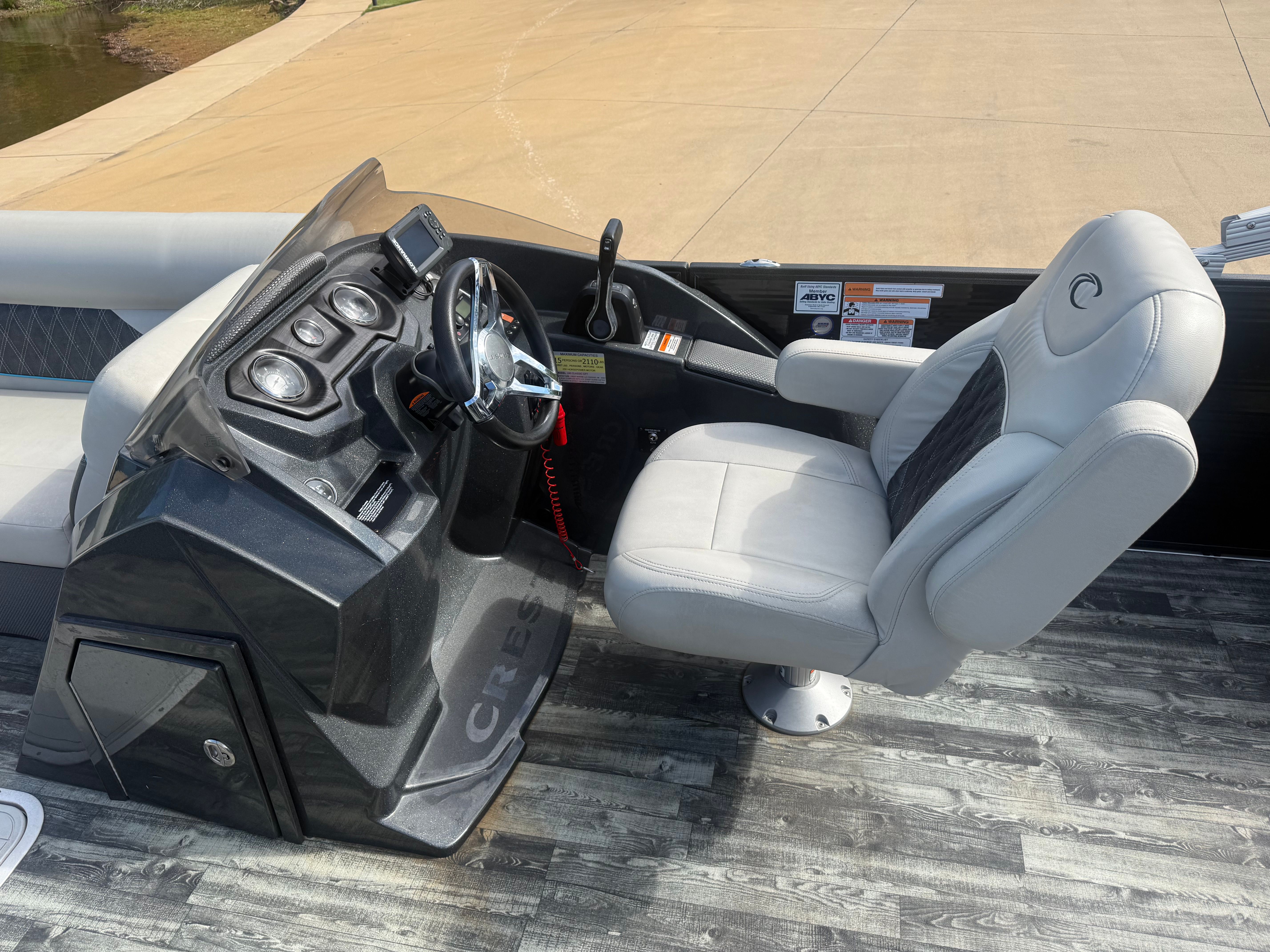 The Crest Classic DLX 240 is packed with features that enhance comfort, convenience, and enjoyment on every outing. Its spacious deck layout provides plenty of seating, allowing everyone on board to relax and soak up the sun. The pontoon’s design prioritizes both style and functionality, with high-quality materials and attention to detail evident throughout. The 25-foot length offers generous space for movement, making it easy to host gatherings or enjoy quiet moments on the water.This Crest boat for sale is equipped with a range of amenities designed to make your time on board as enjoyable as possible. From plush seating to ample storage compartments, every detail is crafted with your comfort in mind. The pontoon’s layout is perfect for entertaining, with plenty of room for coolers, snacks, and all the essentials you need for a day of fun. The Classic DLX 240’s thoughtful design ensures that every trip is both relaxing and memorable.