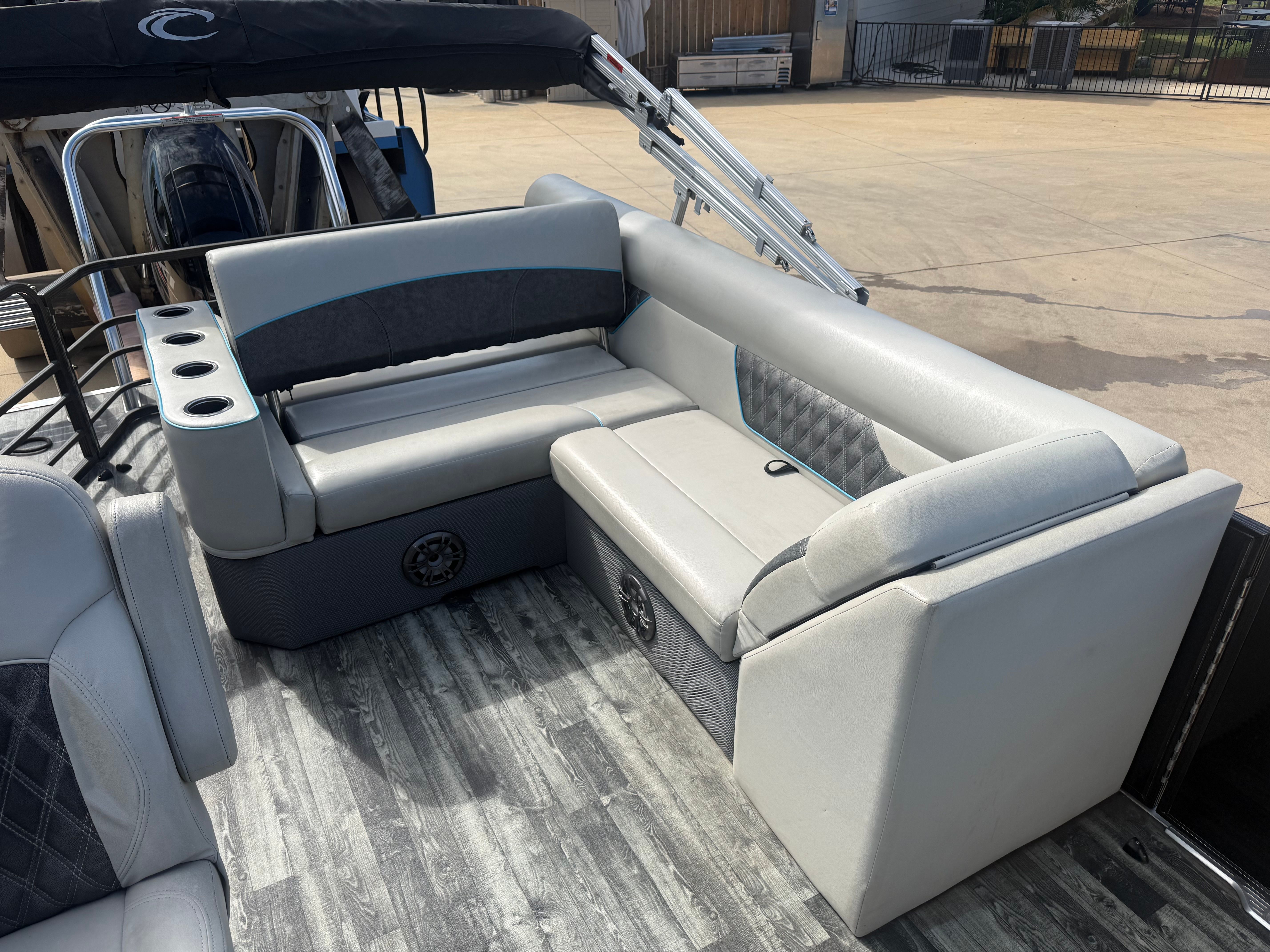 The 2020 Crest Classic DLX 240 is a 25-foot pontoon boat designed to elevate your boating adventures. With its spacious layout and thoughtful design, this Crest boat for sale is ideal for families, friends, and anyone who loves to make the most of their time on the water. The Classic DLX 240’s generous length ensures ample room for relaxation, socializing, and enjoying the scenic beauty of your favorite lakes and rivers. Whether you’re hosting a lively gathering or seeking a peaceful escape, this pontoon delivers the perfect setting.