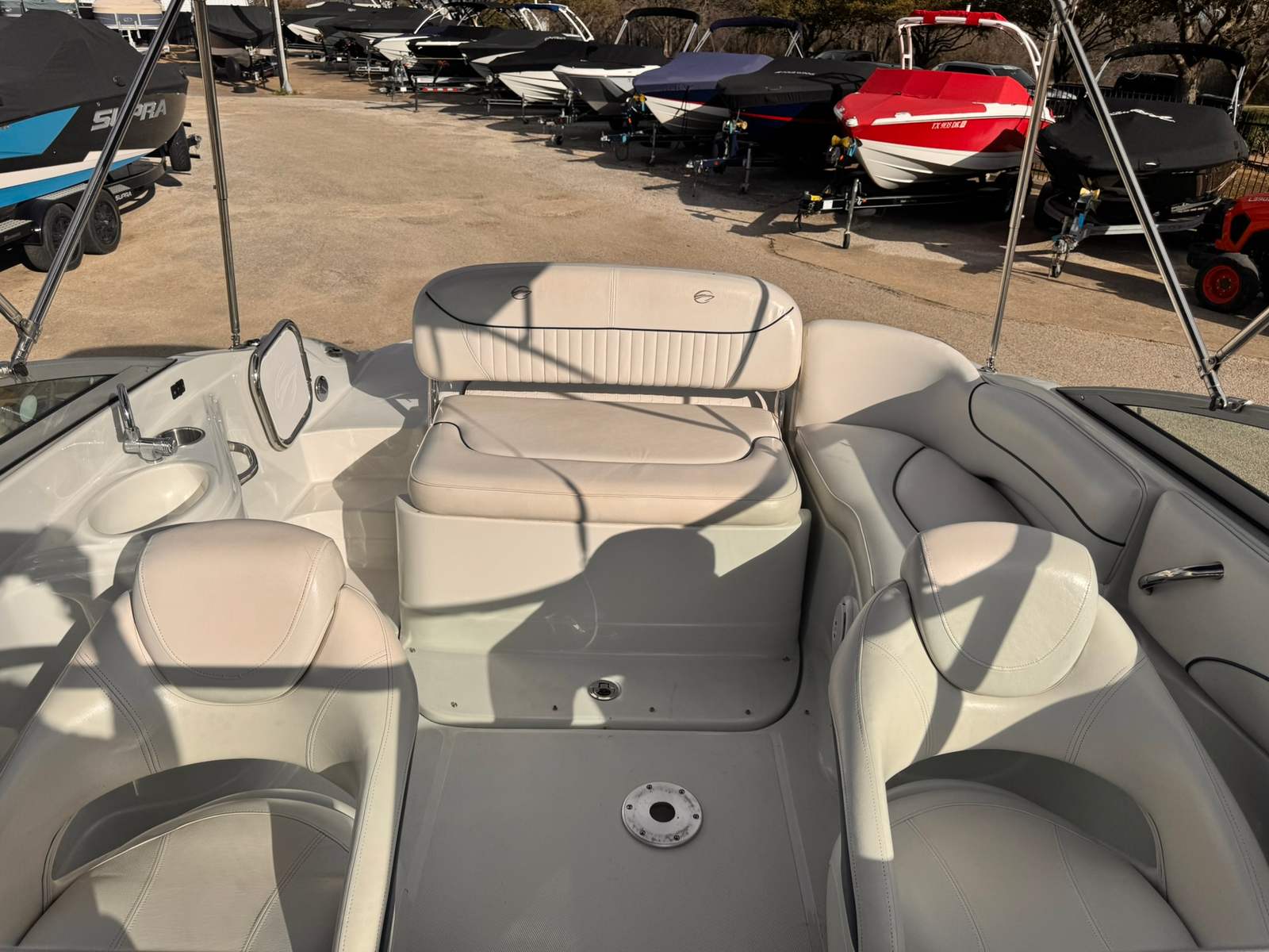 Now available at our New Used Boat Super Center in Lewisville, this 2008 Crownline 220 EX offers the perfect combination of performance, comfort, and versatility. Powered by a MerCruiser 5.0 MPI Fuel Injected V8 Engine (260 HP) with only 235 hours, this boat is ready for fun-filled days on the lake.