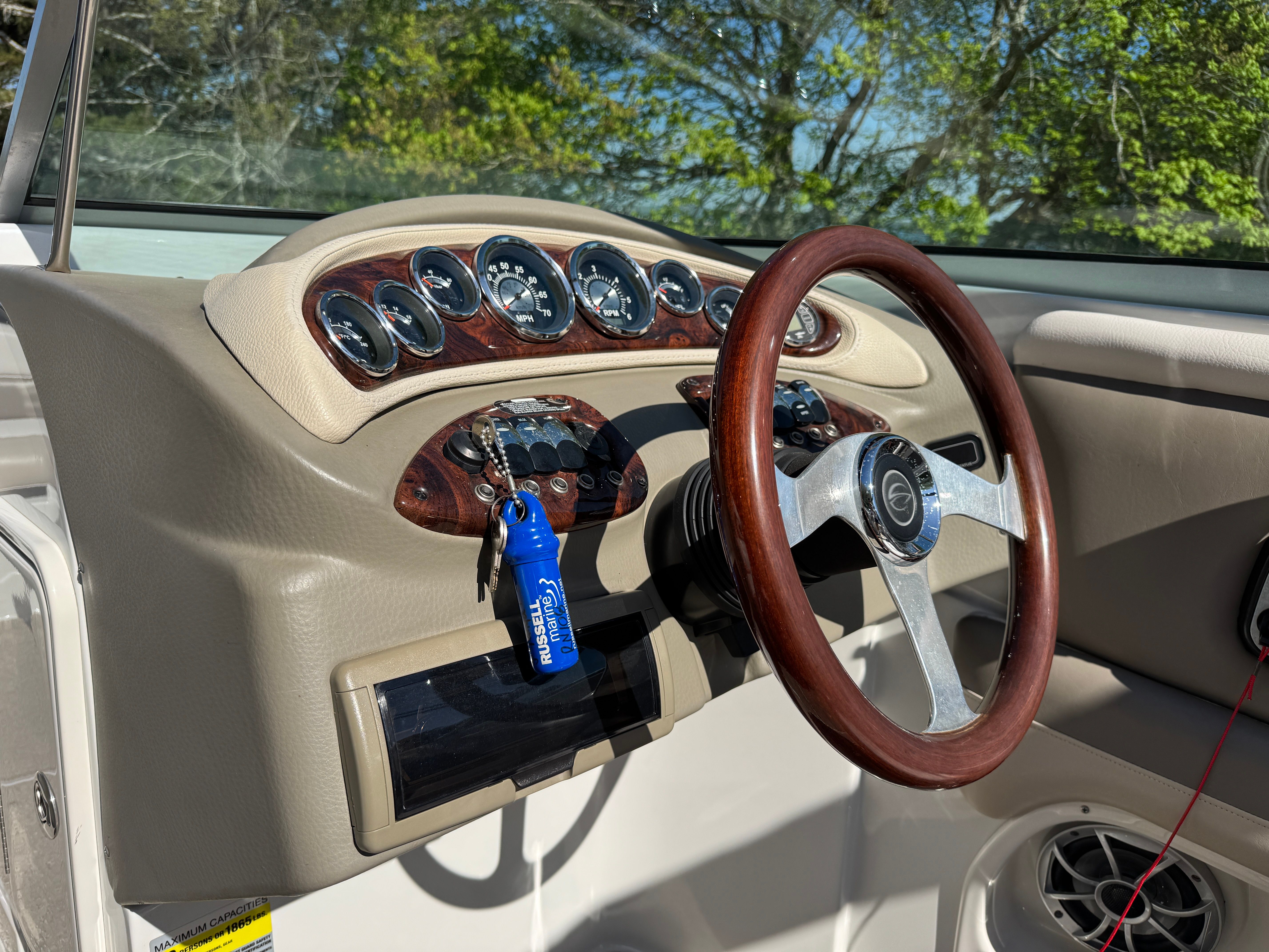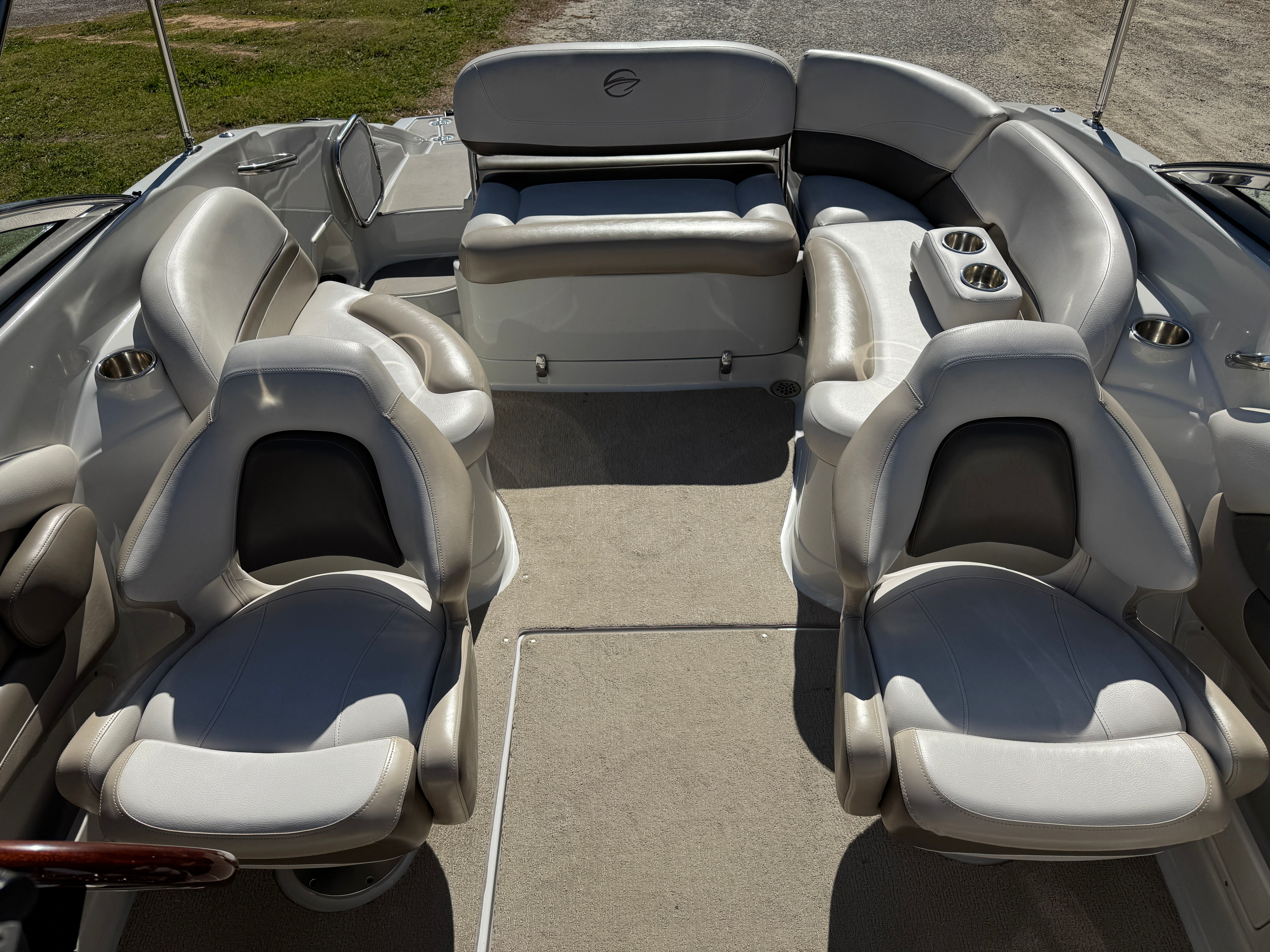 The 2013 Crownline E4 is a 25.25-foot bowrider that stands out for its sleek design and versatile functionality. This model is renowned for its spacious cockpit and bow seating, making it an ideal choice for those who enjoy entertaining guests or relaxing under the sun. As a used bowrider boat for sale, the E4 offers a unique opportunity to own a premium vessel at a fraction of the cost of a new model, without compromising on quality or performance.With its modern lines and attention to detail, the Crownline E4 is a testament to the brand’s commitment to craftsmanship and innovation. The 25.25-foot length provides ample space for passengers, while the thoughtful layout ensures everyone on board can enjoy the ride in comfort and style.