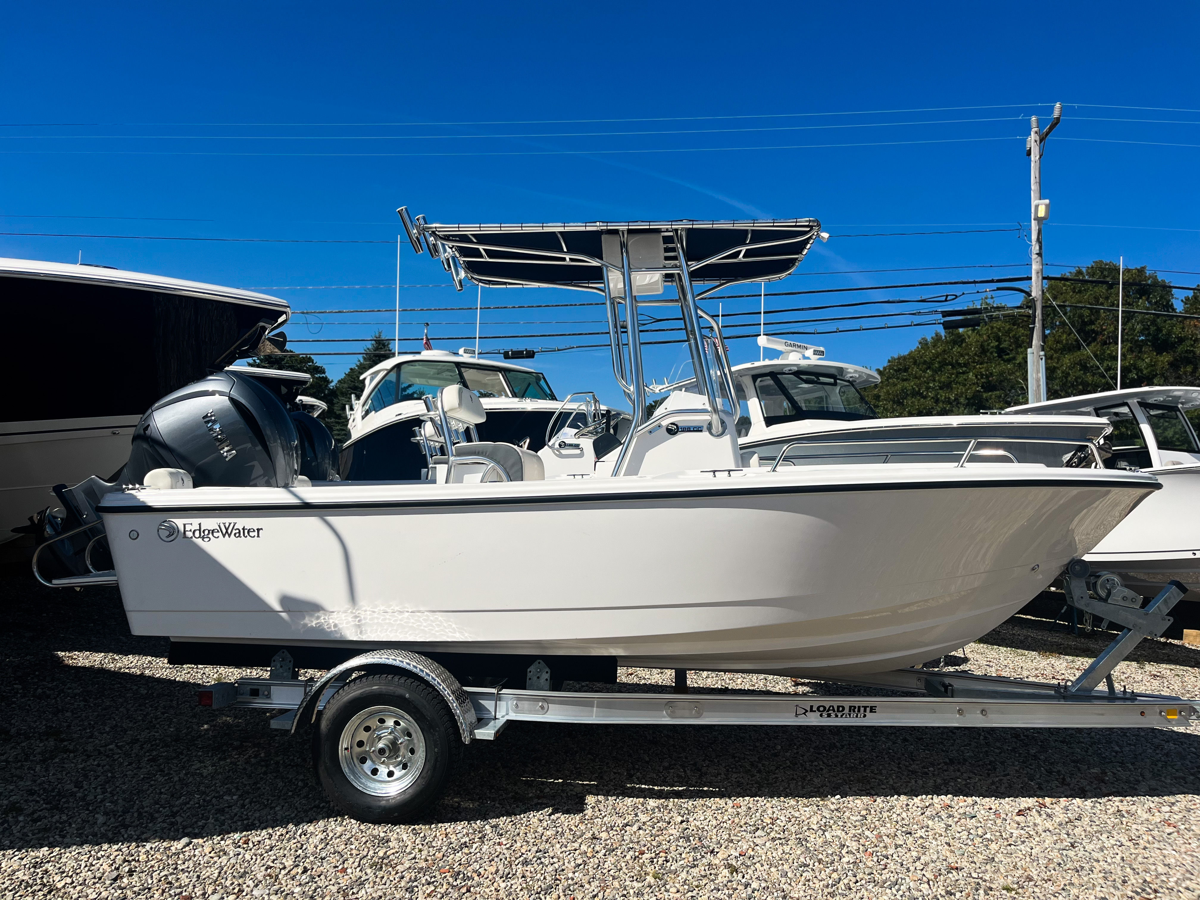 FINANCING AND EXTENDED WARRANTIES AVAILABLE The rougher the weather the more you will appreciate cruising in a 188CC. Thanks to a deep-V hull design, it performs brilliantly in a chop, shrugging off waves and keeping all your passengers dry and perfectly comfortable. Whether you want to take the entire gang out to an island to work on their tans, or run offshore to spend the day fishing or exploring the deep depths of the ocean, the EdgeWater 188CC deep-V hull gives you the versatility and confidence to go anywhere you want to. This boat comes included with a custom magic tilt trailer. The 2025 Edgewater 188 CC is the epitome of modern boating excellence. As a brand new center console boat for sale, it showcases Edgewaters commitment to quality and innovation. Designed with both aesthetics and practicality in mind, this vessel offers a perfect balance of sleek style and robust functionality. Its striking appearance, highlighted by the distinctive Stars & Stripes blue hull sides with a white hull bottom, ensures that youll turn heads wherever you go. Please call us in Mashpee to schedule a viewing.