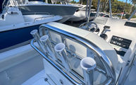 T-Top Anodized Aluminum w/E-Box, Rod Holders (4), LED Spreader Lights (2), Radar Plate, Out Rigger Plates