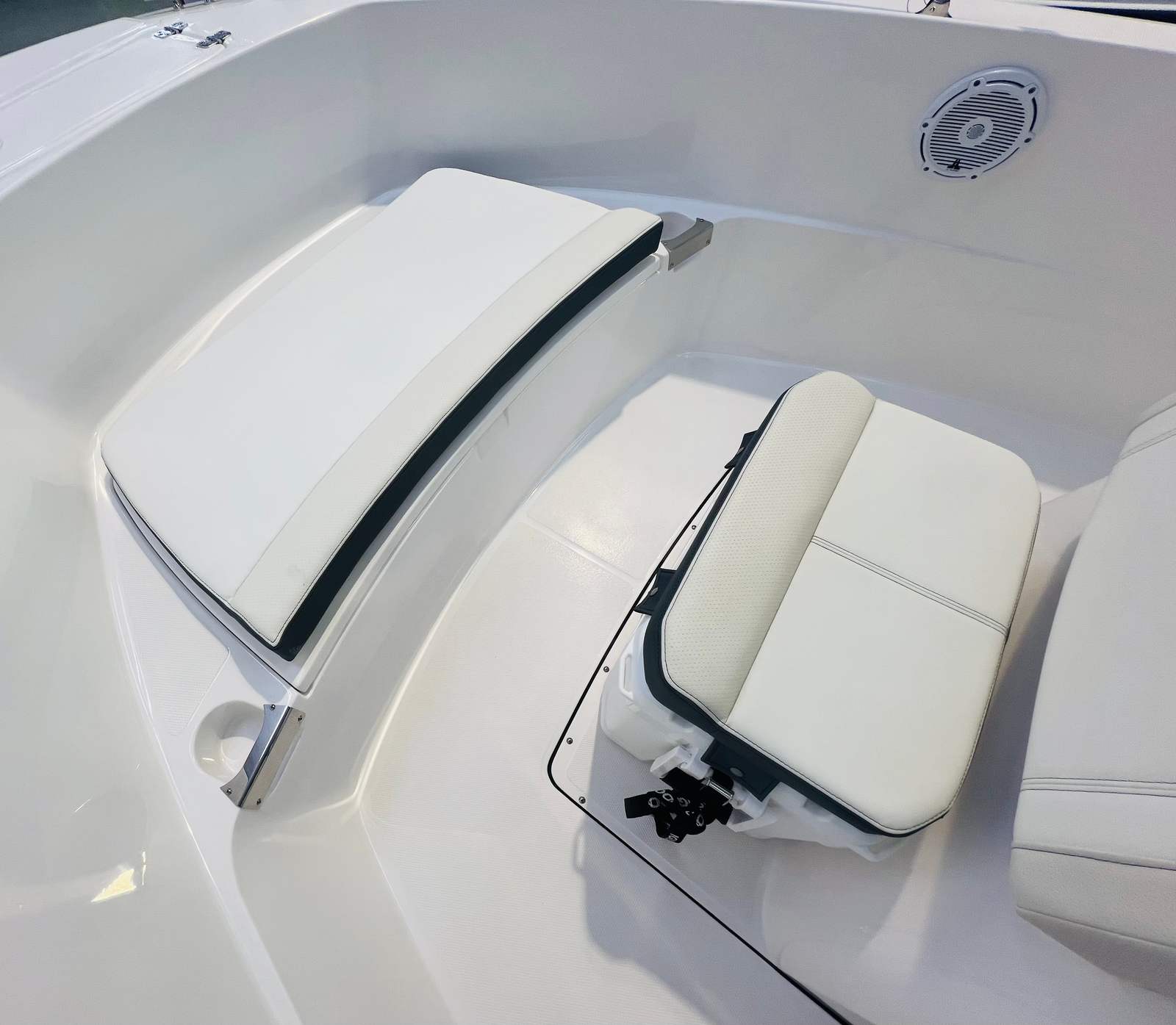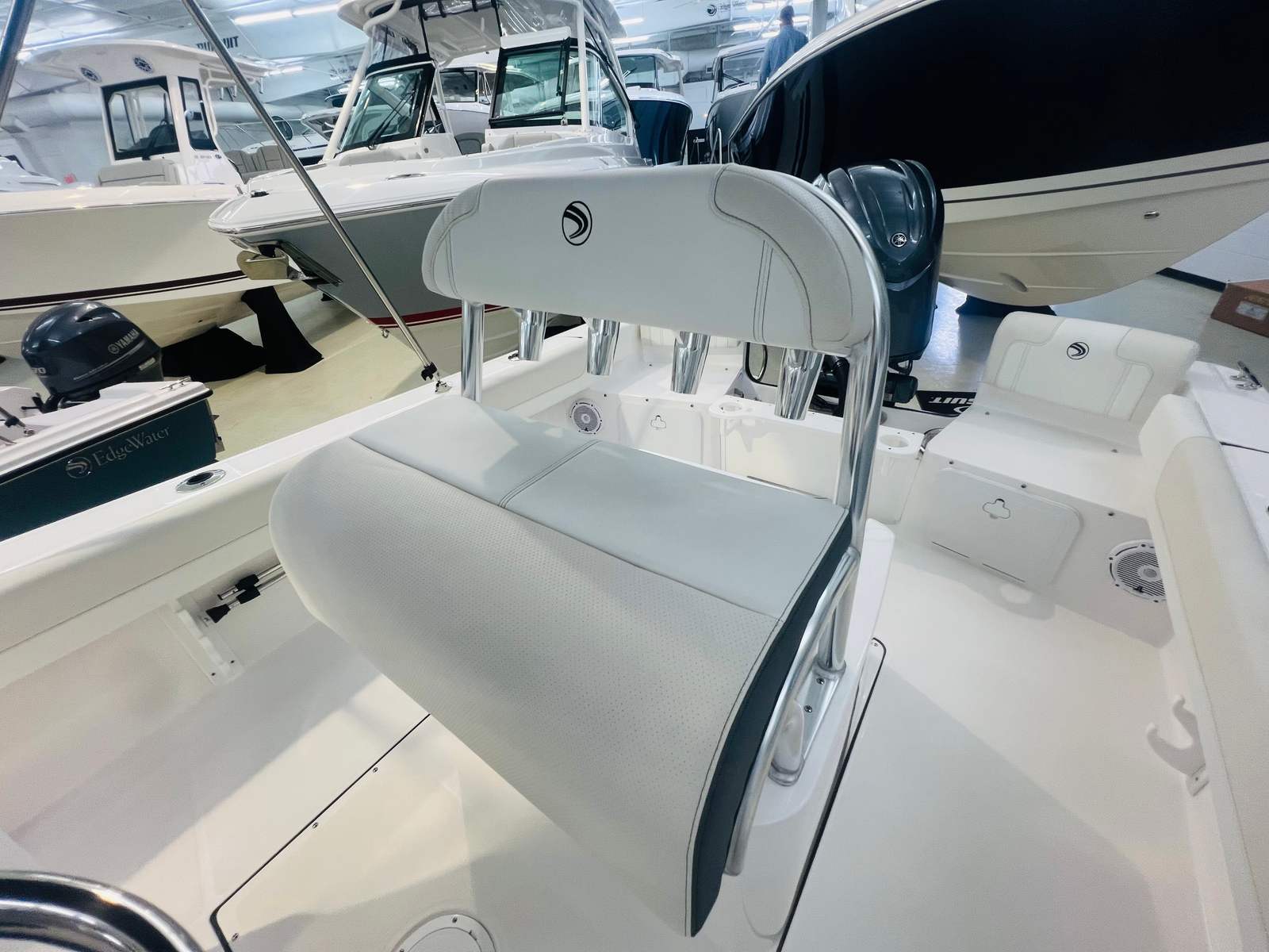 The 2025 Edgewater 188 CC stands out as a compact yet spacious Center Console boat, measuring an impressive 18.67 feet in length. Its sleek lines and contemporary styling make it a head-turner at any marina or launch ramp. The Pewter Hull Sides paired with a White Hull Bottom create a striking visual appeal, while the White Accent Cushions add a touch of elegance and comfort. Built for durability and designed for fun, this new Edgewater boat for sale is ready to take on a variety of aquatic adventures, from coastal cruising to inshore fishing.