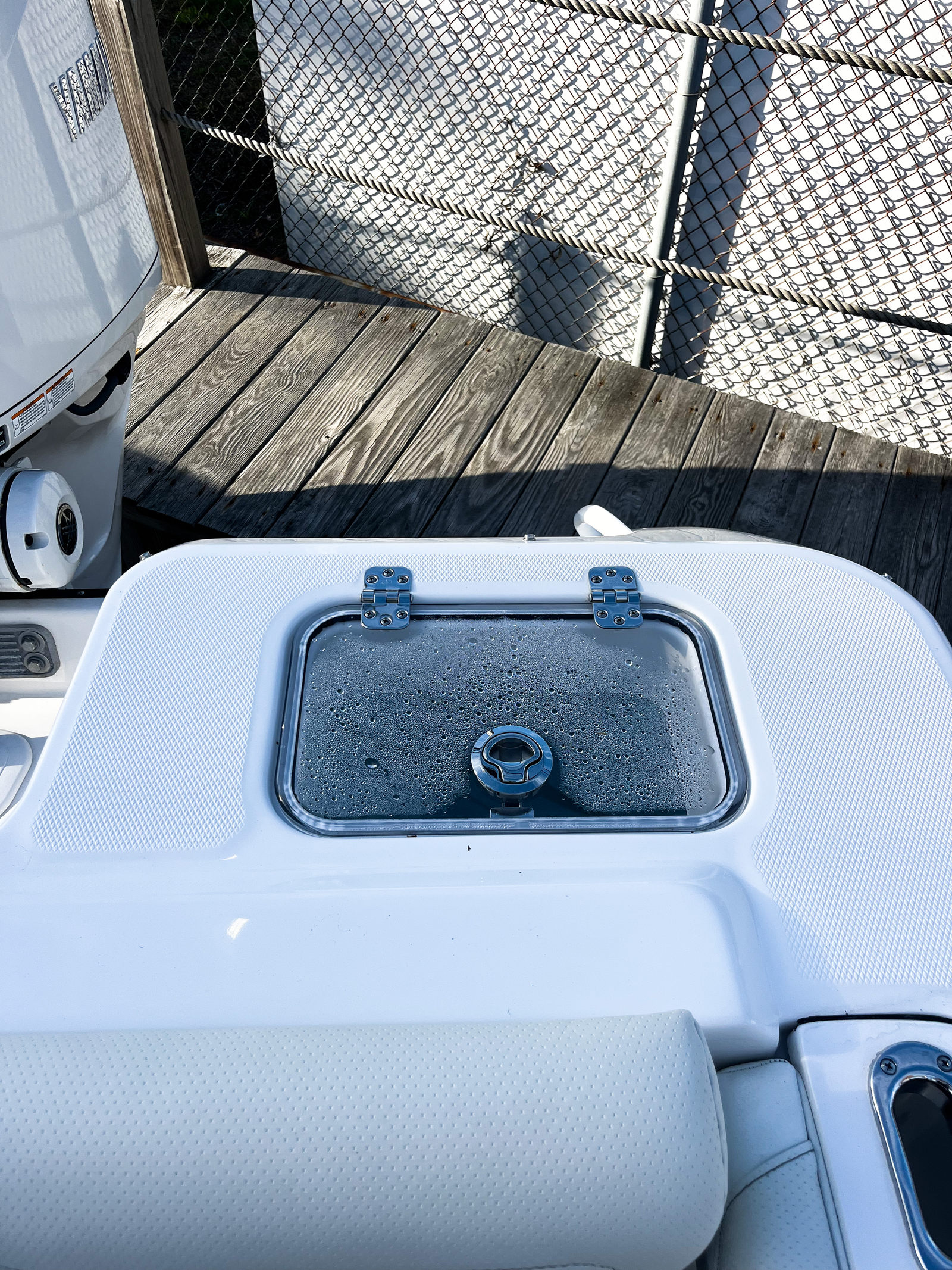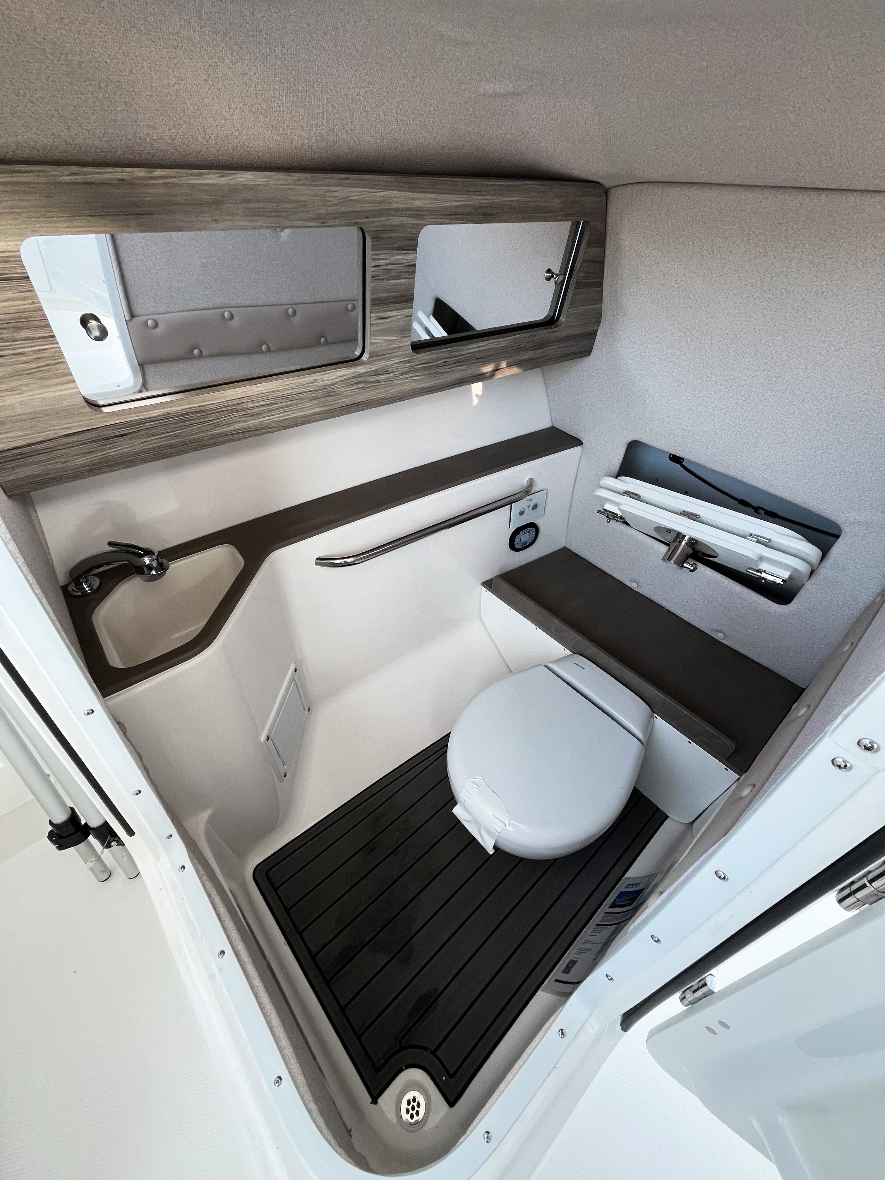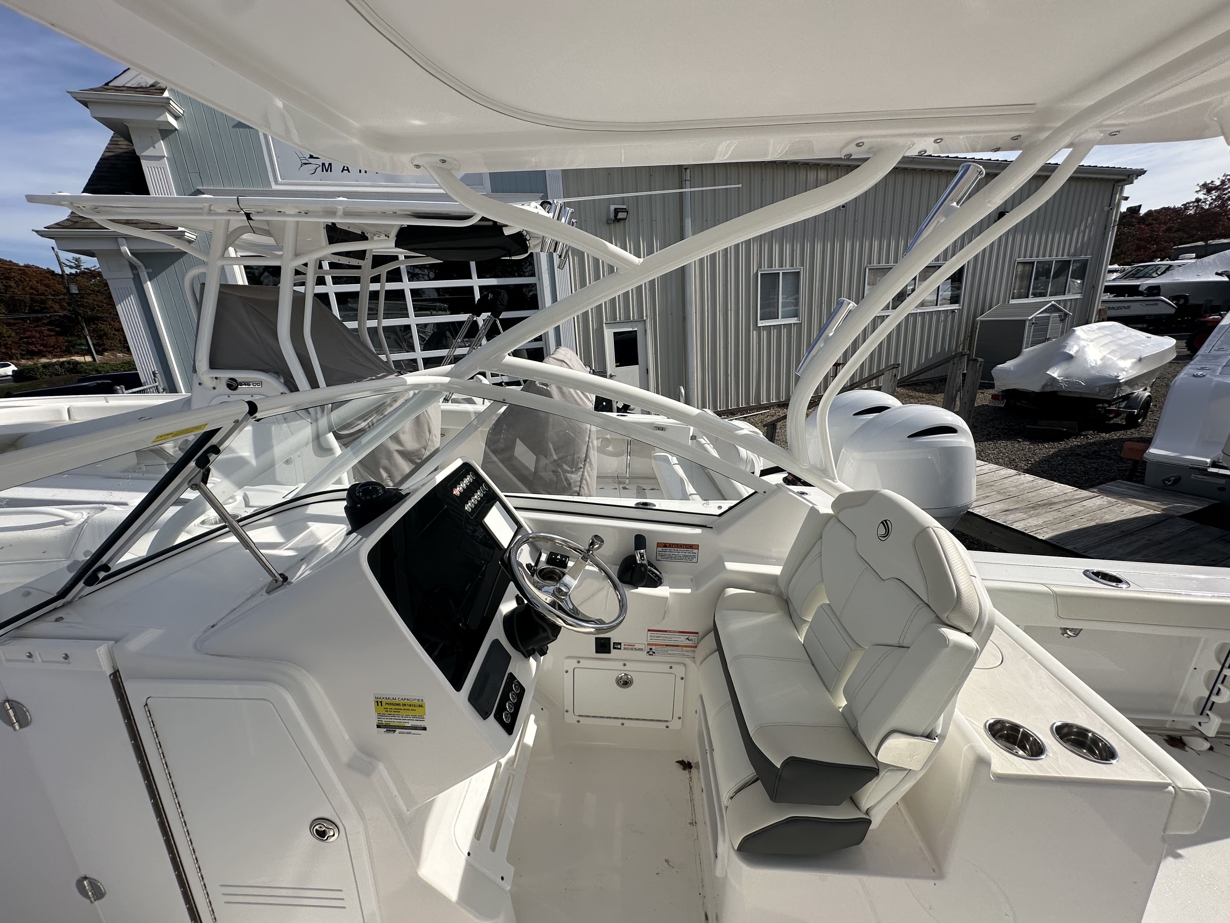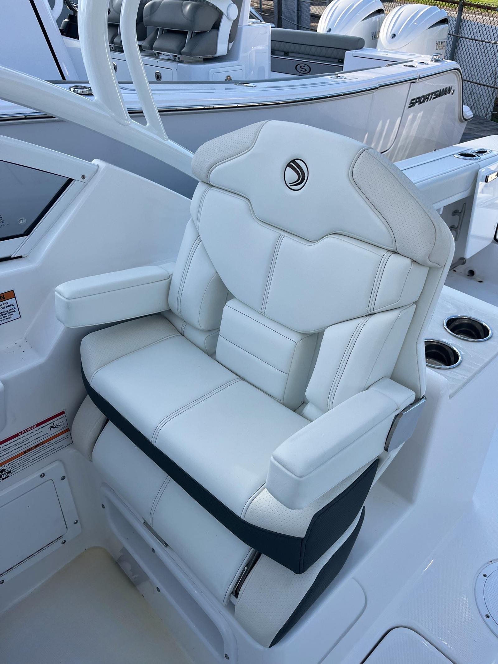 The Edgewater 248 CX is packed with special features that enhance both functionality and enjoyment. The Stars & Stripes Blue Hull Sides with White Hull Bottom create a striking visual appeal, while the color-matched all-white hardtop adds a touch of elegance and protection from the elements. The hardtop is powder-coated with AFT legs and stainless-steel rod holders, making it perfect for anglers who appreciate convenience and durability. Inside, you’ll find white accent cushions that elevate the comfort and style of the seating areas. The prep station is a standout feature, equipped with a stainless-steel sink, storage, cutting board, and a premium cooler—ideal for preparing snacks, cleaning up, or storing your catch of the day. The stainless-steel rub rail not only enhances the boat’s aesthetics but also provides added protection against bumps and scrapes. For entertainment, the Fusion RA70NI stereo system with four JL 7.7 M3 speakers delivers crystal-clear sound, allowing you to set the perfect mood for any occasion. Navigation and communication are top-notch, thanks to the Garmin 8612 with B75M 20° transducer and the VHF 215 with antenna, ensuring you stay connected and informed wherever your adventures take you. The Make Ready 248CX package includes two batteries and installed oil, giving you peace of mind and readiness from day one. With ample storage throughout the boat, you can easily stow away gear, supplies, and personal items, keeping the deck clutter-free and organized.