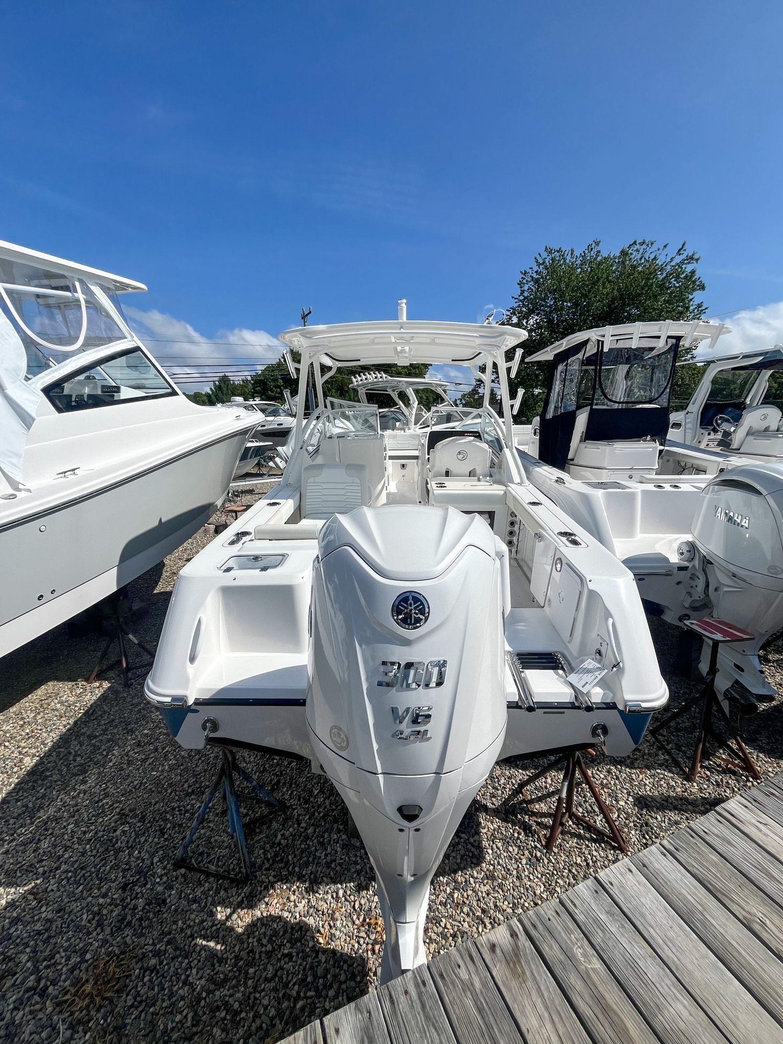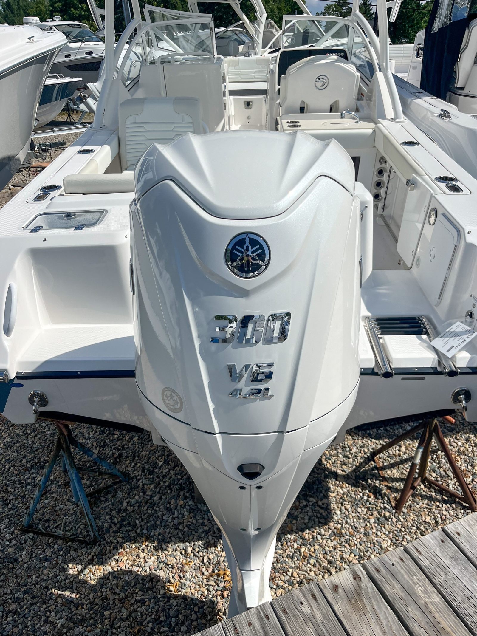 Powering the Edgewater 248 CX is a single Yamaha F300NSB2 30" Integrated DES engine, finished in Yamaha White for a seamless look. With an impressive 300 horsepower, this Dual Console boat offers exhilarating acceleration and smooth cruising, whether you’re navigating open waters or exploring hidden coves. The advanced Yamaha engine is renowned for its reliability, efficiency, and quiet operation, ensuring that your time on the water is both thrilling and relaxing. The integrated Digital Electric Steering (DES) system provides precise handling, making docking and maneuvering effortless, even in tight spaces.