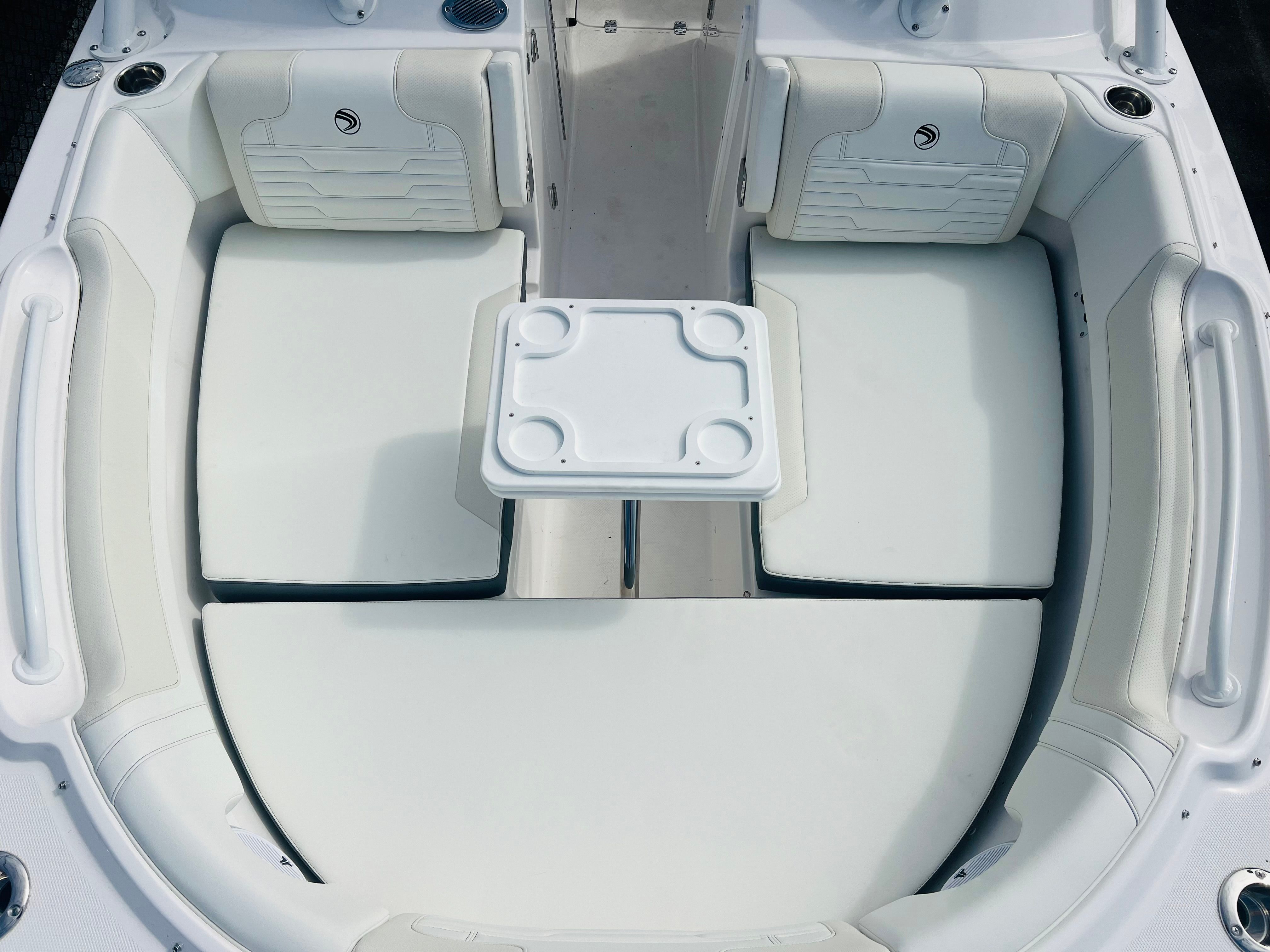 The versatility of the Edgewater 248 CX makes it the perfect companion for a wide range of activities. Imagine setting out for a family day on the lake, with plenty of space for everyone to relax, swim, and enjoy a picnic. For fishing enthusiasts, the integrated rod holders and prep station make it easy to gear up and clean your catch right on board. If you love water sports, the powerful Yamaha engine provides the speed and agility needed for tubing, wakeboarding, or skiing.This dual console boat also shines as a platform for entertaining, with its comfortable seating, premium sound system, and elegant design creating the perfect backdrop for sunset cruises and social gatherings. Whether you’re exploring new waterways, hosting friends, or enjoying a quiet day on the water, the Edgewater 248 CX adapts to your every need.
