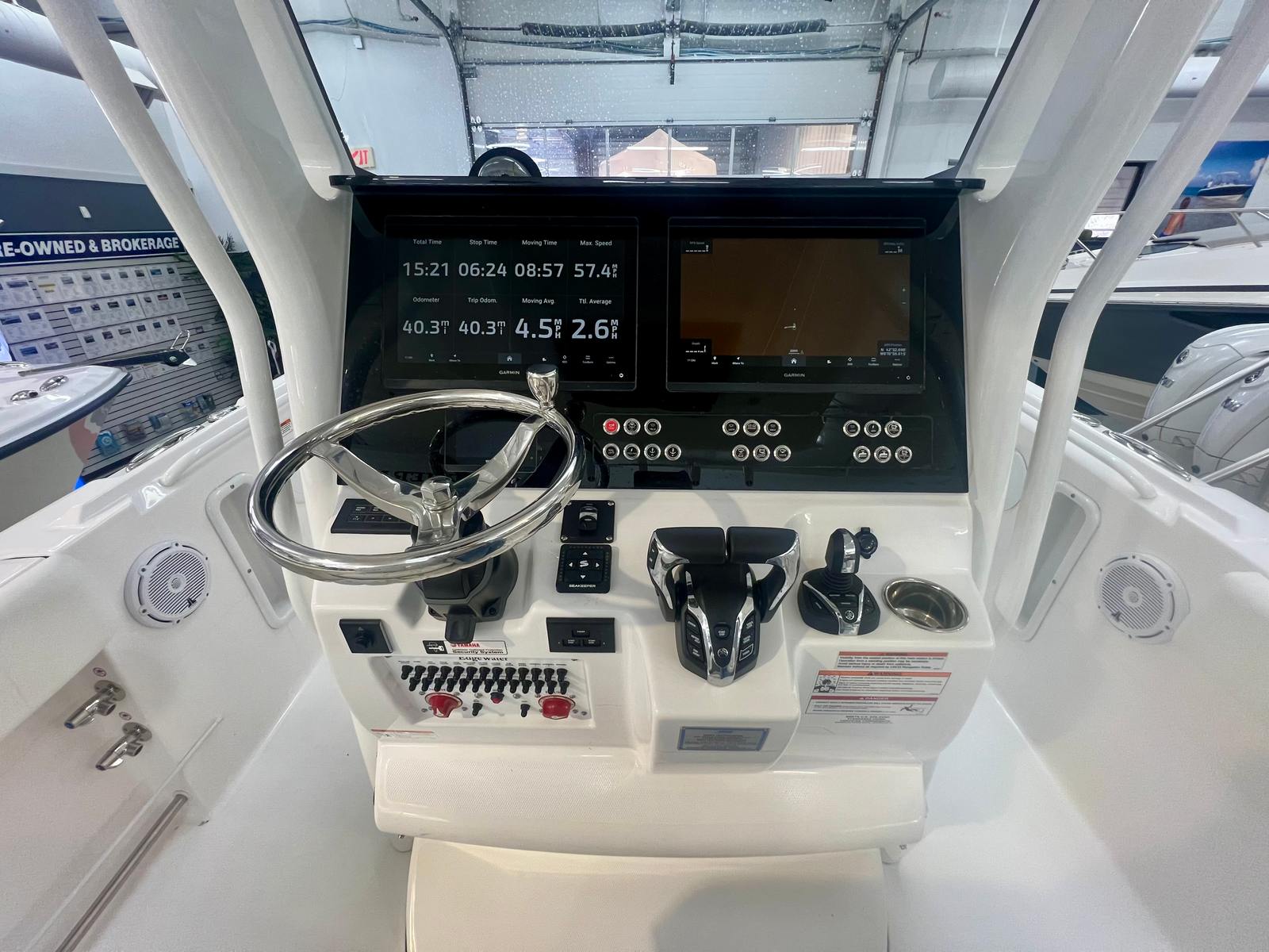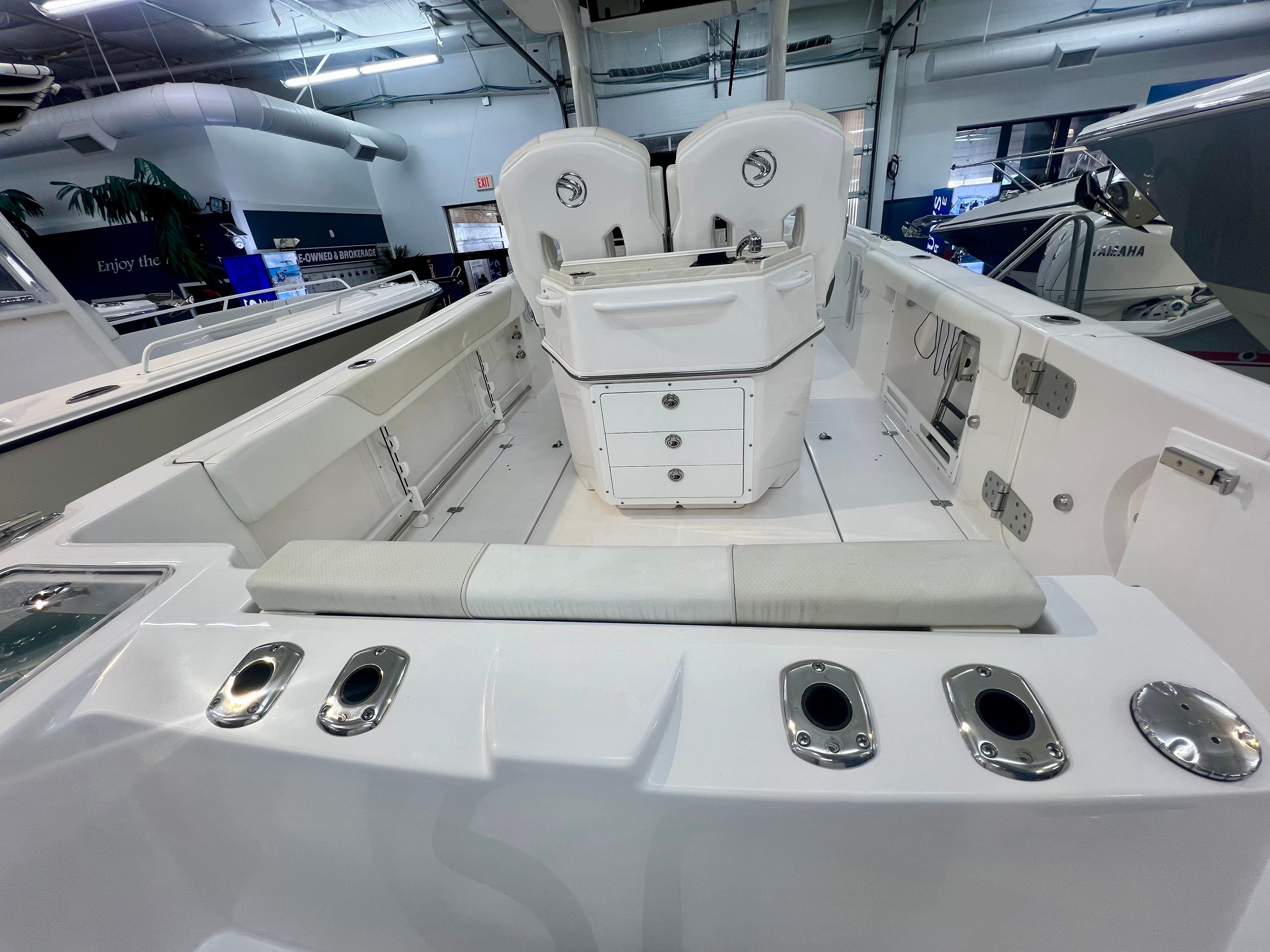 Power and precision define the performance of the Edgewater 262 CC. Equipped with dual Yamaha F250XSB2 engines, this center console boasts a combined 500 horsepower, delivering exhilarating speed and responsive handling. The Yamaha White engines not only enhance the boat’s visual appeal but also offer full maneuverability, ensuring smooth docking, effortless navigation, and confident control in a variety of conditions. Whether you are cruising along the coastline, chasing the next big catch, or heading out for a weekend getaway, the Edgewater 262 CC’s robust propulsion system guarantees a dynamic and enjoyable ride every time.
