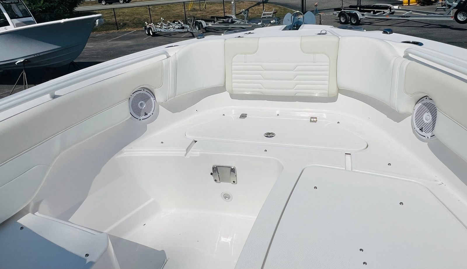 Owning the Edgewater 262 CX Dual Console means enjoying the perfect balance of fun, comfort, and convenience. The spacious layout is ideal for socializing, with ample seating and plush white accent cushions that invite relaxation. The dual console design offers flexibility, allowing you to switch seamlessly between fishing, cruising, and entertaining. The prep station makes it easy to serve refreshments or store your catch, while the advanced electronics keep you connected and informed at all times.The Seakeeper Ride system ensures a stable, enjoyable ride for everyone on board, minimizing motion sickness and maximizing comfort. The stylish Pewter and White color scheme turns heads wherever you go, while the durable construction and premium materials guarantee years of worry-free ownership. With its powerful twin Yamaha engines, the Edgewater 262 CX is ready to take you farther, faster, and with greater confidence than ever before.