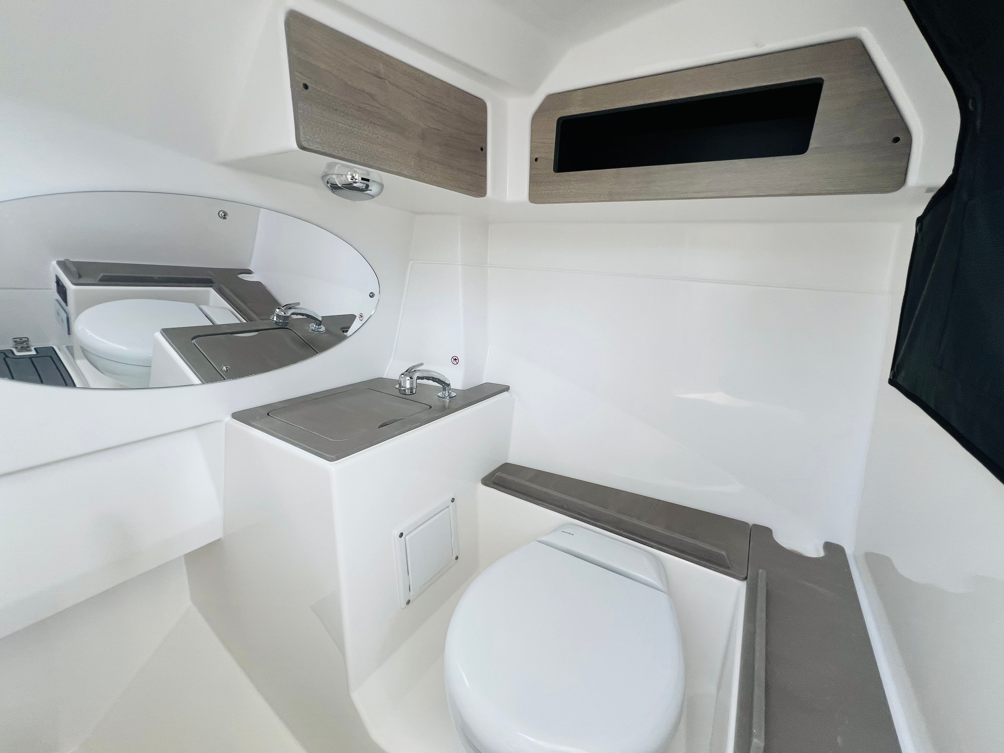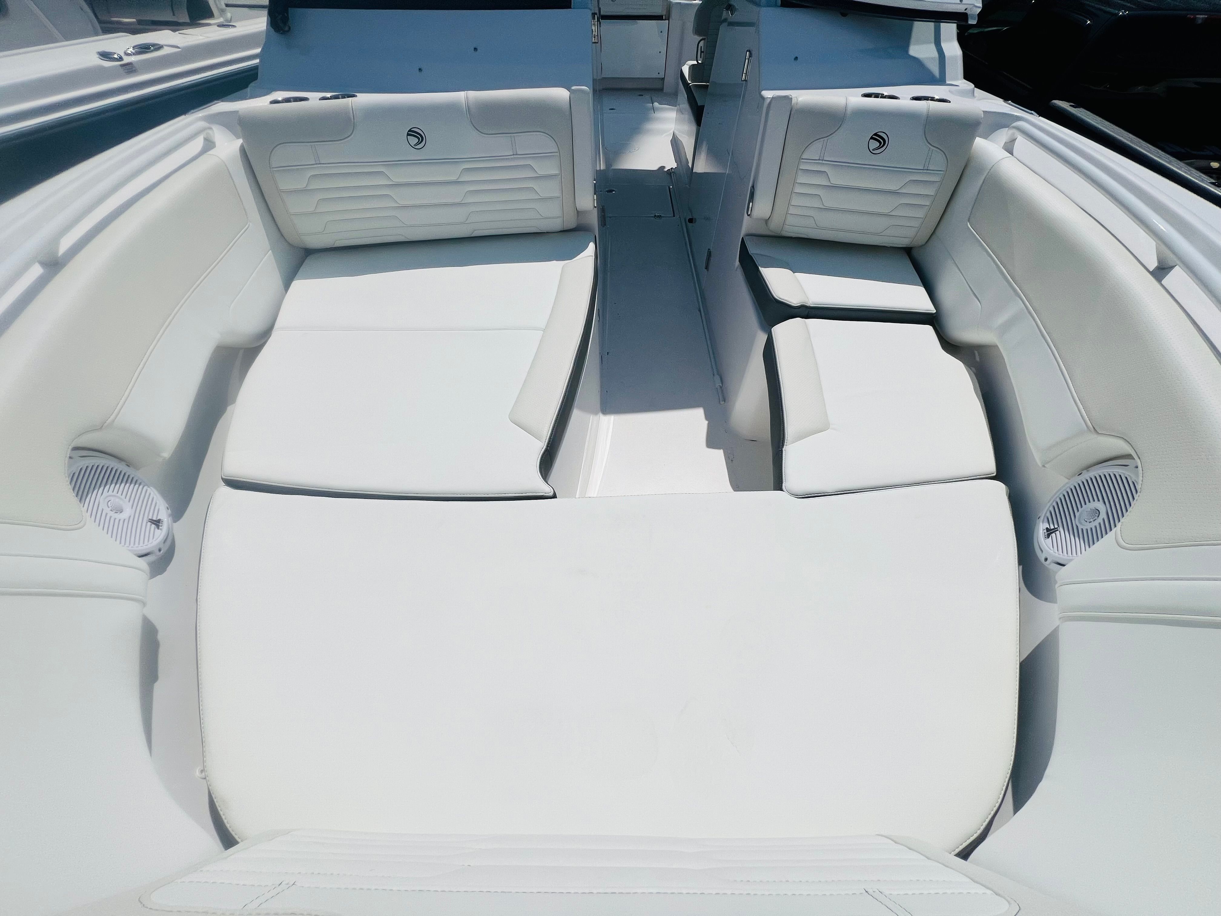 Practicality is at the heart of the Edgewater 262 CX. The ample storage areas make it easy to stow gear, supplies, and personal items, keeping the deck uncluttered and organized. The sink and cooler are perfect for keeping drinks cold and cleaning up after a meal, while the Corian countertop provides a durable, easy-to-clean surface for food prep or tackle organization.Docking is effortless thanks to the full maneuverability of the dual Yamaha engines, and the white rubrail with stainless steel insert offers added protection during close quarters. The advanced Garmin navigation system and radar ensure safe passage in all conditions, while the VHF radio and remote mic keep you connected with other boaters and emergency services. The bow and cockpit covers protect your investment from sun, rain, and debris, reducing maintenance and preserving the boat’s appearance.