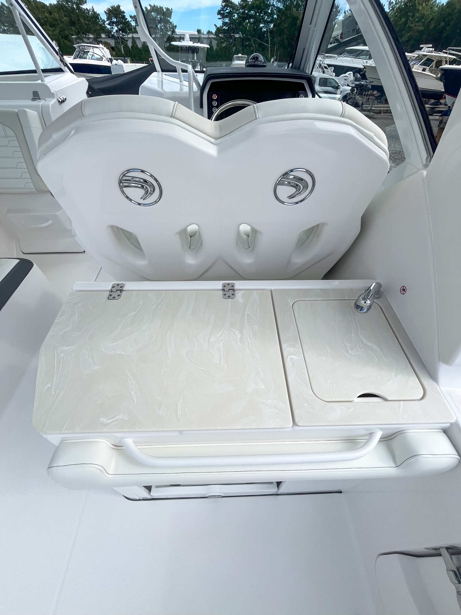 - Prep Station with Corian Countertop, Storage area, Sink, Cooler w/White Accent Cushion