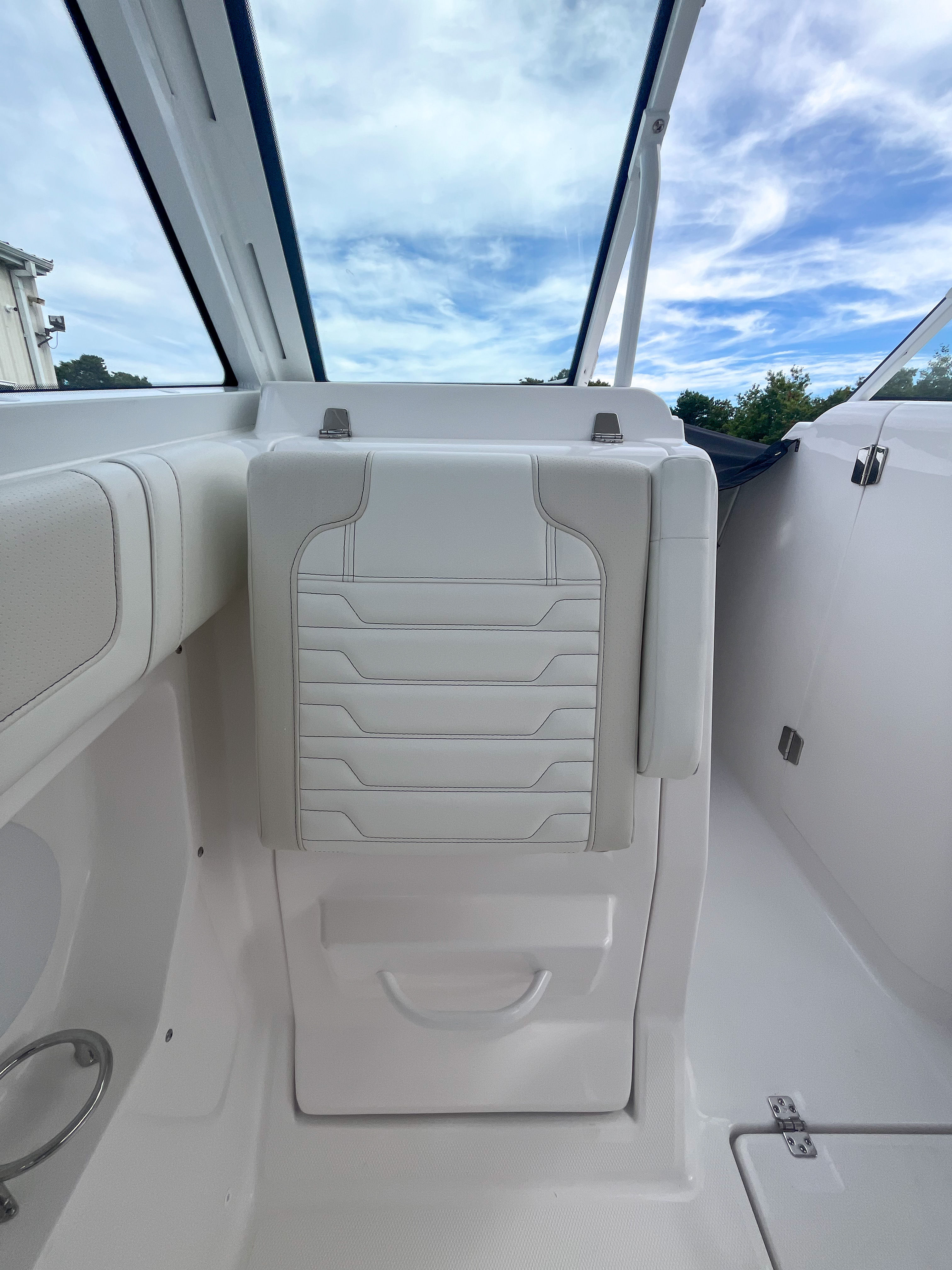The Edgewater 262 CX is designed with practicality in mind, making ownership as enjoyable as it is rewarding. The ample storage areas throughout the boat provide space for gear, water toys, and essentials, keeping the deck clutter-free and organized. The prep station with sink and cooler is perfect for hosting onboard picnics or preparing refreshments for a day on the water. Docking and maneuvering are made easy thanks to the full maneuverability of the dual Yamaha engines, giving you confidence in tight spaces or busy marinas. The durable white rub rail with stainless steel insert offers added protection during docking, while the black Stamoid curtain enclosure ensures you can enjoy your boat in a variety of weather conditions.