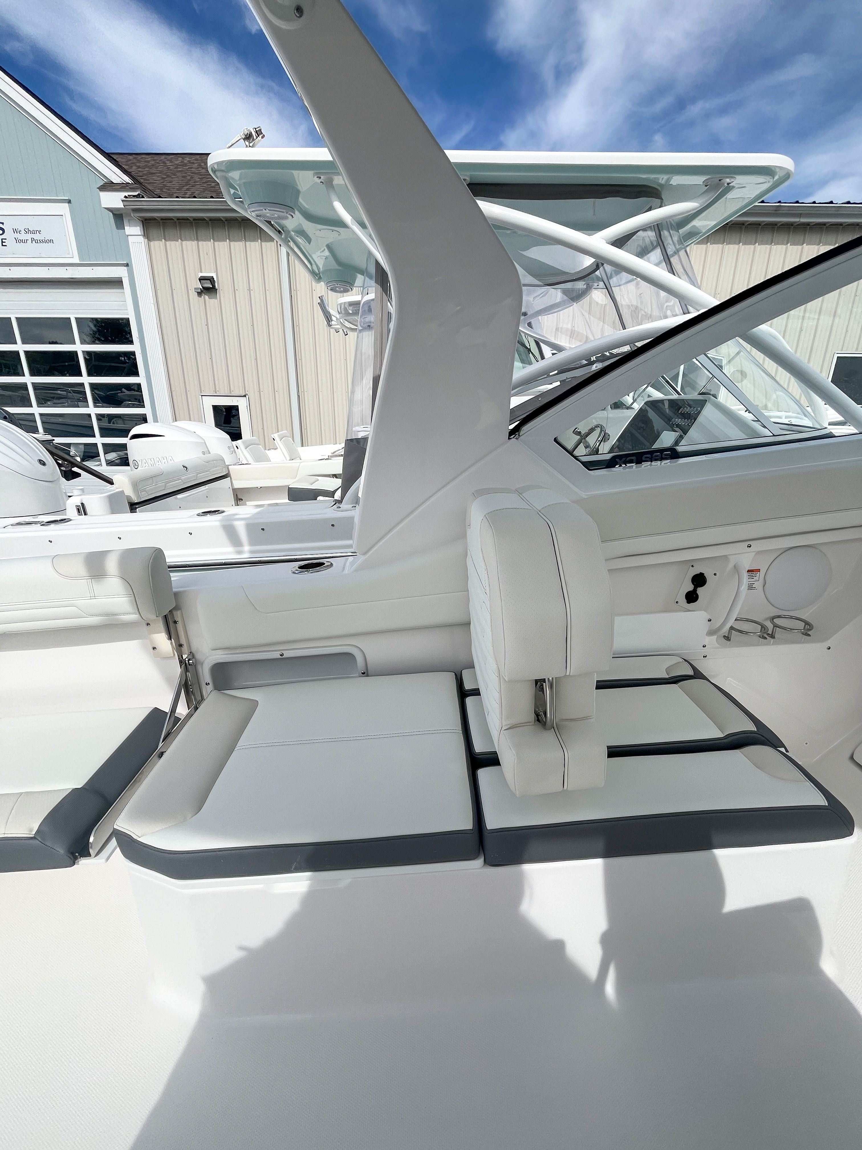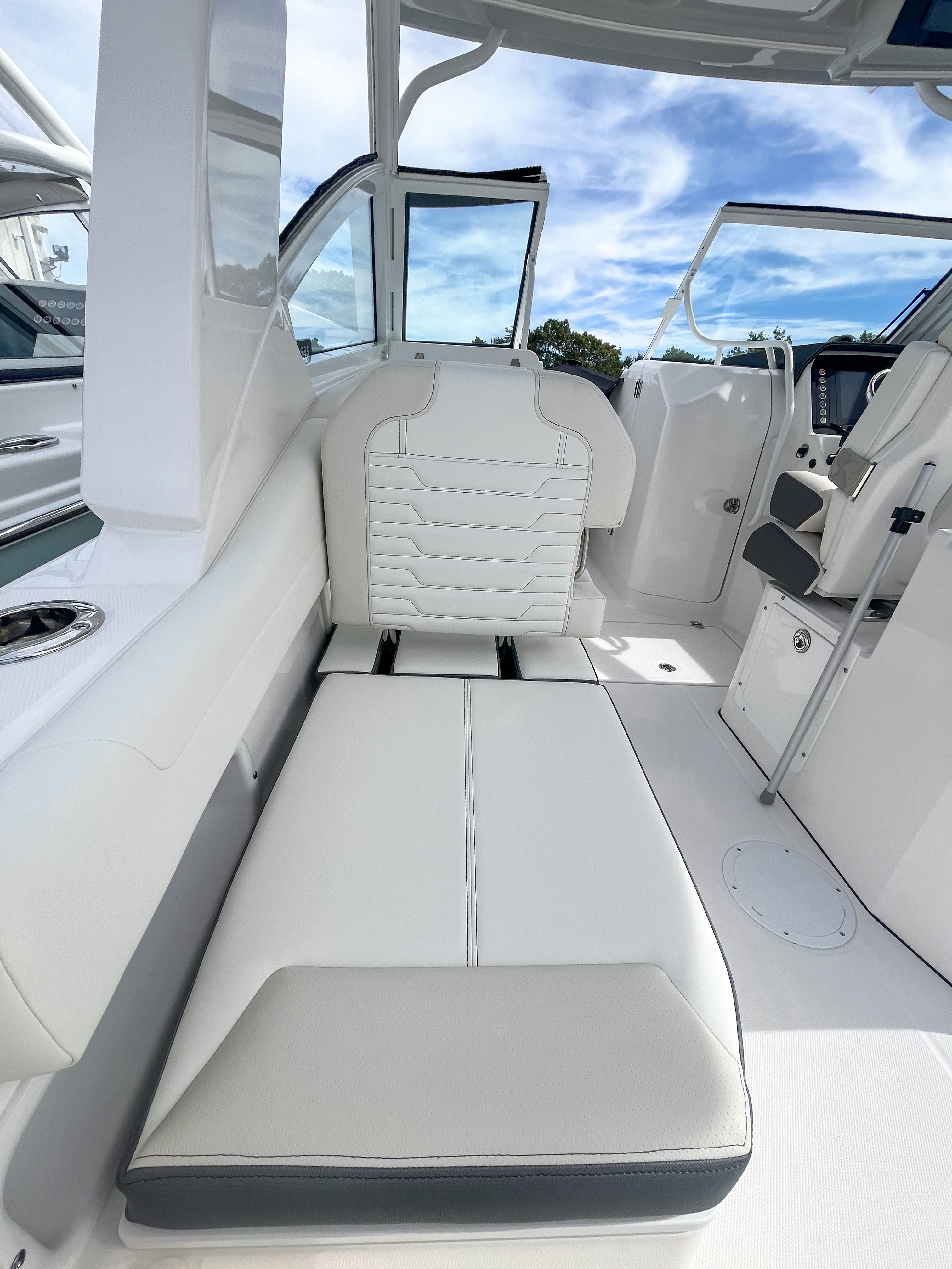 Power and precision are at the heart of the Edgewater 262 CX. Equipped with dual Yamaha F200XSA2 engines, this boat delivers a combined 400 horsepower, ensuring exhilarating acceleration, smooth cruising, and reliable performance in a variety of conditions. The Yamaha White engines not only provide robust power but also add a touch of style to the boat’s overall aesthetic. Full maneuverability is a standout feature, allowing for effortless handling whether you are docking, cruising, or exploring new waters. The Seakeeper Ride 450MM system further enhances stability and comfort, minimizing pitch and roll for a smoother ride even in choppier conditions.