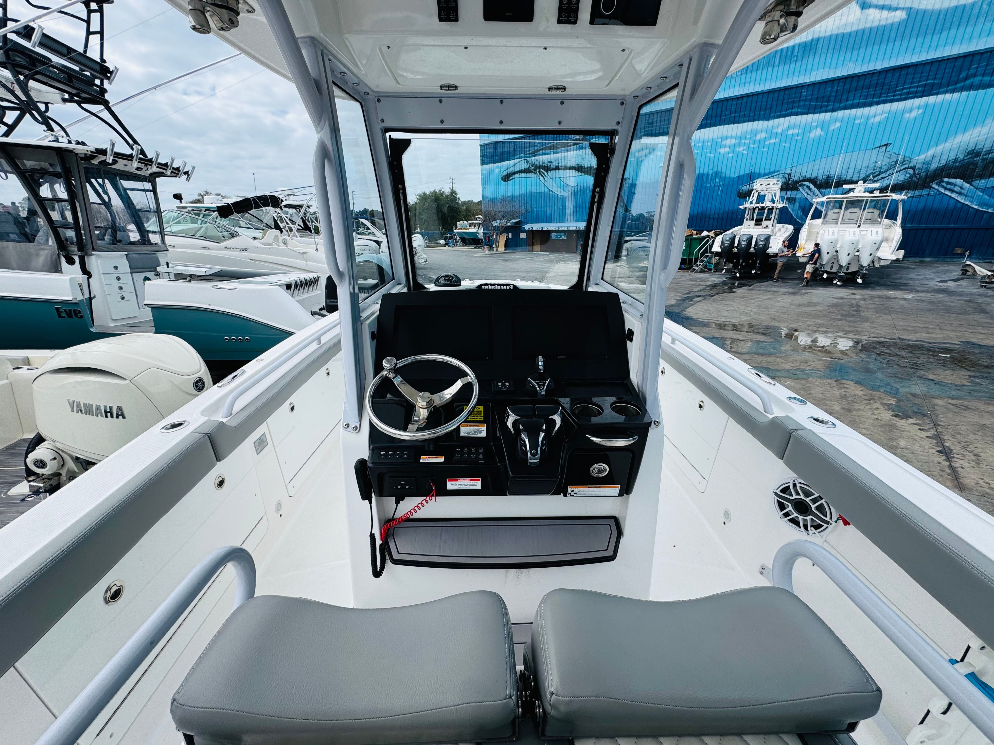 The 2023 Everglades 285 CC is packed with features that enhance both functionality and enjoyment on the water. The spacious center console layout provides ample room for movement, making it easy to transition from fishing to entertaining guests. The ergonomic helm is designed for maximum visibility and control, ensuring that the captain can operate the boat with confidence. High-quality materials and finishes are evident throughout the vessel, reflecting the premium craftsmanship that Everglades is known for. The 28-foot length offers plenty of deck space for fishing, lounging, or socializing, while the innovative design ensures that every inch is utilized efficiently. Storage compartments are strategically placed to keep gear organized and easily accessible, adding to the boat’s practicality and convenience.