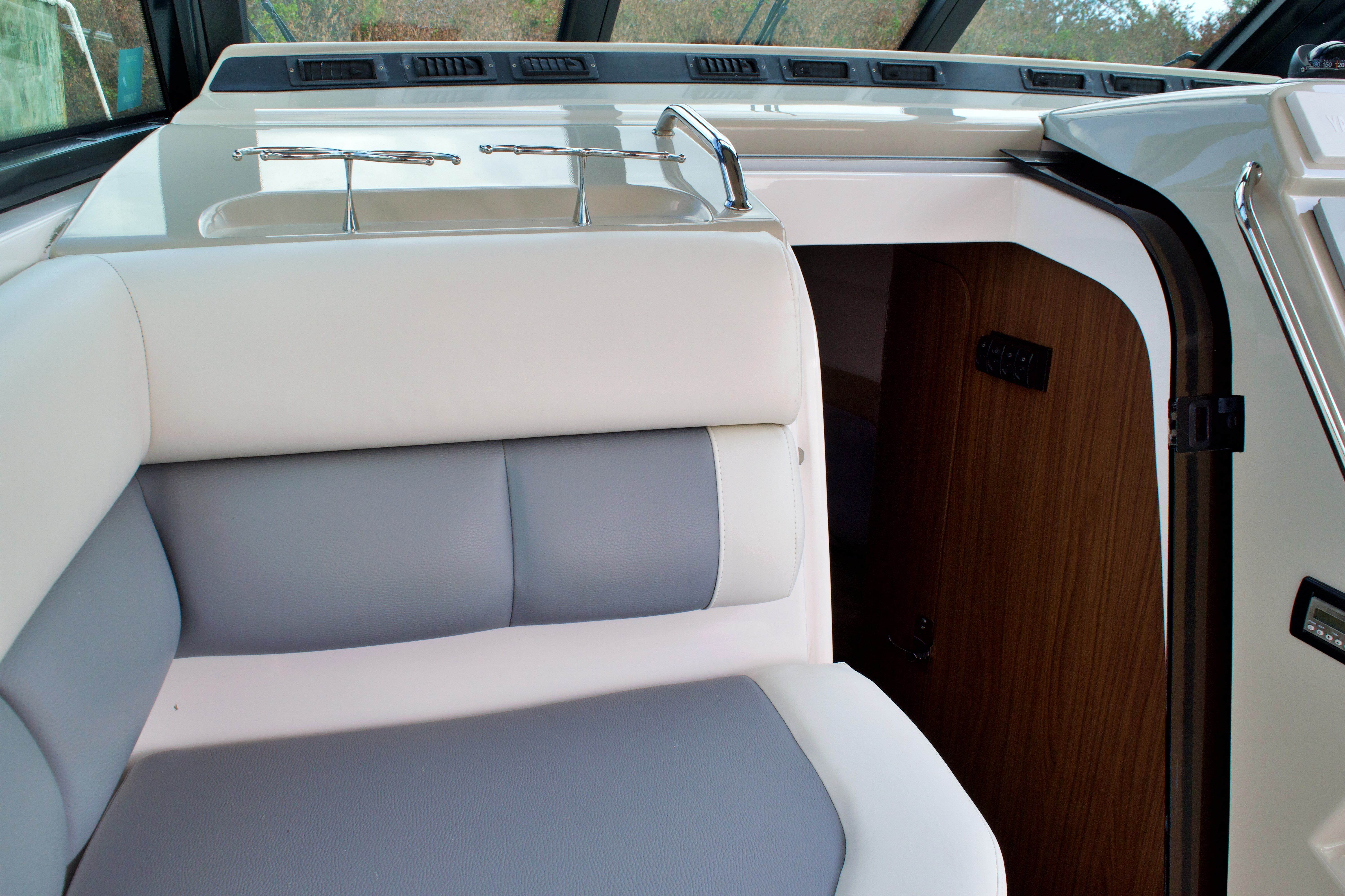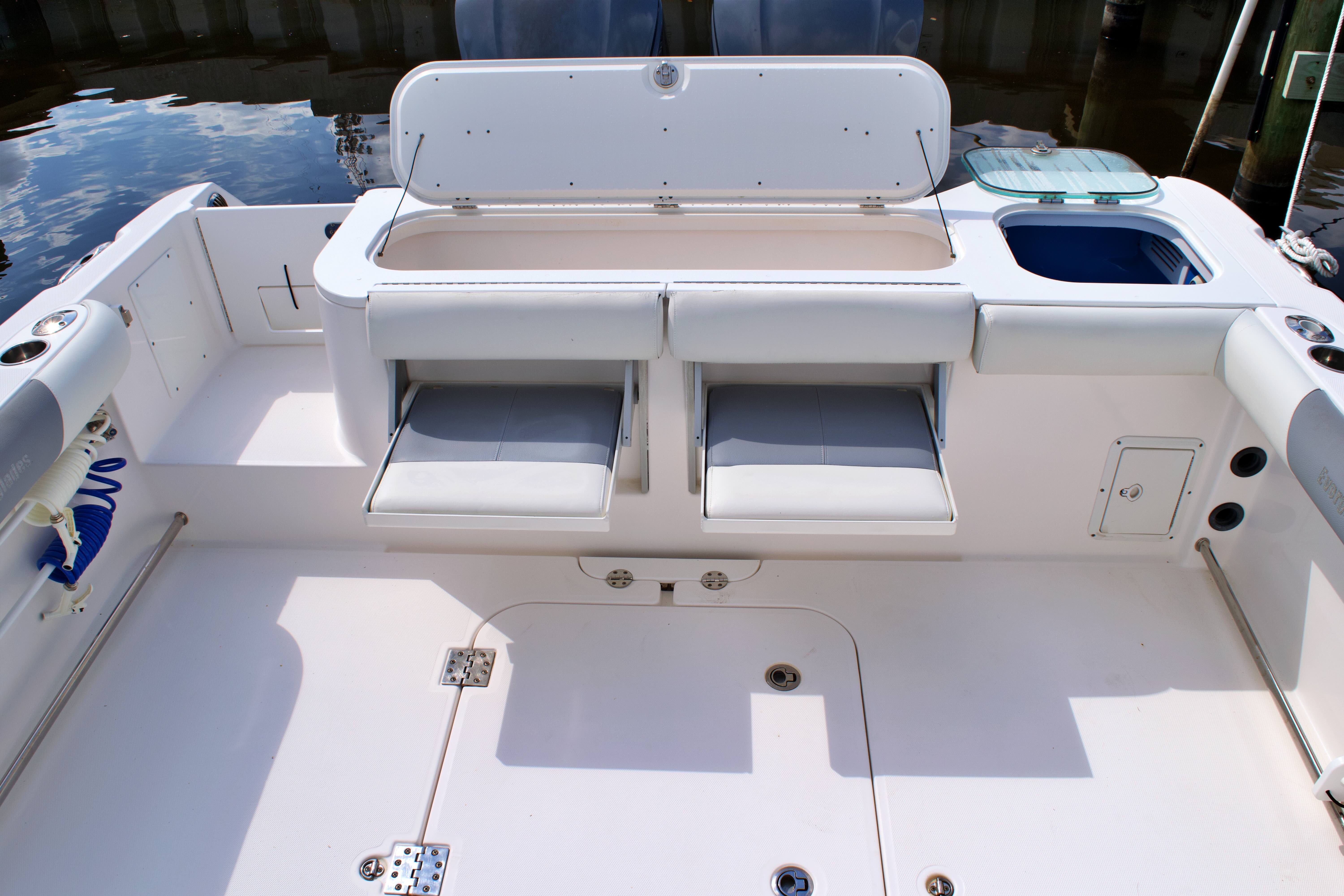 The Everglades 320 EX is loaded with features that enhance both its fishing capabilities and onboard comfort. As an offshore boat for sale, it’s designed to meet the needs of serious anglers while also catering to those who appreciate luxury and convenience. The spacious cockpit provides plenty of room for casting lines and reeling in the catch of the day, while the well-designed helm offers excellent visibility and intuitive controls for stress-free navigation. The 32-foot length ensures generous deck space, making it easy to move around and enjoy all the amenities this Everglades boat for sale has to offer.