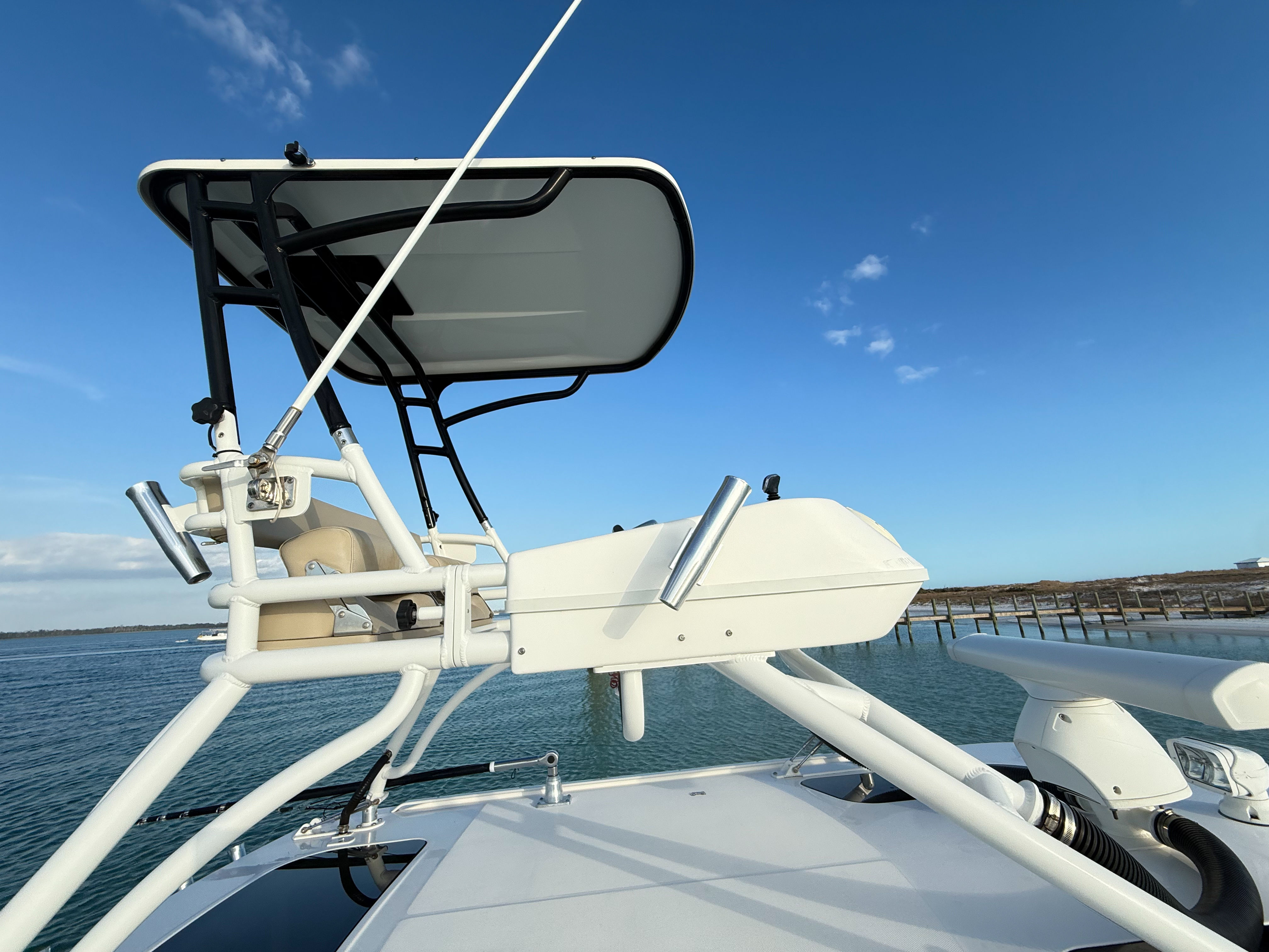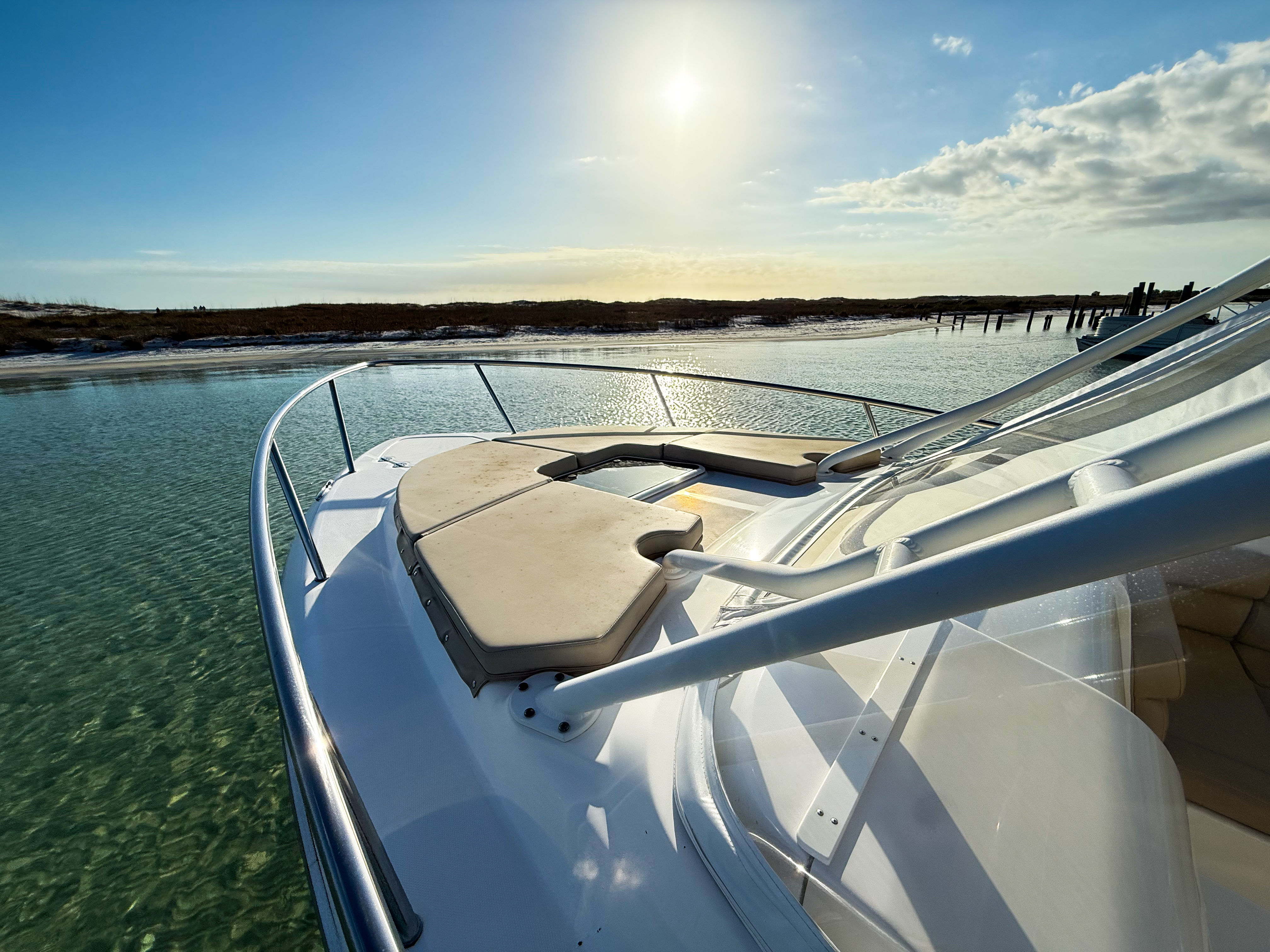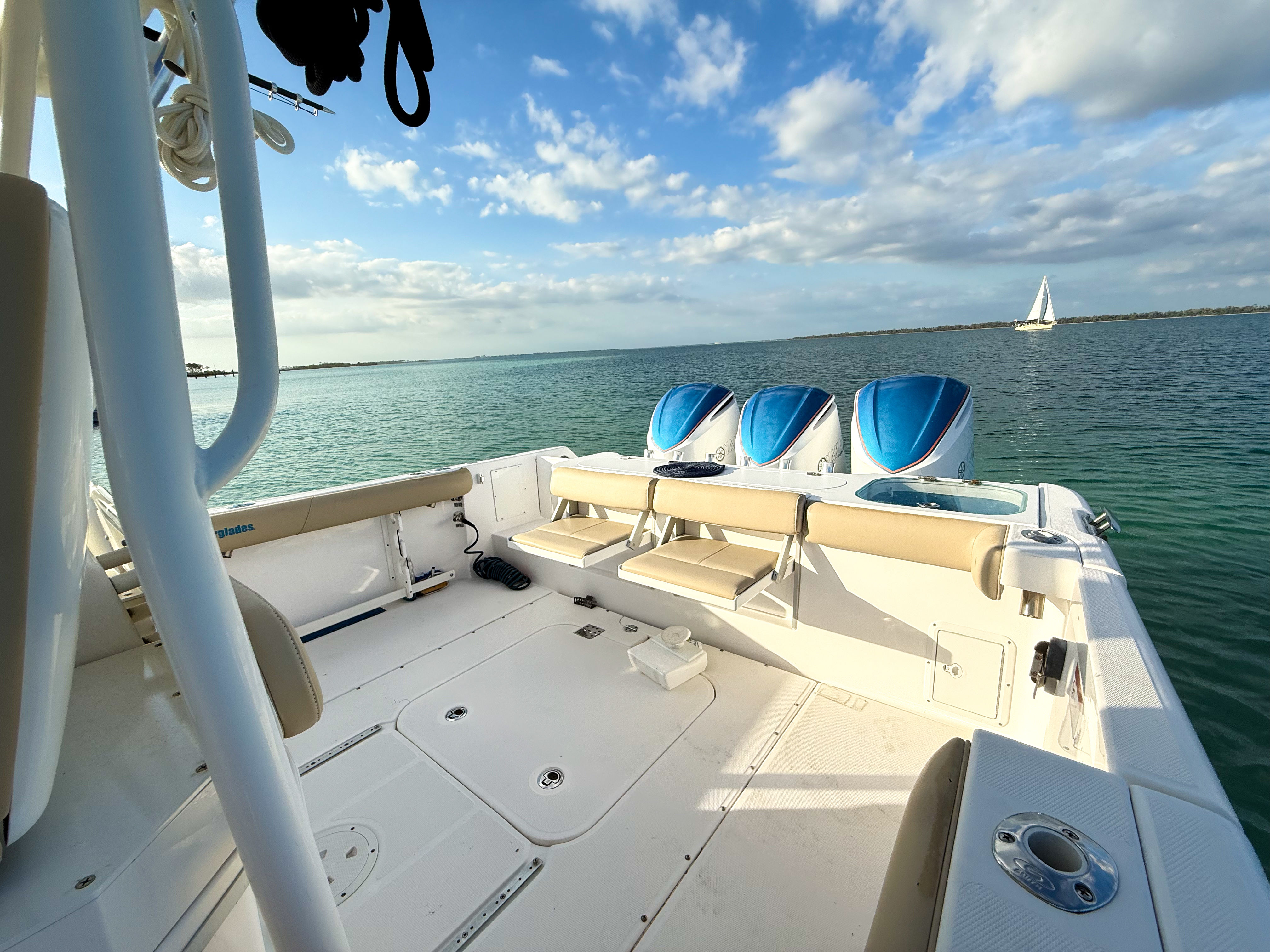 Power and precision are at the heart of the Everglades 350 LX. Equipped with three high-performance engines delivering a combined 900 horsepower, this cruiser boat for sale is engineered for exhilarating speed and smooth handling. With only 241 engine hours, these engines promise many more years of reliable performance, making this vessel a smart investment for those who value both power and longevity. The triple-engine setup ensures that you can tackle a variety of water conditions with confidence, whether you’re cruising along the coastline or heading out for offshore adventures.