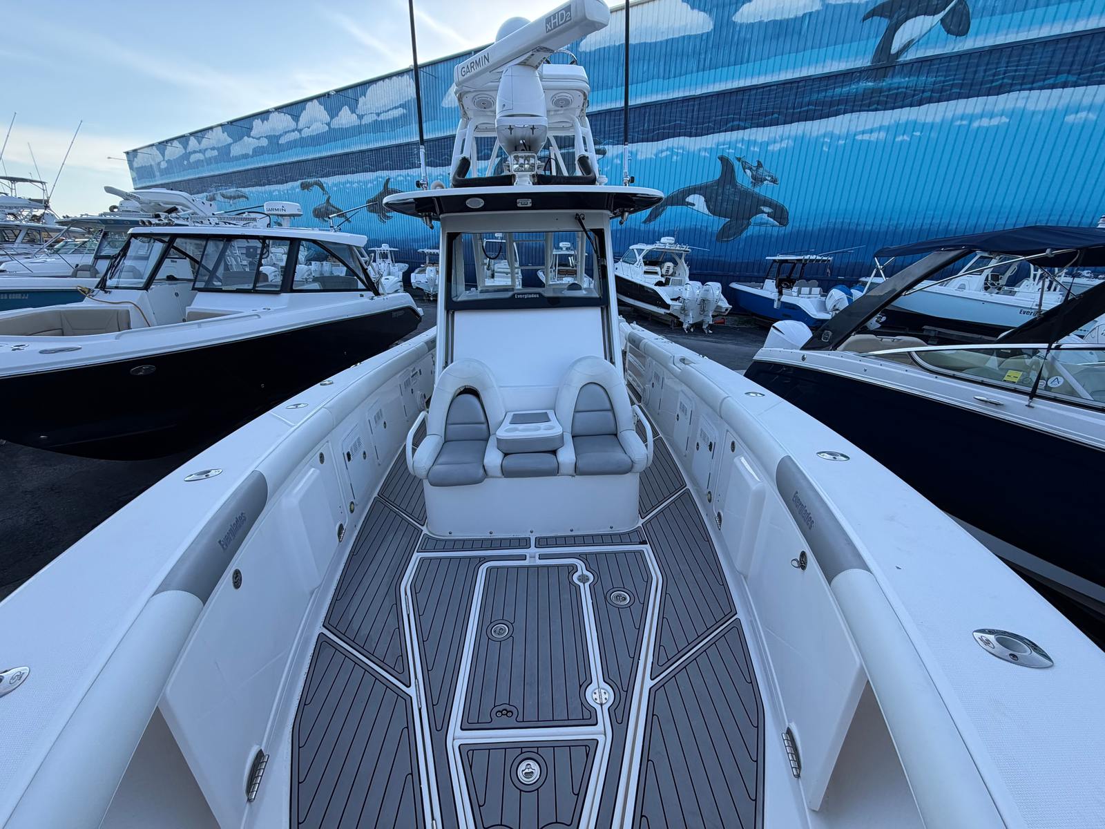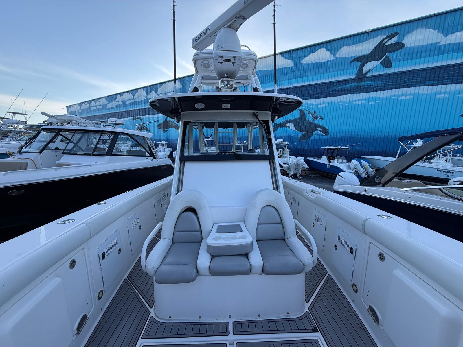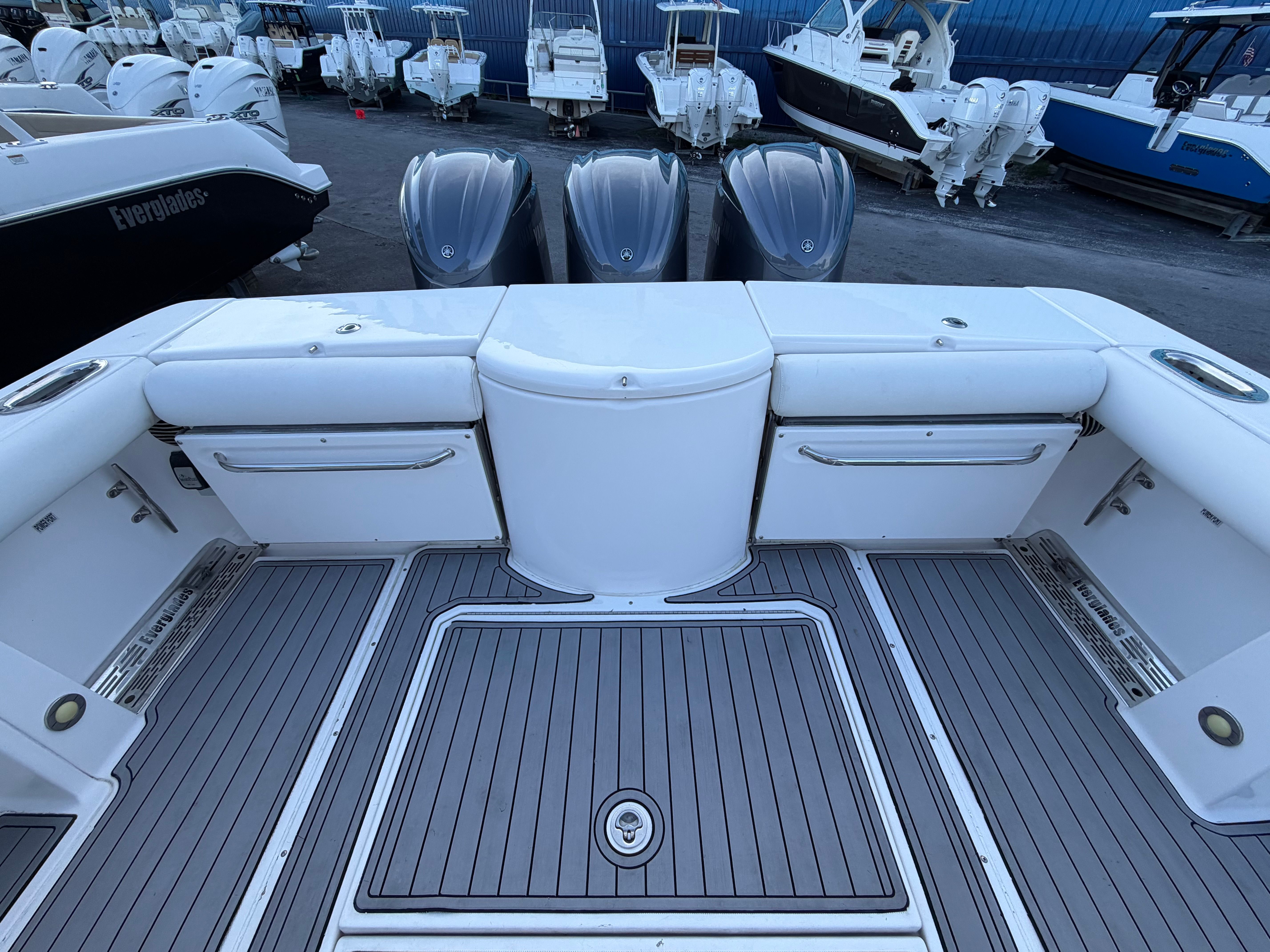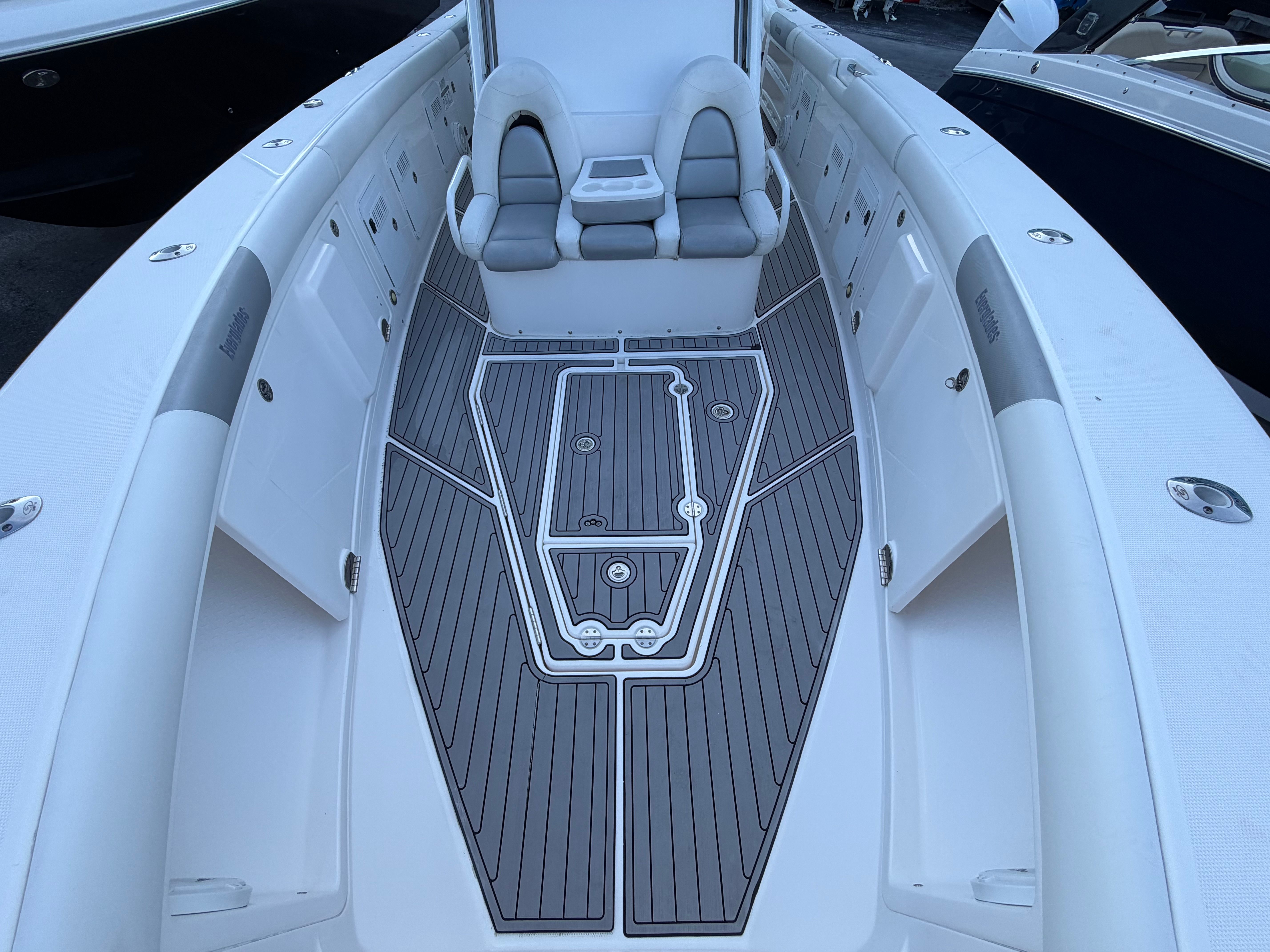 Beyond its recreational appeal, the Everglades 355 CC is designed with practicality in mind. Its length and layout make docking and storage straightforward, while the triple-engine setup offers both power and efficiency. The boat’s design facilitates easy cleaning and maintenance, ensuring that owners can spend more time enjoying the water and less time on upkeep.The center console arrangement also enhances safety and convenience, allowing for quick access to controls and equipment. Whether you’re navigating busy marinas or exploring remote coves, the 355 CC’s maneuverability and responsive handling make every outing stress-free. The boat’s fuel-efficient engines help maximize your time on the water, reducing the need for frequent refueling and making longer trips more enjoyable.