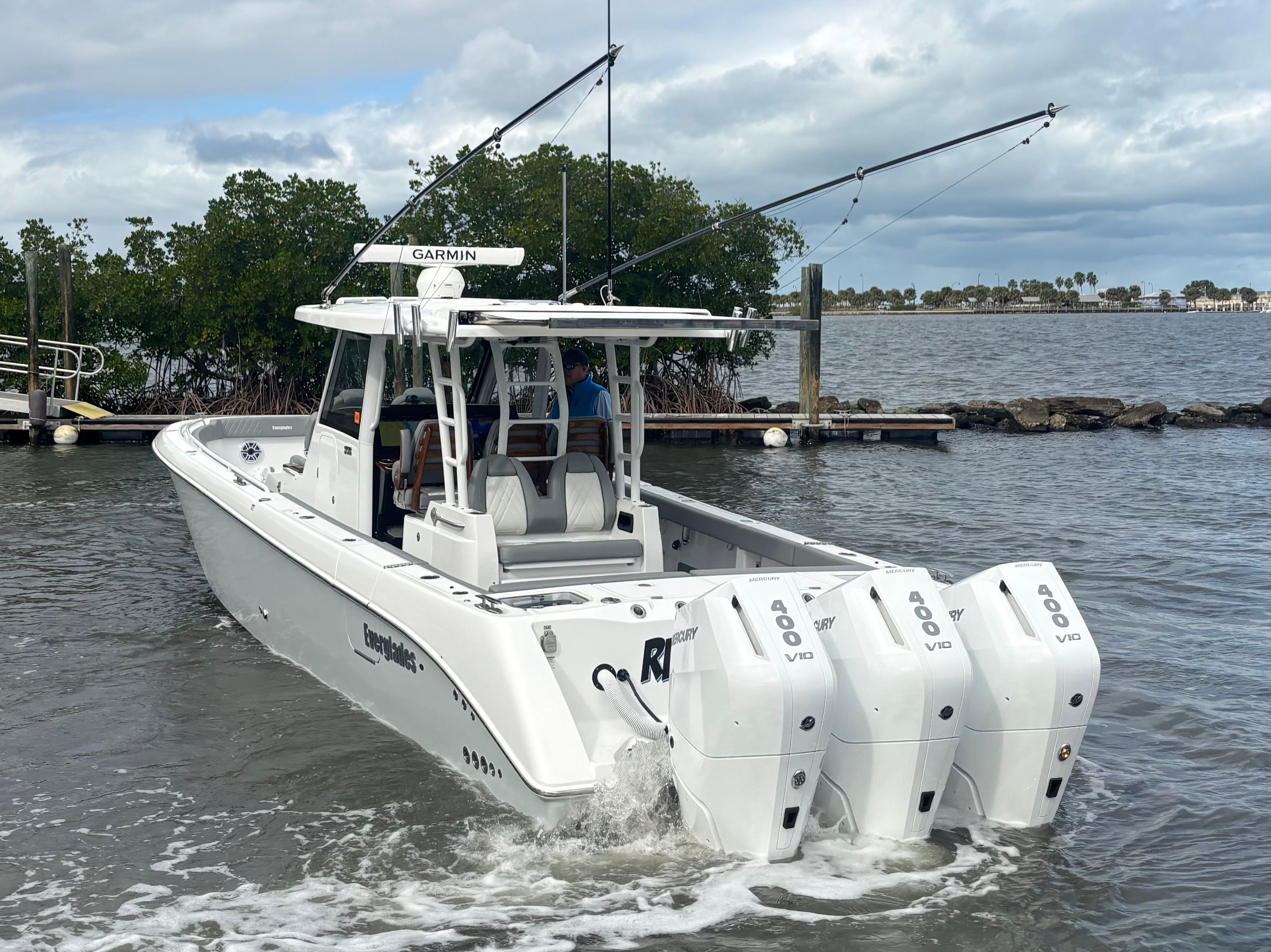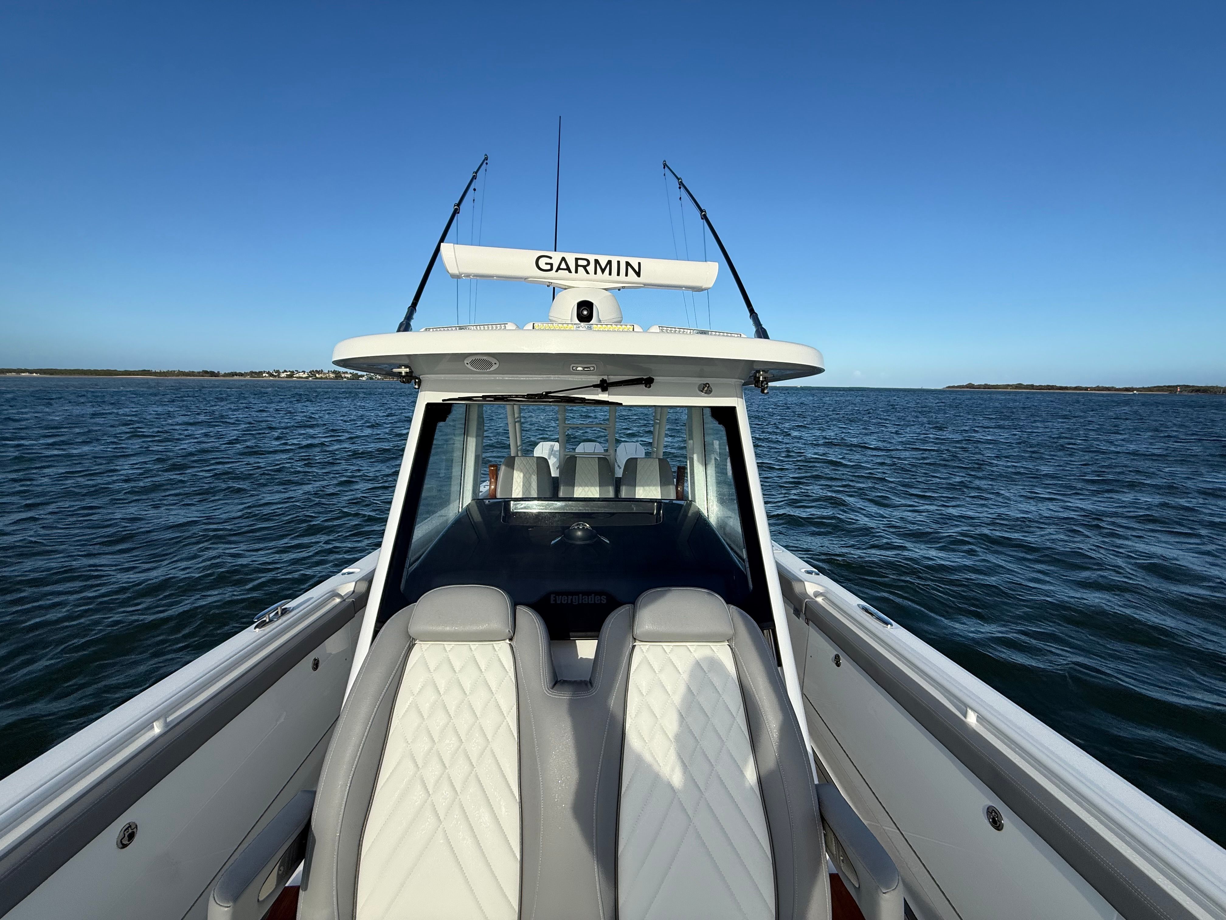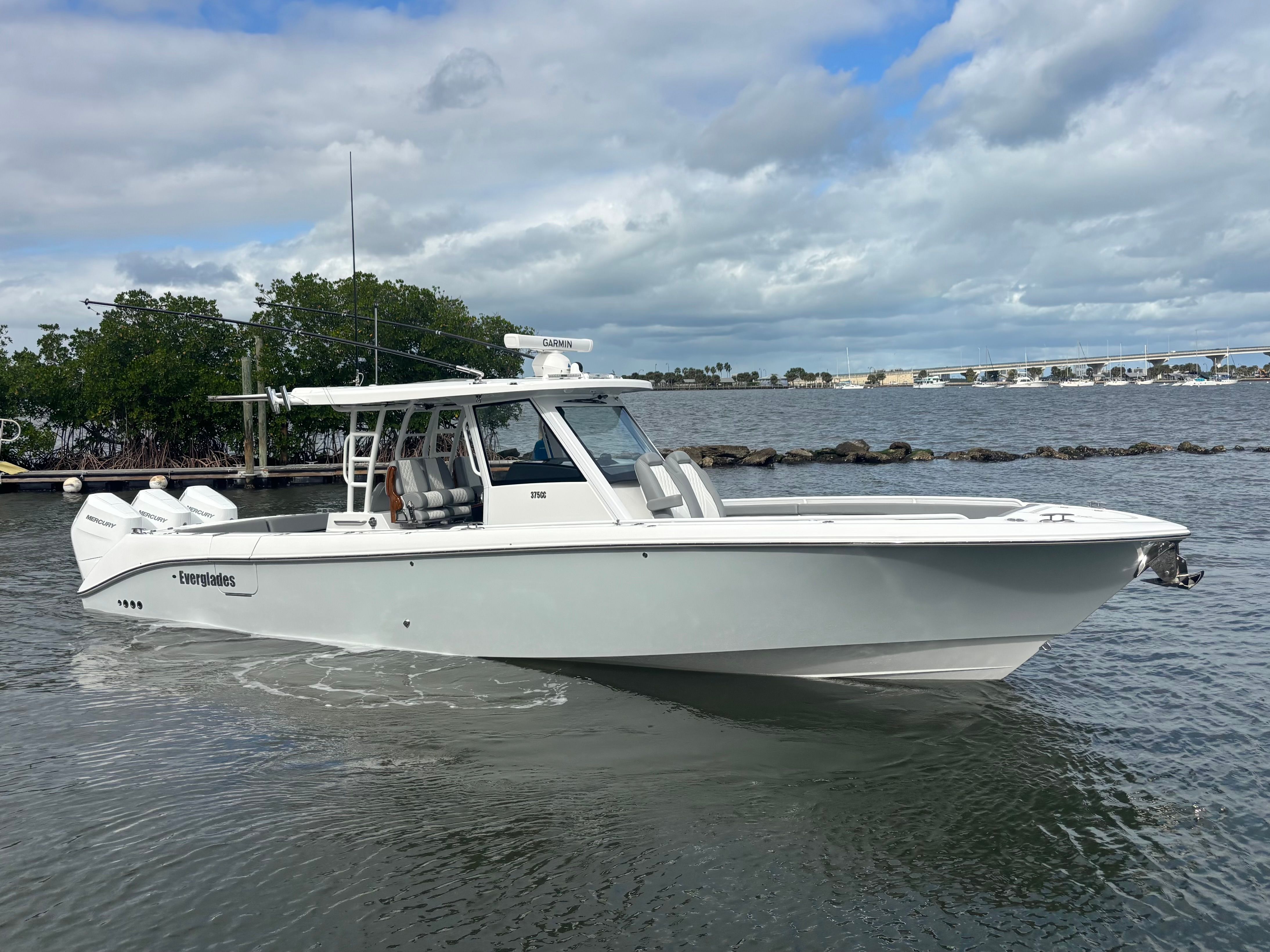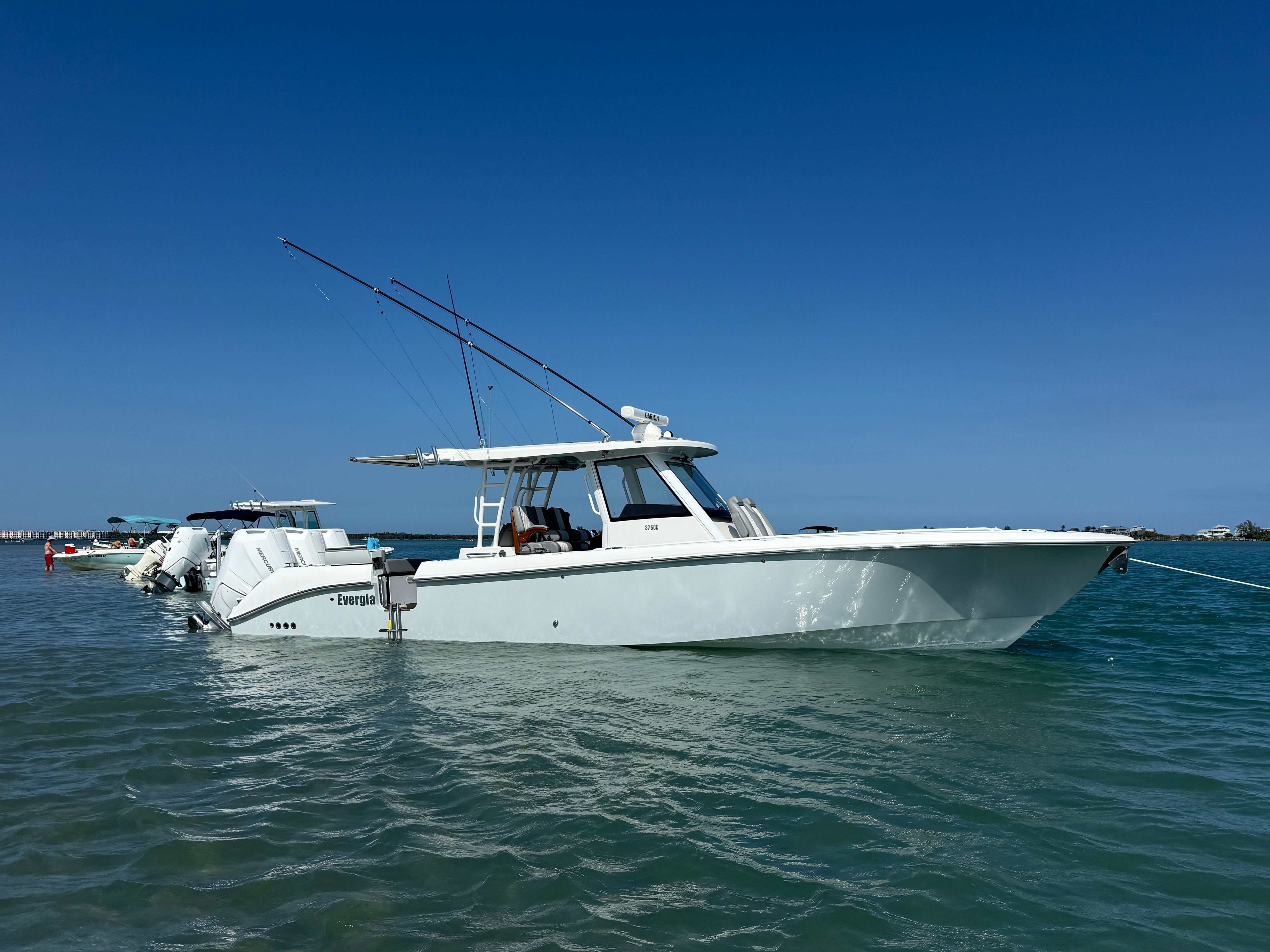 Triple Mercury 400 V10 | (88) Current Hours | Everglades (3) Year Components Warranty Expires July, 2028 | Mercury Engine Extended Warranties Expire June, 2032 | Hull Color - Whisper Gray | Interior Color - Flint Gray | Teak Trim Package | Release Marine | Teak Ladder Back Helm Seats | Dual Garmin 9222 Chart Plotters | Garmin Fantom 4' Open Array Radar | Garmin 315 VHF | AIS 800 Receiver | GXM 54 Sirius Weather Receiver | B175 High & Low Transducers | Sionyx Night Vision Camera | Canvas Package - Silver Color | Carbon Fiber Steering Wheel | Engine Flush System | DC Powered Cabin & Helm AC | DC Powered Chiller Plate - Mezzanine Box | JL Speakers M6 LED | Triple Lower Profile Light Bars | Retractable Makefast Awning | Seakeeper 3 Stabilizer | Upgraded Zip Wake PRO 400 E Series | Under Gunnel (4) Electric Reel Power Ports | Underwater LED Lights | SeaDek Flooring | (2) Gemlux Lockable Swival Rod Holders | Gemulx Carbon Fiber 18' Outriggers| SALES CONTACT - CHRIS FRAMBES 772.528.0840