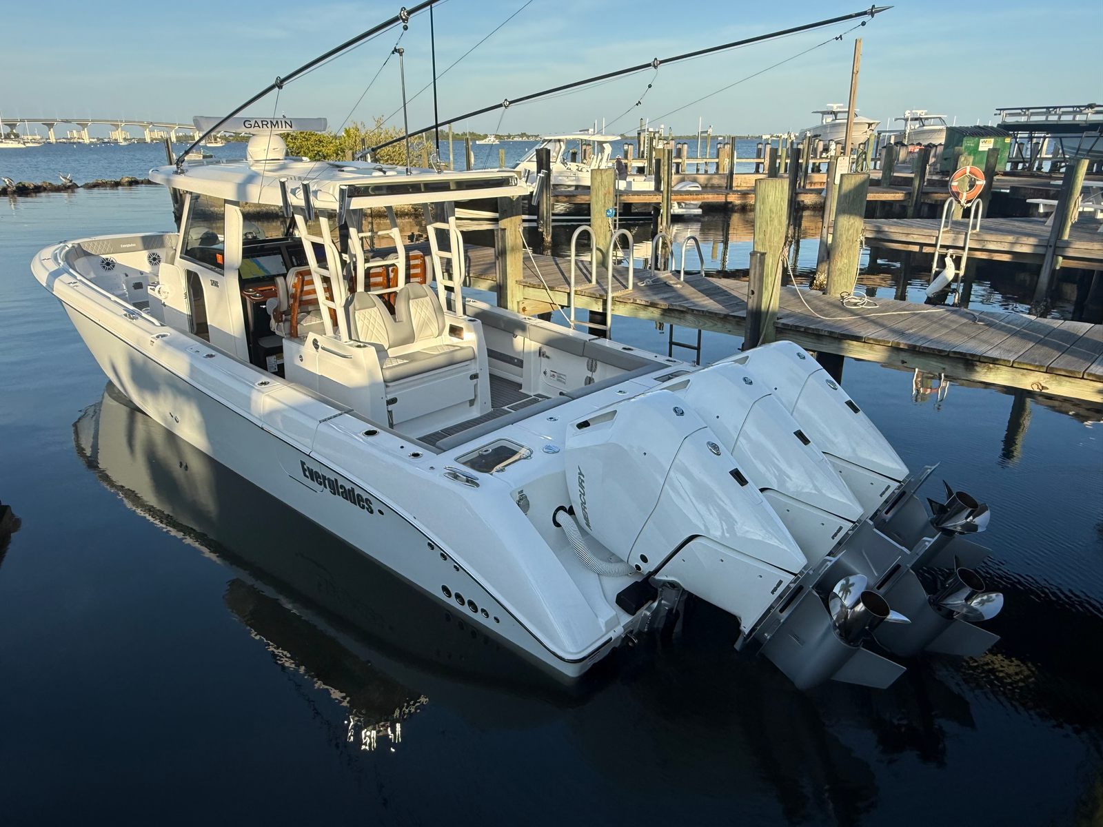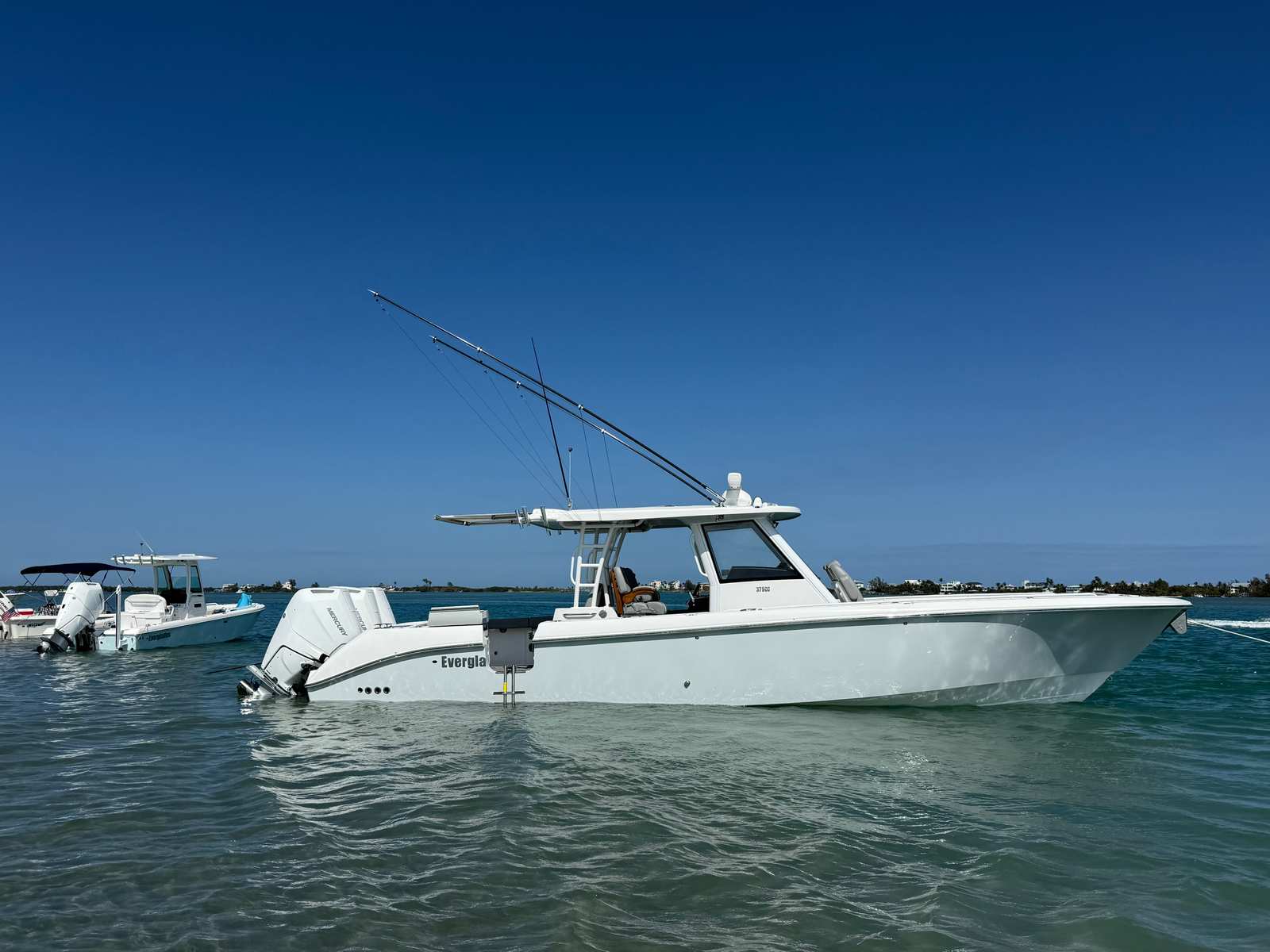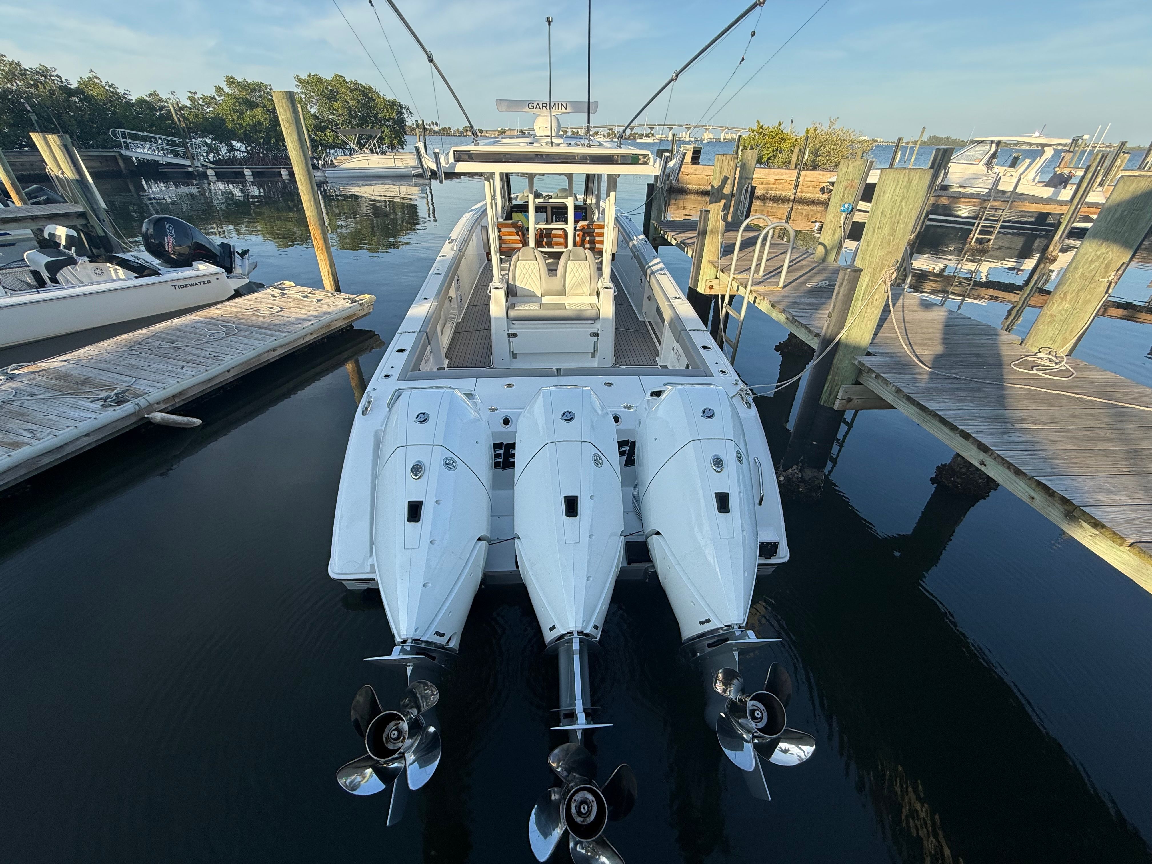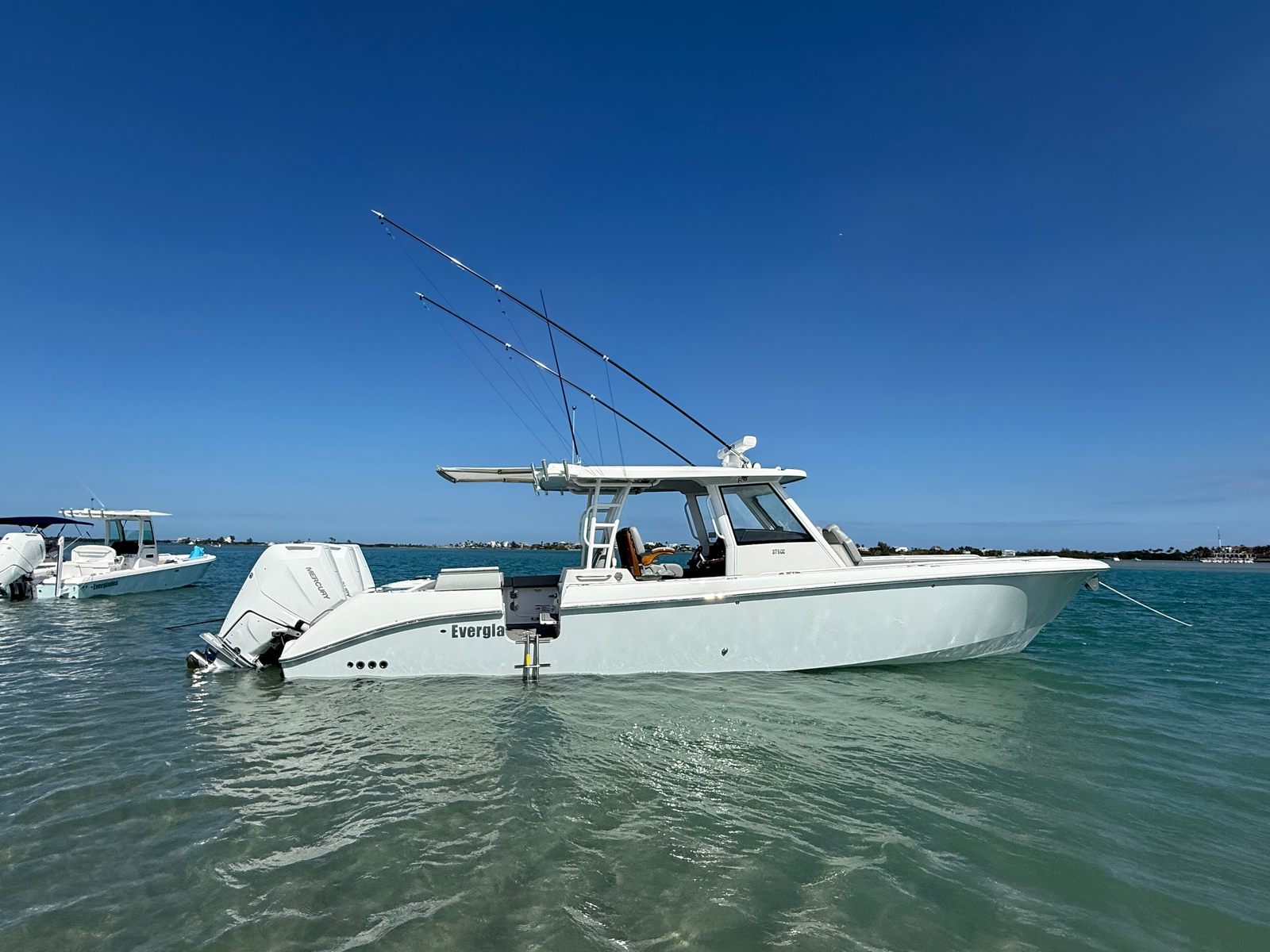 Triple Mercury 400 V10 | (88) Current Hours | Everglades (3) Year Components Warranty Expires July, 2028 | Mercury Engine Extended Warranties Expire June, 2032 | Hull Color - Whisper Gray | Interior Color - Flint Gray | Teak Trim Package | Release Marine | Teak Ladder Back Helm Seats | Dual Garmin 9222 Chart Plotters | Garmin Fantom 4' Open Array Radar | Garmin 315 VHF | AIS 800 Receiver | GXM 54 Sirius Weather Receiver | B175 High & Low Transducers | Sionyx Night Vision Camera | Canvas Package - Silver Color | Carbon Fiber Steering Wheel | Engine Flush System | DC Powered Cabin & Helm AC | DC Powered Chiller Plate - Mezzanine Box | JL Speakers M6 LED | Triple Lower Profile Light Bars | Retractable Makefast Awning | Seakeeper 3 Stabilizer | Upgraded Zip Wake PRO 400 E Series | Under Gunnel (4) Electric Reel Power Ports | Underwater LED Lights | SeaDek Flooring | (2) Gemlux Lockable Swival Rod Holders | Gemulx Carbon Fiber 18' Outriggers| SALES CONTACT - CHRIS FRAMBES 772.528.0840