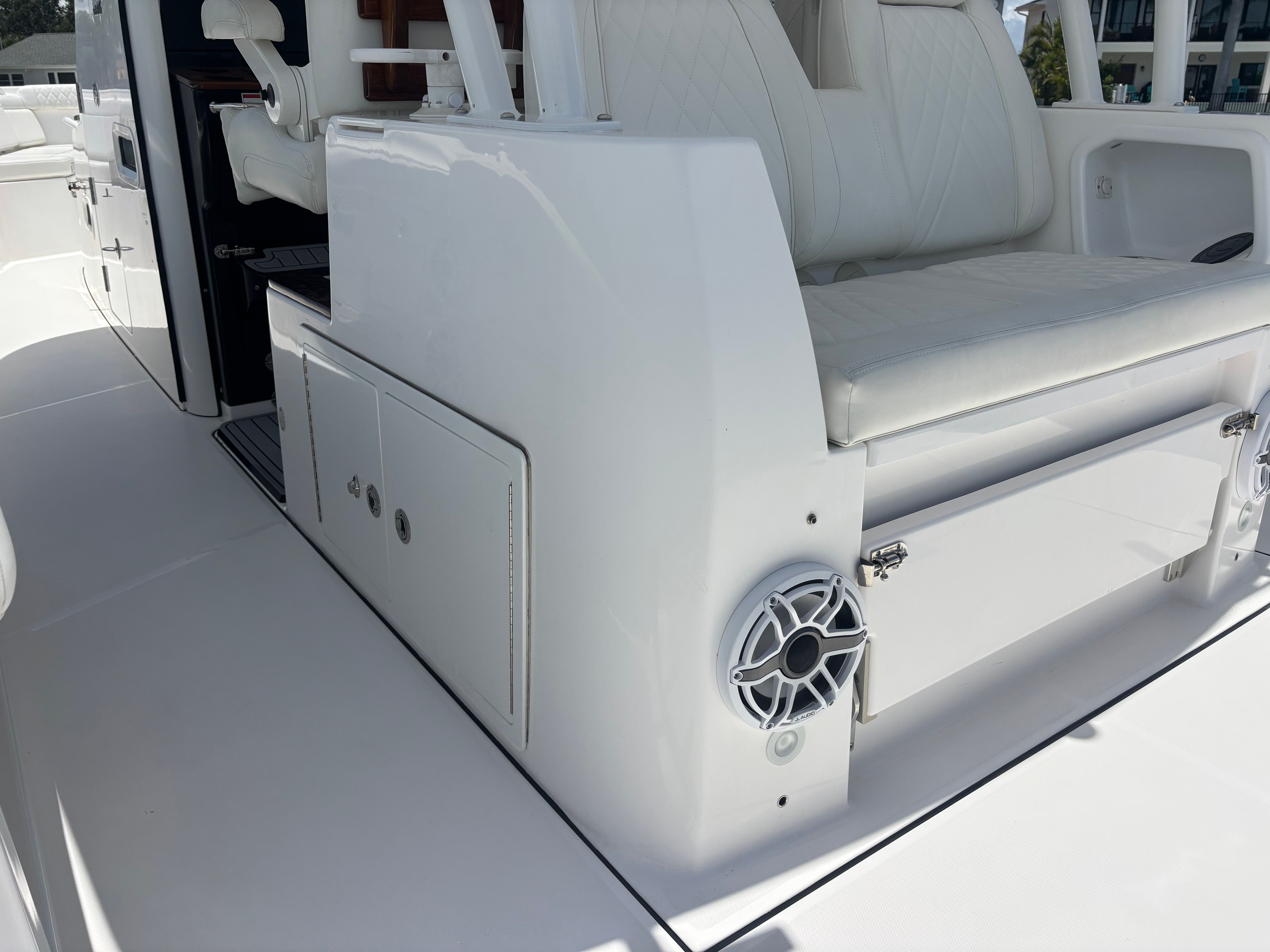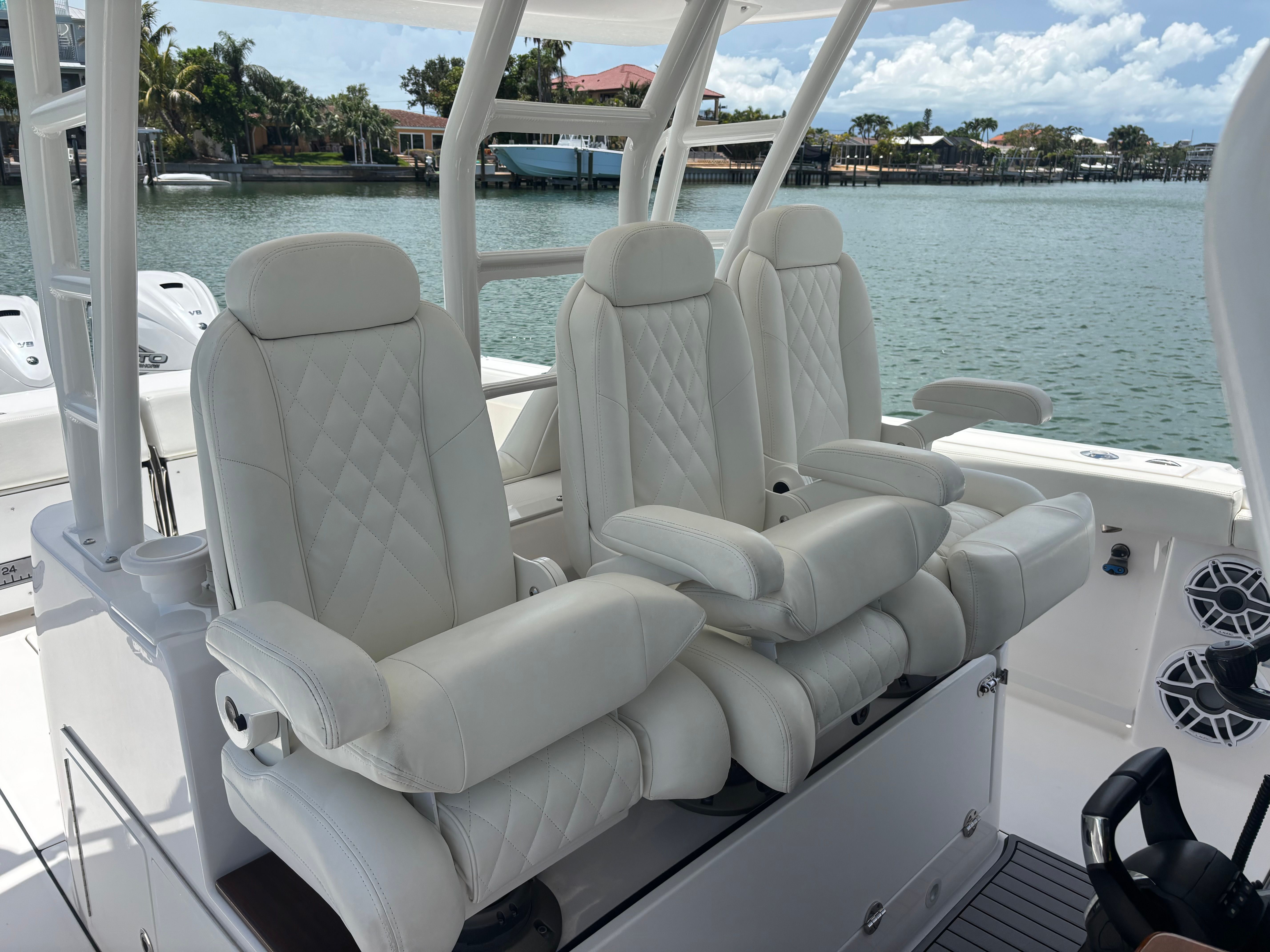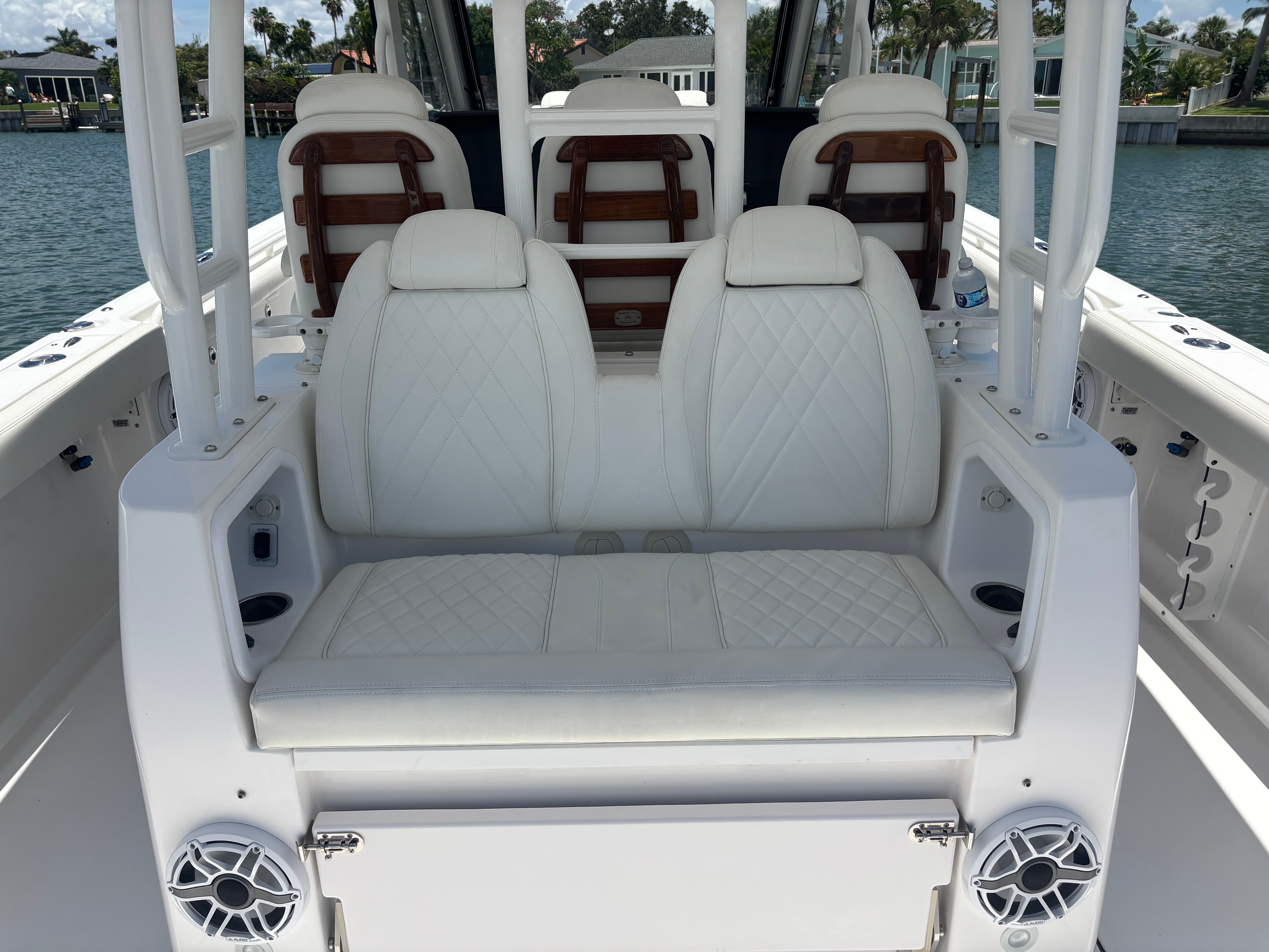 Powering the Everglades 395 CC are three high-performance engines, delivering a combined 1,275 horsepower. With only 265 engine hours, these engines offer plenty of life and reliability for years to come. The triple-engine setup ensures rapid acceleration, impressive top speeds, and smooth handling even in challenging conditions. Whether you’re cruising along the coastline, heading offshore for a fishing expedition, or enjoying a day of water sports, the Everglades 395 CC provides the power and agility you need for a thrilling ride. The advanced engineering behind this Center Console boat for sale guarantees optimal fuel efficiency and responsive maneuverability, making every journey enjoyable and stress-free.