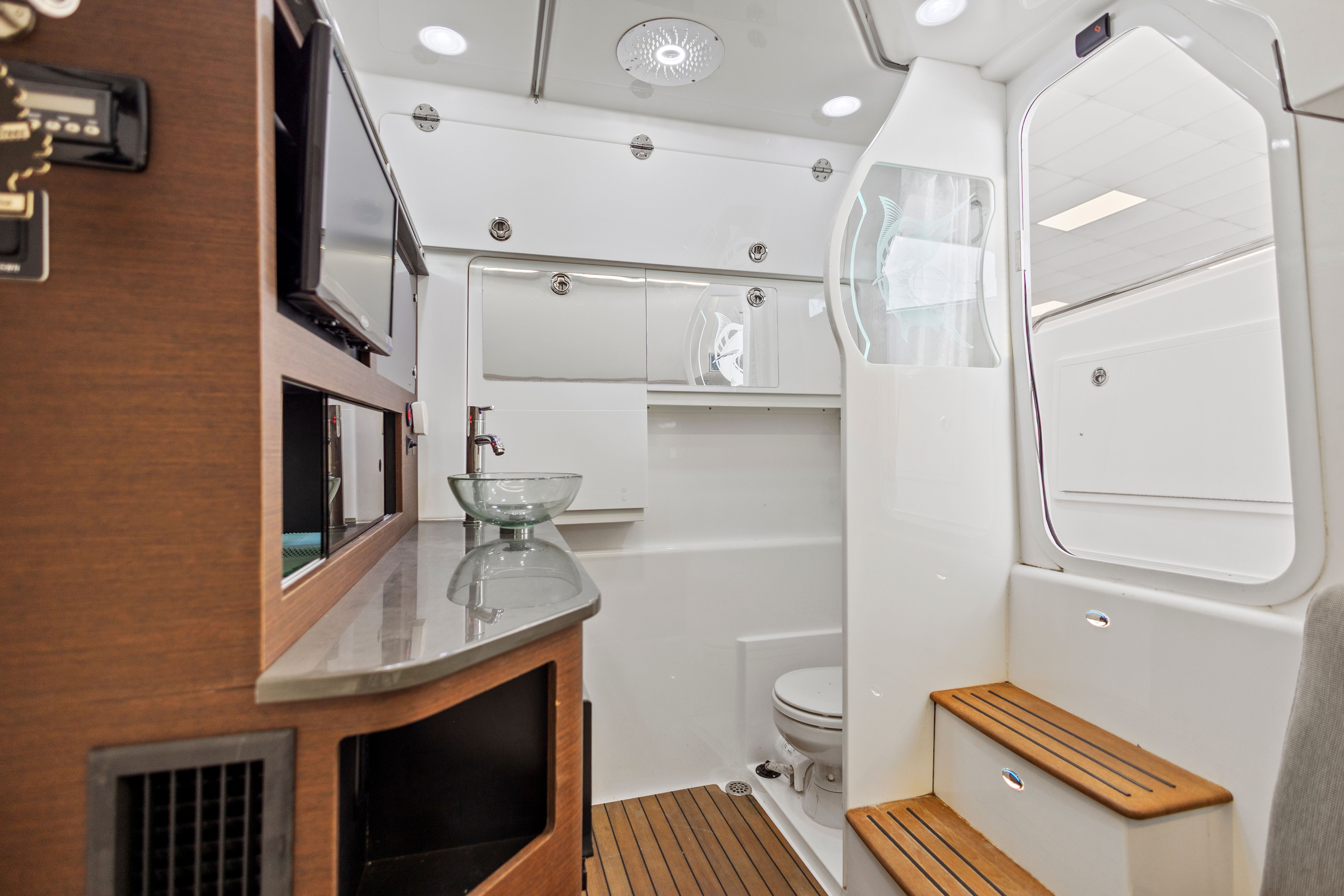 The 2019 Everglades 435 CC is as practical as it is luxurious. Its spacious design offers ample storage for all your gear, from fishing equipment to water toys and picnic supplies. The Center Console layout makes docking and maneuvering a breeze, even in tight spaces. Fuel efficiency is enhanced by the advanced engineering of the quad engines, allowing you to spend more time on the water and less time at the fuel dock. The durable construction and thoughtful design details make maintenance straightforward, so you can focus on enjoying your time on board. Whether you’re planning a quick day trip or an extended adventure, the 435 CC is equipped to handle it all with ease.