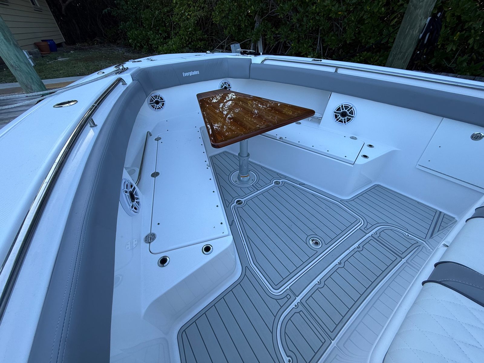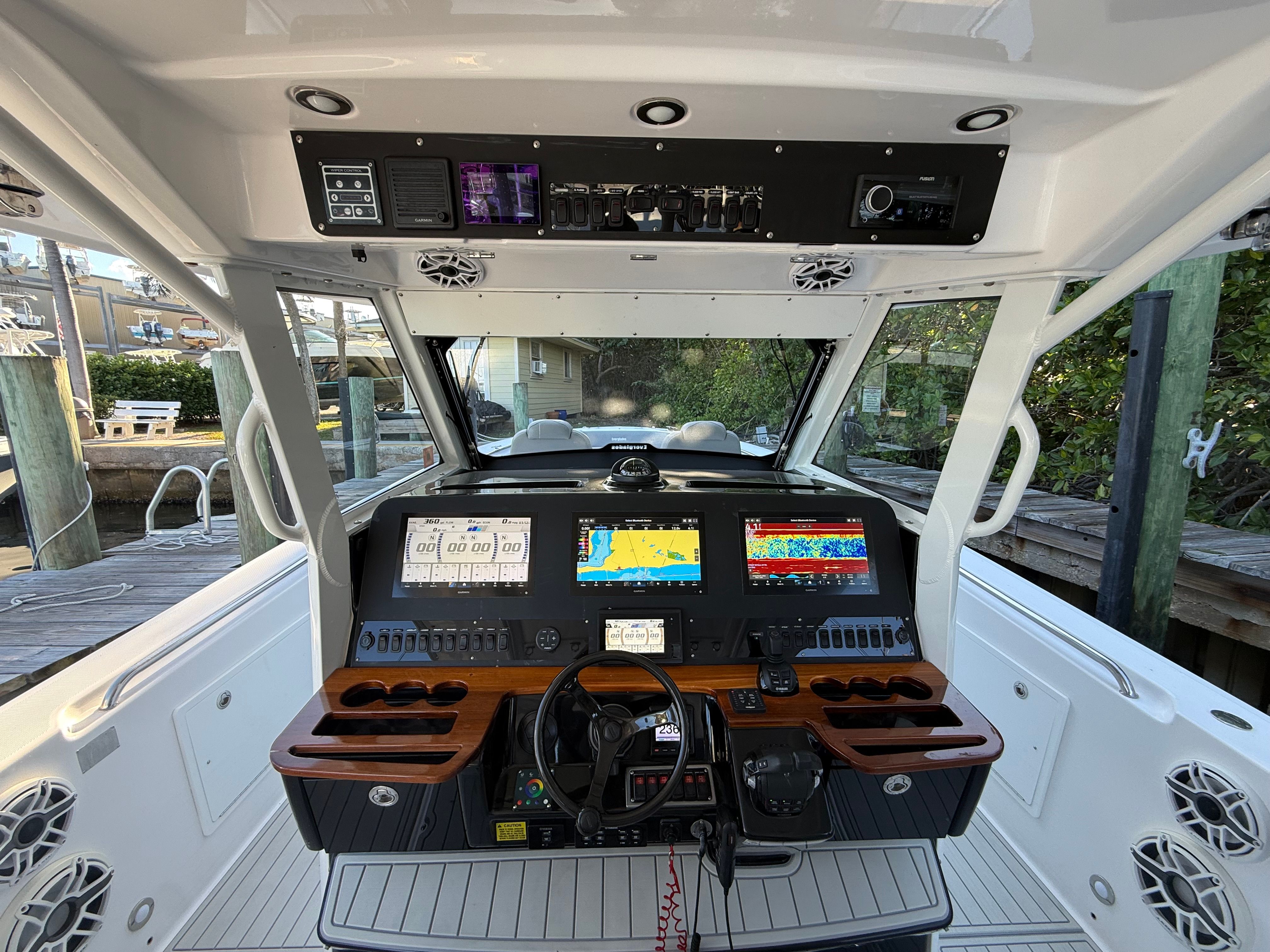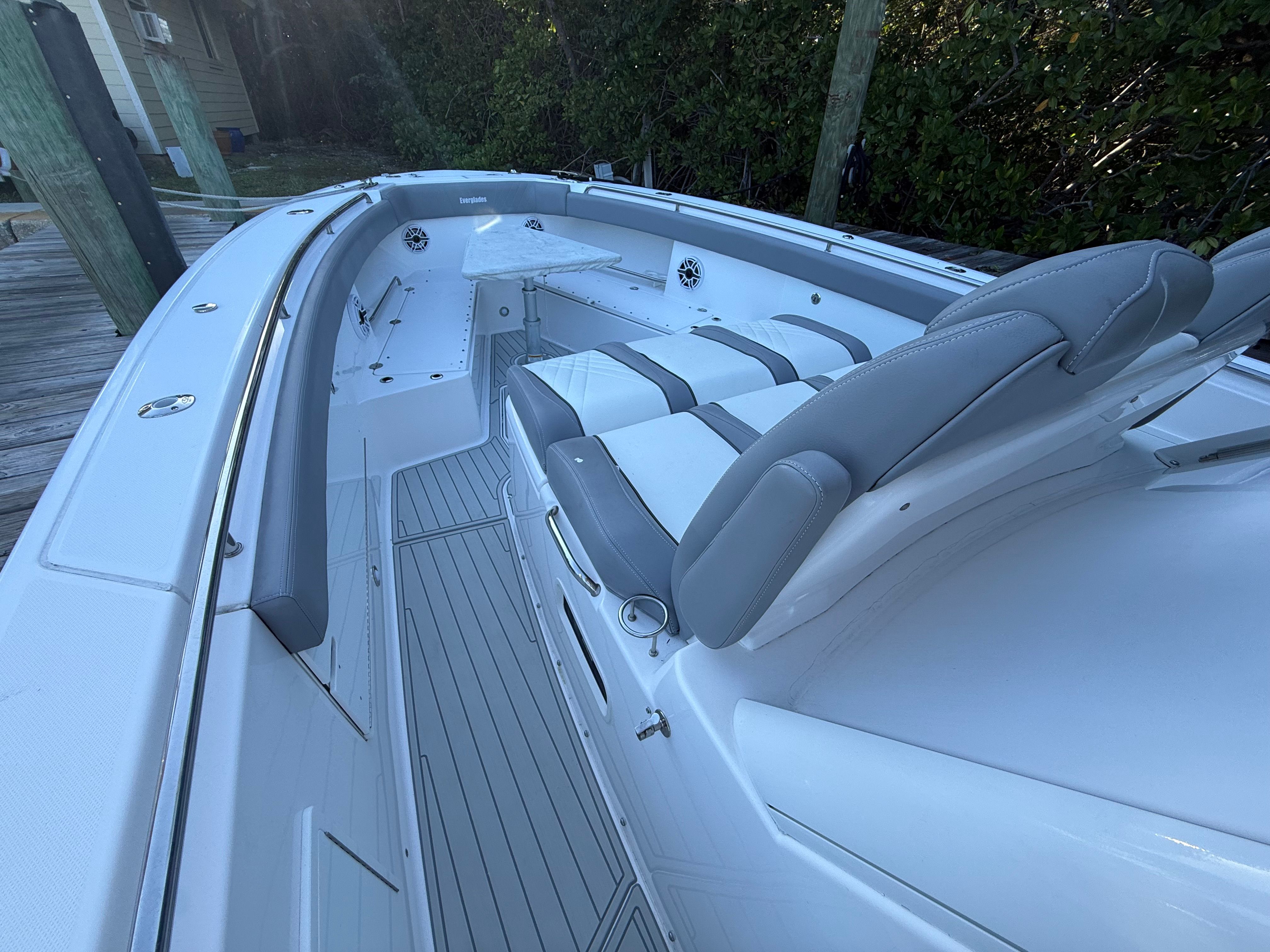 ** NEW TO THE MARKET ** 2021 EVERGLADES 435 CC | QUAD YAMAHA 425 XTO | (960) CURRENT HOURS | FULL (1000) HOUR SERVICE COMPLETED JULY, 2025 | YAMAHA EXTENDED WARRANTIES EXPIRE JULY, 2027 | YAMAHA HELMASTER JOYSTICK CONTROLS | AWLGRIP BRIGHT ALUMINUM METALLIC PAINT | FLINT GRAY INTERIOR | TEAK TRIM PACKAGE | DUAL ROW RELEASE MARINE TEAK LADDER BACK SEATS | TRIPLE GARMIN 8616XSV SCREENS | GARMIN GT51M-TH CHIRP TRANSDUCERS | GARMIN 4' OPEN ARRAY FANTOM 54 RADAR | GARMIN AUTO PILOT | GARMIN VHF 315 | GARMIN AIS TRANSDUCER | NEW FUSION STEREO UNIT (JULY, 2025) | NEW KOHLER 5KW GENERATOR (JULY, 2025) | GENERATOR WARRANTY EXPIRES JULY, 2030 | SEAKEEPER 6 STABILIZER (SERVICED JULY, 2025) | NEW SEADEK (JULY, 2025) | NEW STARLINK RECEIVER (JULY, 2025) | NEW BOLSTER CUSHIONS (JULY, 2025) | TEAK RETRACTABLE BOW TABLE | GEMLUX 22' RETRACTABLE OUTRIGGERS | BOAT IS BOTTOM PAINTED | SALES CONTACT - CHRIS FRAMBES 772.528.0840