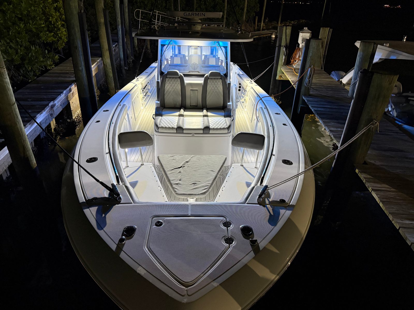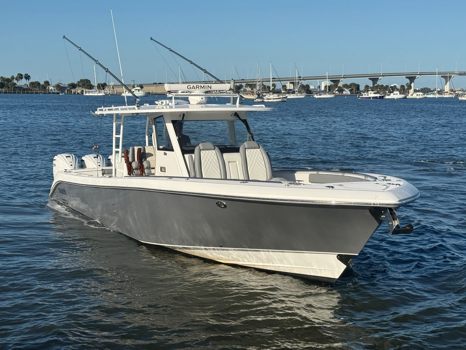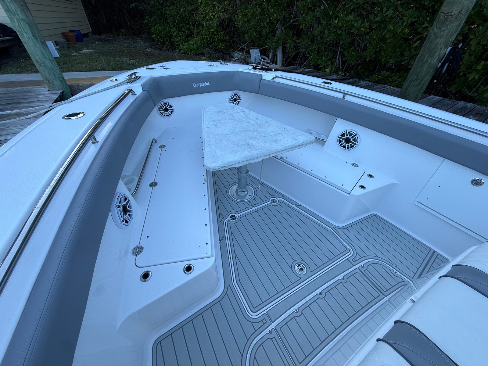 ** NEW TO THE MARKET ** 2021 EVERGLADES 435 CC | QUAD YAMAHA 425 XTO | (960) CURRENT HOURS | FULL (1000) HOUR SERVICE COMPLETED JULY, 2025 | YAMAHA EXTENDED WARRANTIES EXPIRE JULY, 2027 | YAMAHA HELMASTER JOYSTICK CONTROLS | AWLGRIP BRIGHT ALUMINUM METALLIC PAINT | FLINT GRAY INTERIOR | TEAK TRIM PACKAGE | DUAL ROW RELEASE MARINE TEAK LADDER BACK SEATS | TRIPLE GARMIN 8616XSV SCREENS | GARMIN GT51M-TH CHIRP TRANSDUCERS | GARMIN 4' OPEN ARRAY FANTOM 54 RADAR | GARMIN AUTO PILOT | GARMIN VHF 315 | GARMIN AIS TRANSDUCER | NEW FUSION STEREO UNIT (JULY, 2025) | NEW KOHLER 5KW GENERATOR (JULY, 2025) | GENERATOR WARRANTY EXPIRES JULY, 2030 | SEAKEEPER 6 STABILIZER (SERVICED JULY, 2025) | NEW SEADEK (JULY, 2025) | NEW STARLINK RECEIVER (JULY, 2025) | NEW BOLSTER CUSHIONS (JULY, 2025) | TEAK RETRACTABLE BOW TABLE | GEMLUX 22' RETRACTABLE OUTRIGGERS | BOAT IS BOTTOM PAINTED | SALES CONTACT - CHRIS FRAMBES 772.528.0840