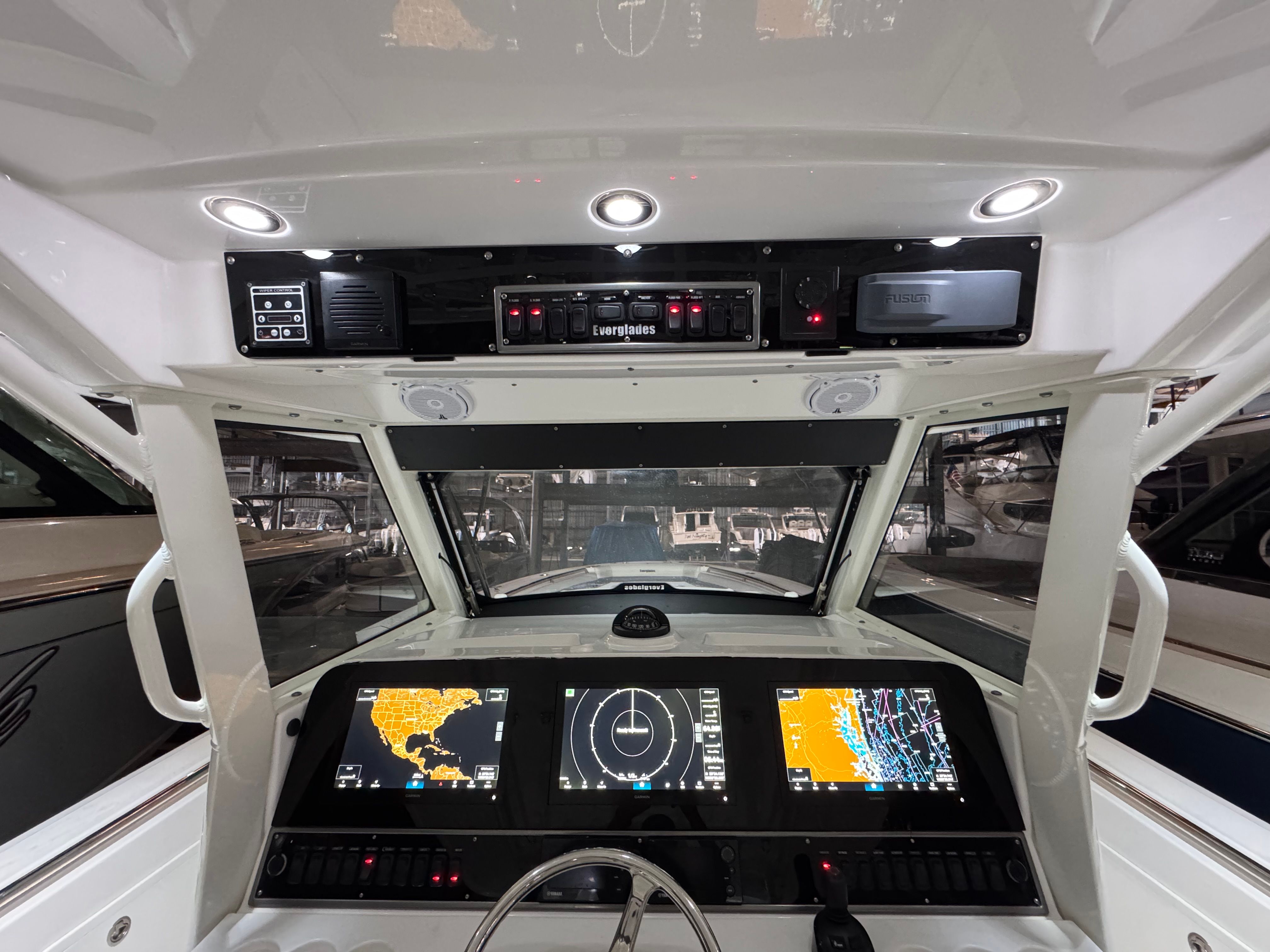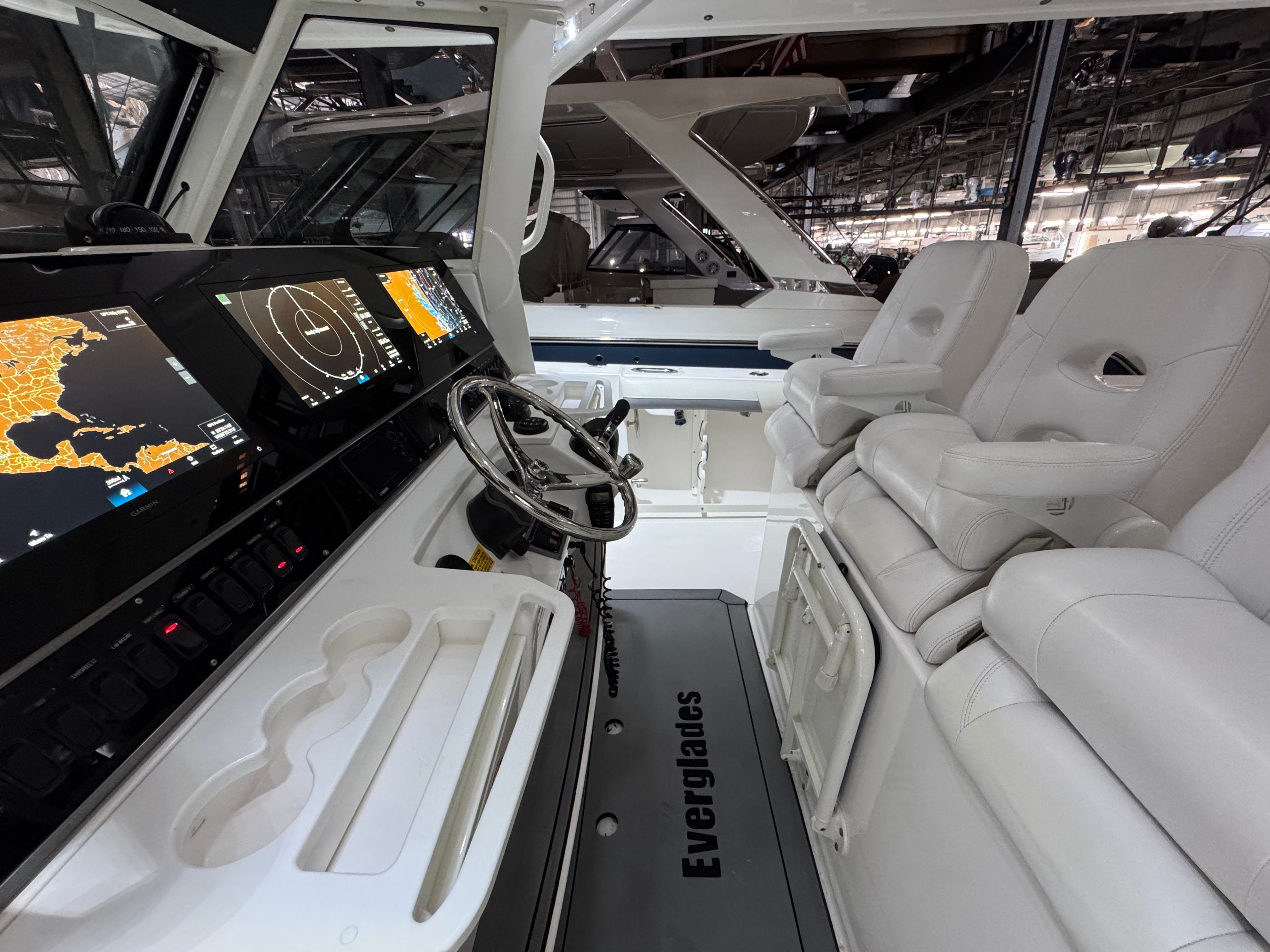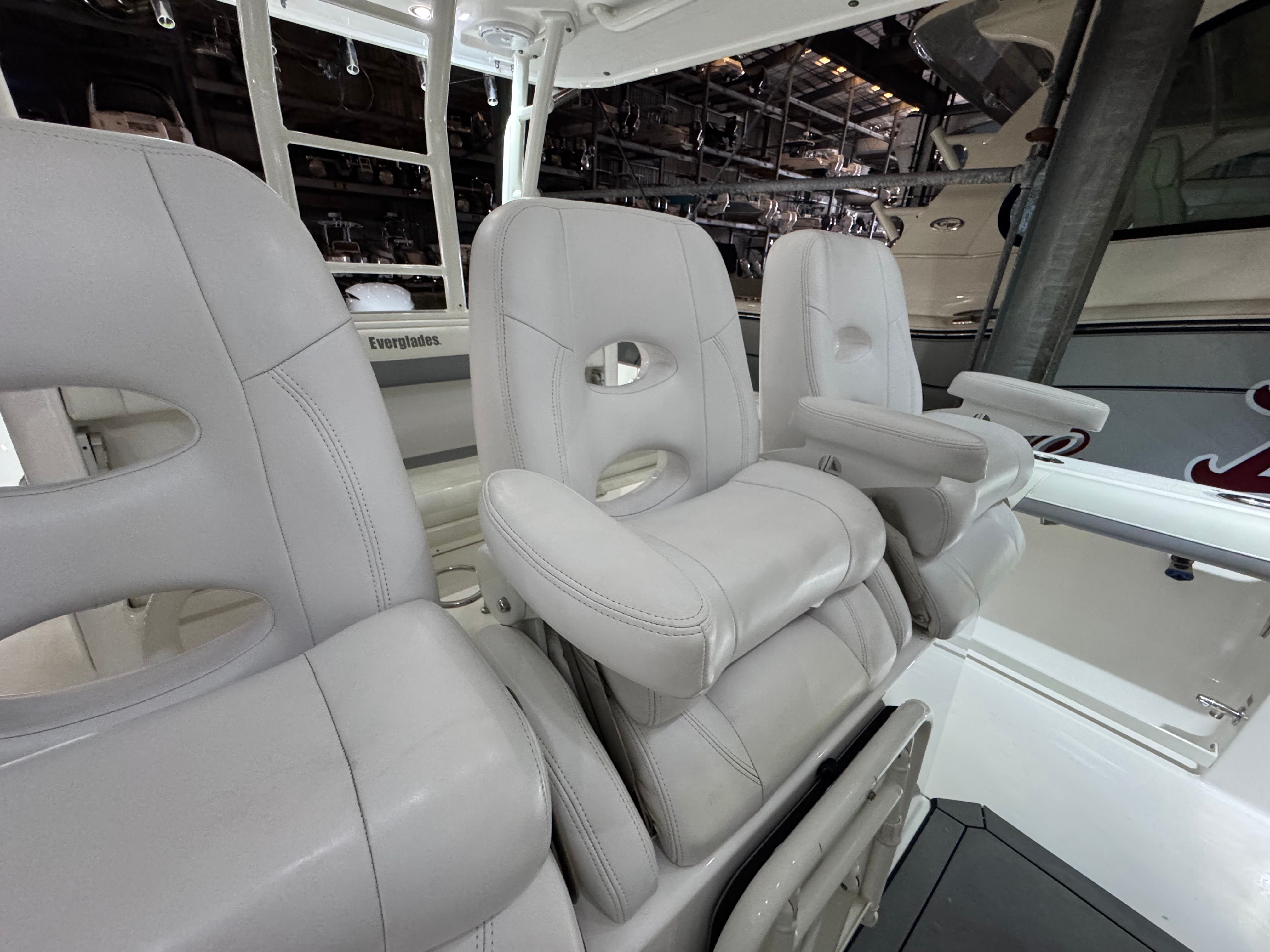 Inside dry stored and it shows!!!! Immaculate! Brand new triple Garmin 8616's just installed 03/26! Beautiful 435CC painted in Caribbean Blue Metallic custom from Everglades, no fading! Custom painted white quad Yamaha F350's with only 700hrs and all service records and updates, she is a beast! " Kingdom Business II " is one of a very few 435's in this year range that have joystick and setpoint, most will not have setpoint. This beauty comes with a full upper station equipped will full controls including joystick and a Garmin display. She has been kept in the high and dry her entire life and briefly on a lift, NO bottom paint. She is fish ready as we speak and priced to sell immediately, you will not be disappointed! Full list of options include: