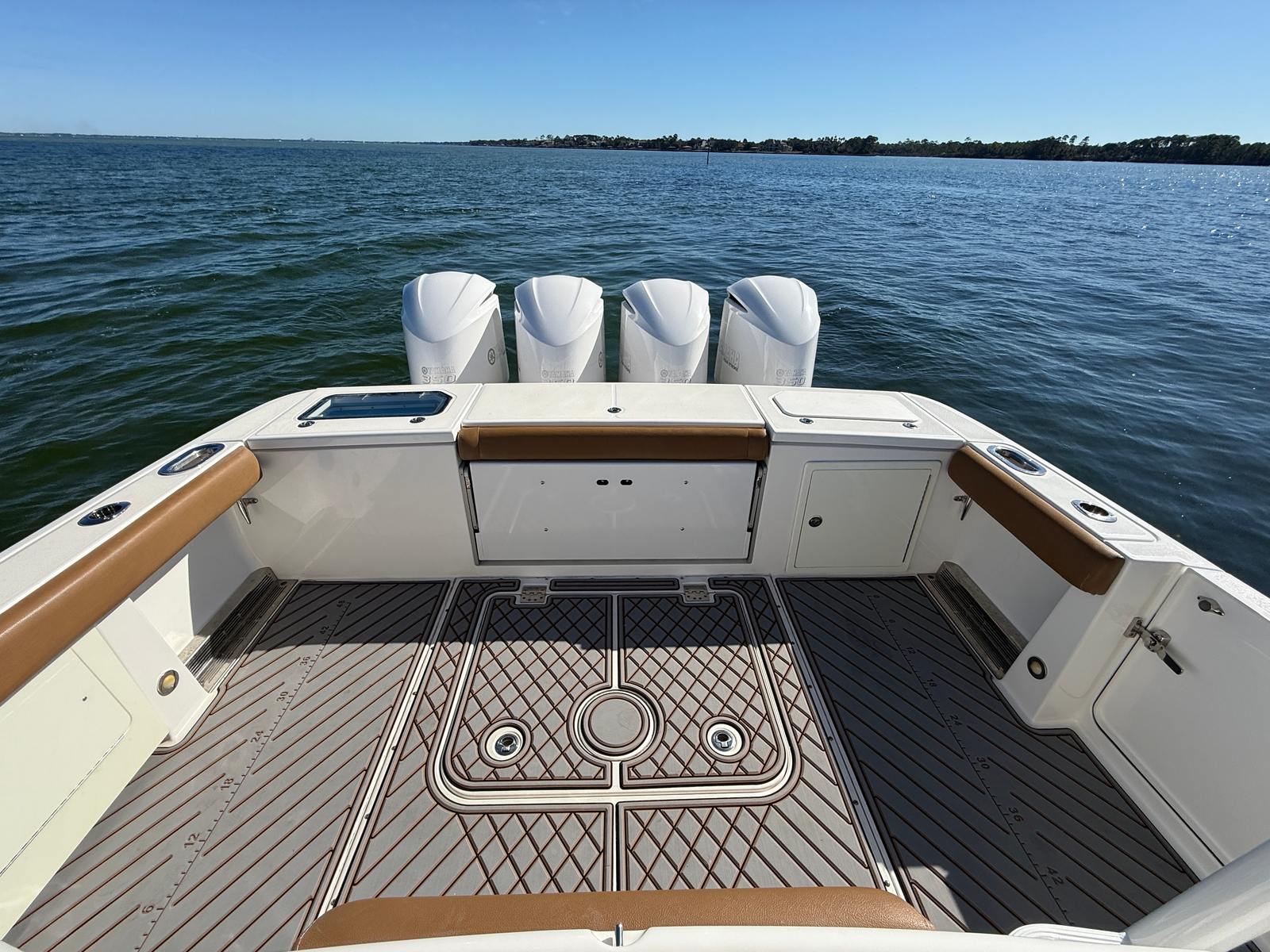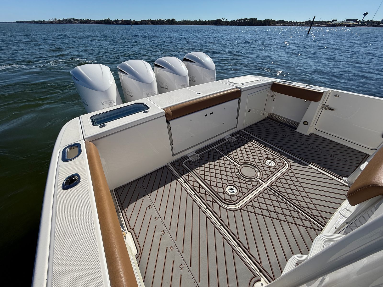 Power and performance are at the heart of the Everglades 435 CC. Equipped with four high-performance engines delivering a combined 1,400 horsepower, this center console boat is built to conquer the open seas with confidence and speed. The quad-engine setup provides exceptional acceleration, smooth cruising, and impressive top-end speed, making it ideal for long offshore runs, tournament fishing, or simply enjoying a thrilling ride with friends and family. With 500 engine hours, these engines have been maintained to ensure reliable performance and longevity. The advanced hull design ensures a dry, stable, and comfortable ride, even in challenging conditions, so you can focus on the adventure ahead.