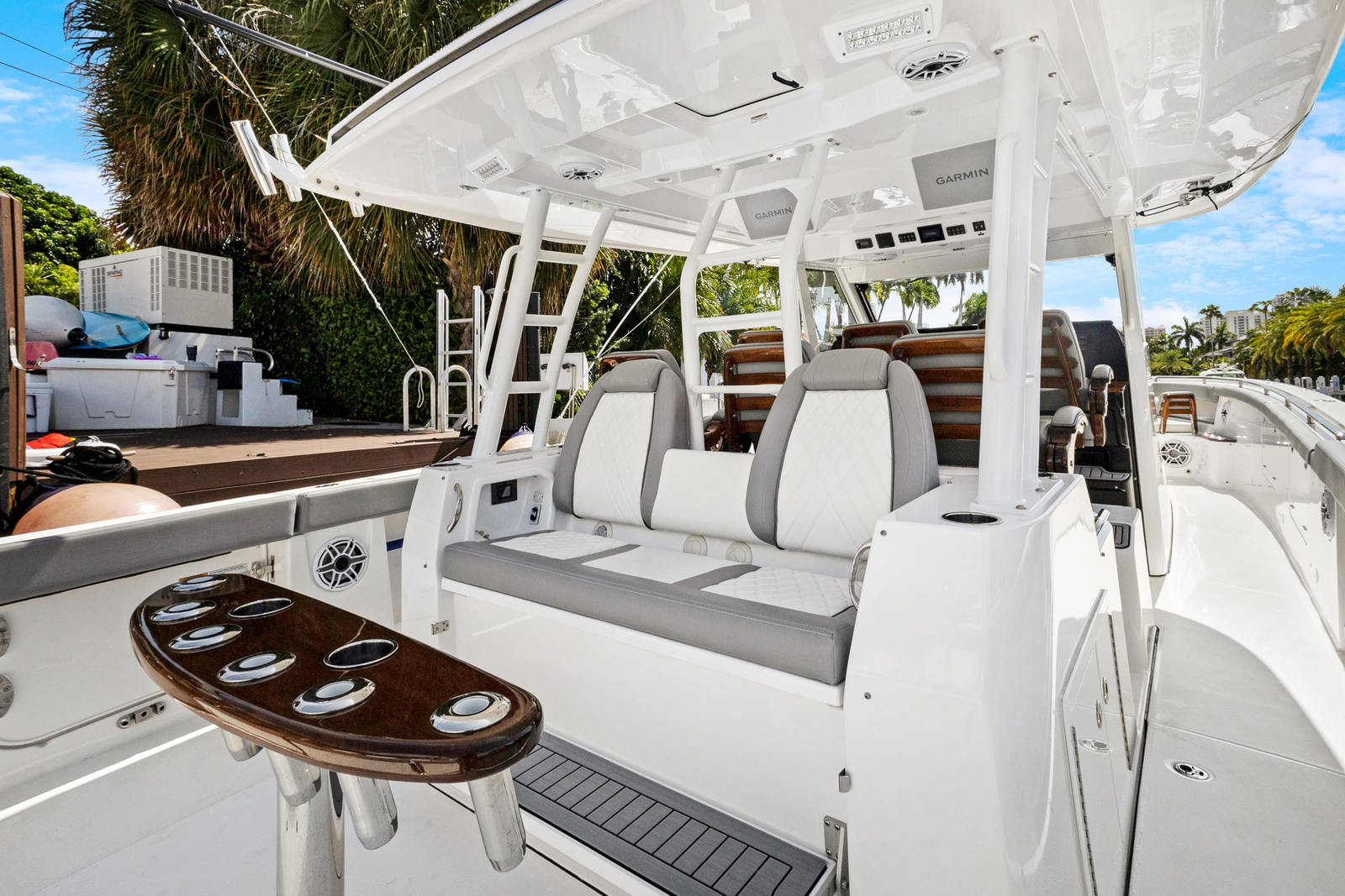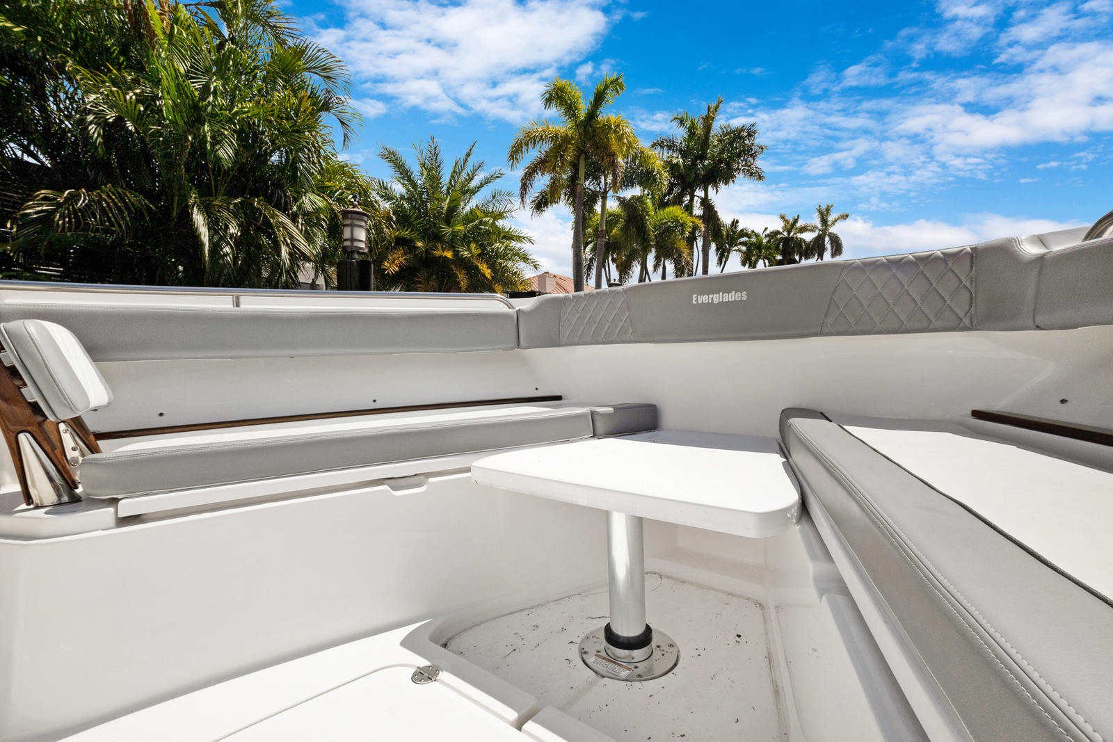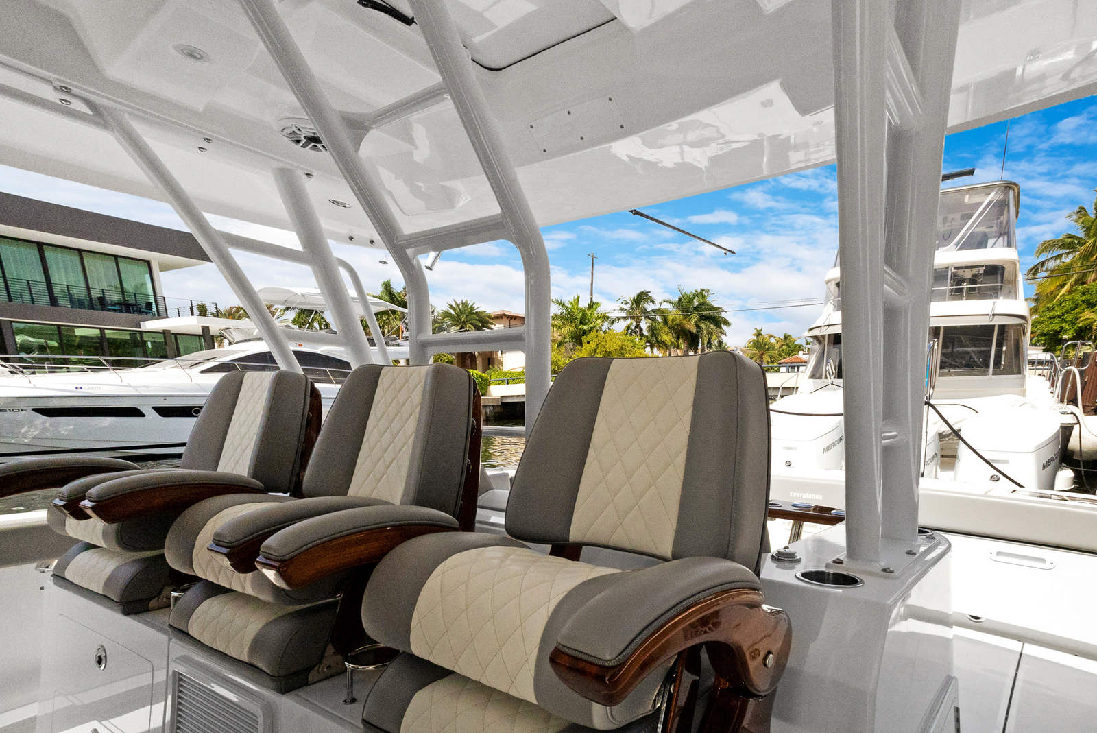 Practicality is at the core of the Everglades 455 CC’s design. The center console layout provides excellent visibility and control, making docking and maneuvering in tight spaces a breeze. Thoughtful storage solutions keep your gear organized and easily accessible, while the spacious deck allows for effortless movement during fishing trips or social gatherings. The triple-engine setup not only delivers outstanding performance but also offers redundancy and peace of mind for longer journeys.Fuel efficiency is enhanced by the advanced hull design, allowing you to spend more time on the water and less time at the fuel dock. The durable construction and high-quality materials ensure that this Everglades boat for sale will stand up to the rigors of frequent use, providing years of reliable service and enjoyment.