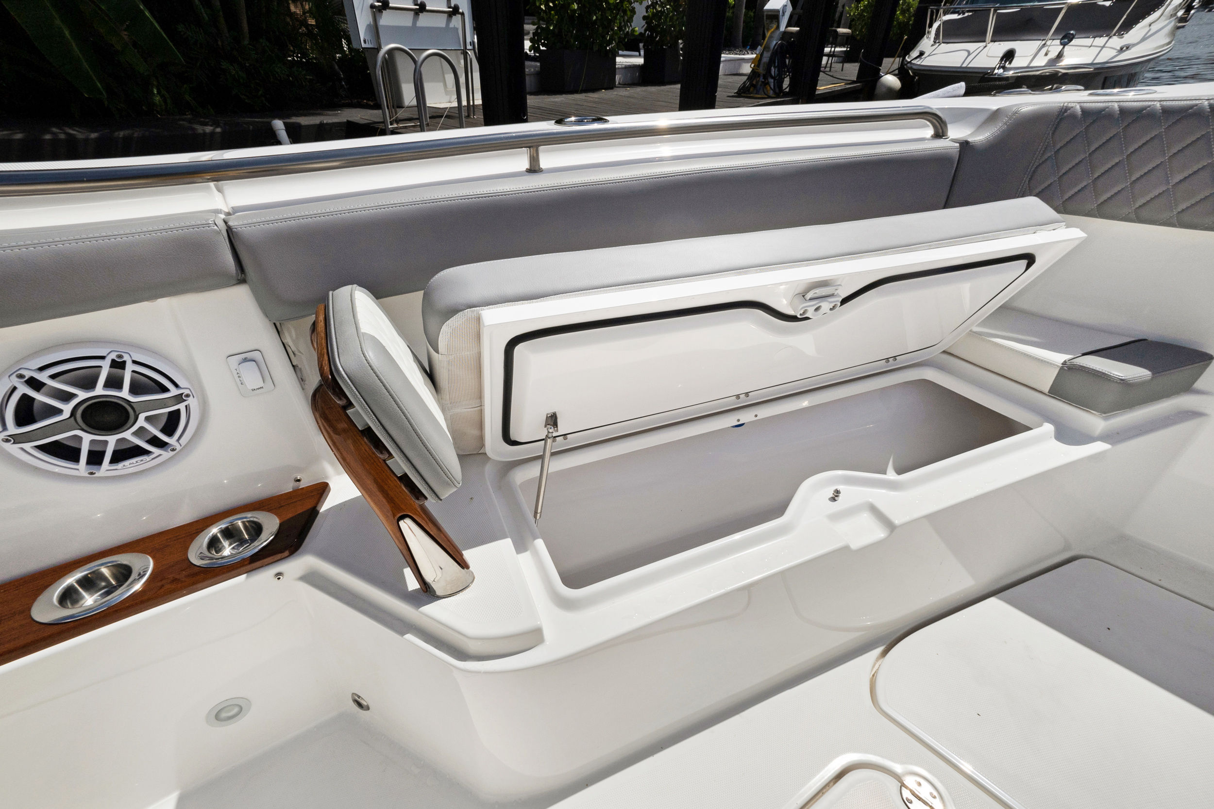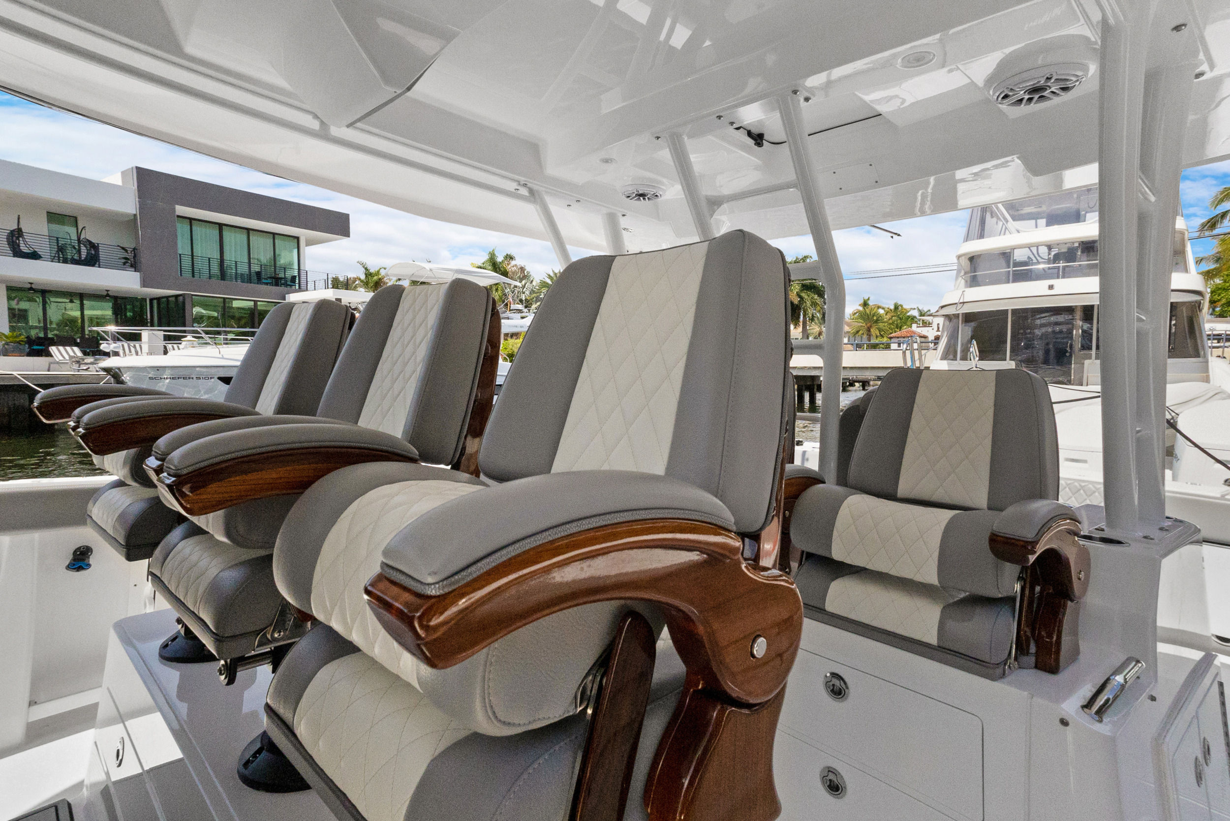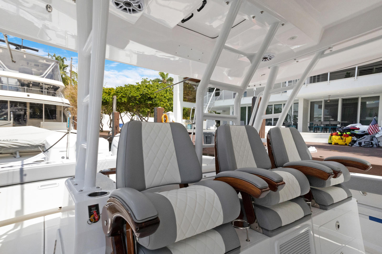 Practicality is at the core of the Everglades 455 CC’s design. The center console layout provides excellent visibility and control, making docking and maneuvering in tight spaces a breeze. Thoughtful storage solutions keep your gear organized and easily accessible, while the spacious deck allows for effortless movement during fishing trips or social gatherings. The triple-engine setup not only delivers outstanding performance but also offers redundancy and peace of mind for longer journeys.Fuel efficiency is enhanced by the advanced hull design, allowing you to spend more time on the water and less time at the fuel dock. The durable construction and high-quality materials ensure that this Everglades boat for sale will stand up to the rigors of frequent use, providing years of reliable service and enjoyment.