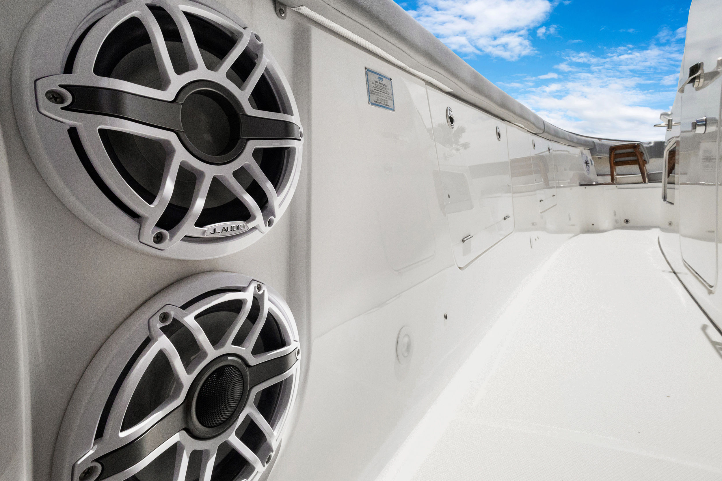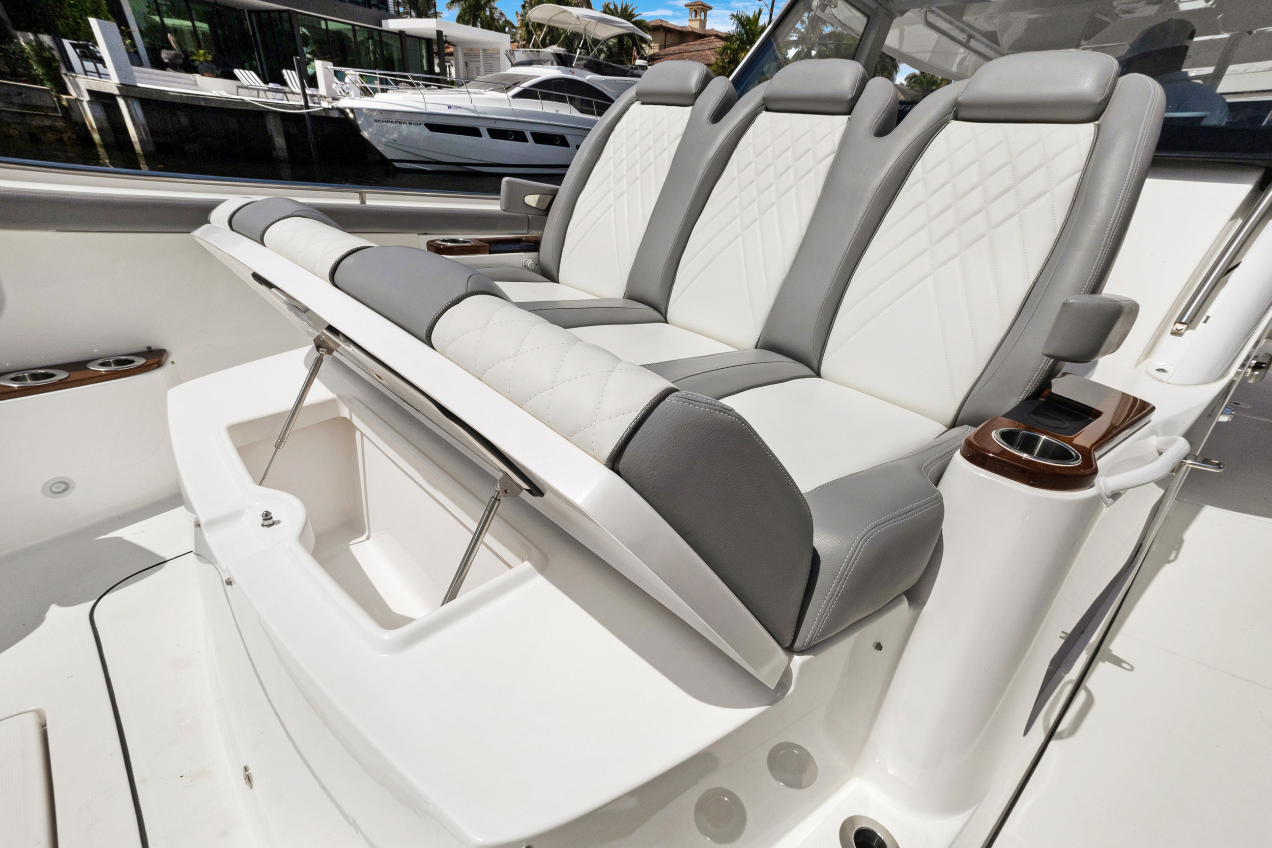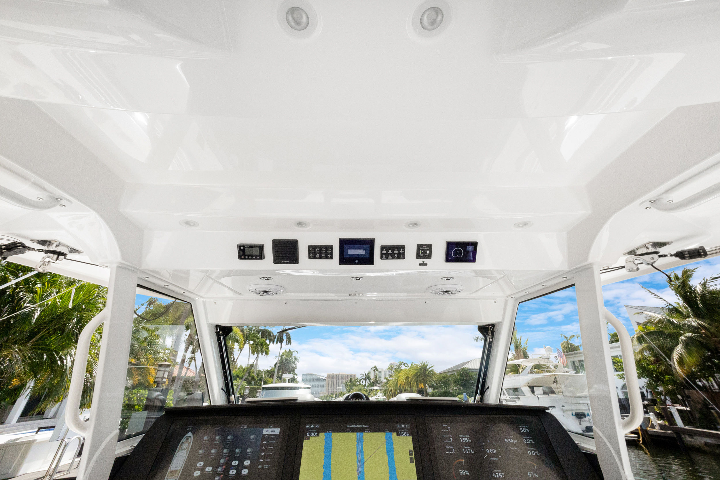 At the heart of the Everglades 455 CC are three powerful engines, delivering a combined 1800 horsepower. This impressive setup ensures exhilarating speed, smooth acceleration, and the ability to handle a variety of sea conditions with confidence. Whether you are cruising to your favorite fishing spot, island hopping, or simply enjoying a day on the water, the 455 CC’s triple-engine configuration provides the reliability and performance that serious boaters demand. The advanced hull design enhances stability and maneuverability, allowing you to navigate with ease and precision.