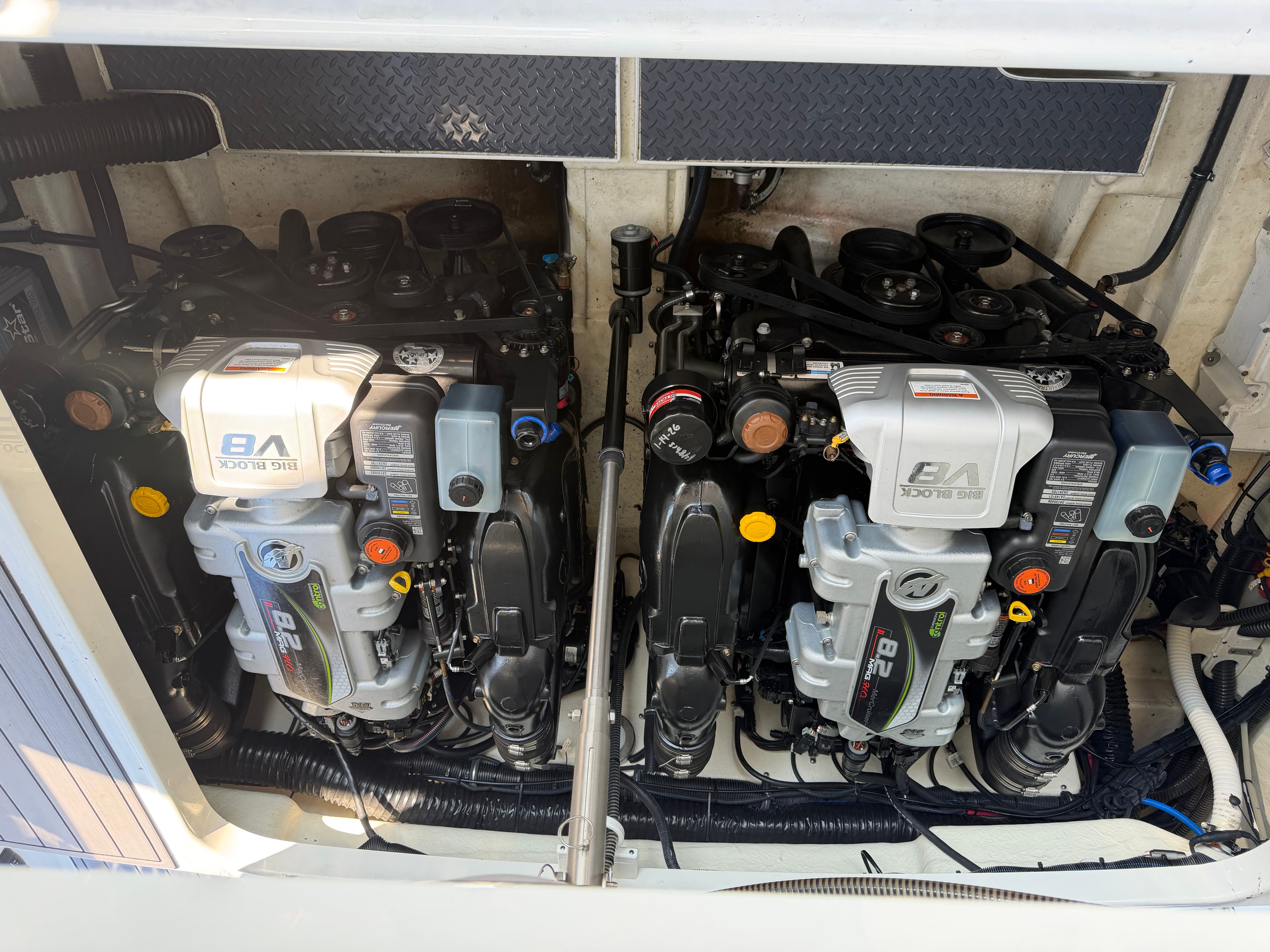 Power and precision define the Formula 350 Cross Over BR. Equipped with a robust engine package delivering a total of 960 horsepower, this Bowrider is engineered for thrilling performance and smooth handling. The impressive horsepower ensures quick acceleration, responsive maneuvering, and the ability to cruise effortlessly at higher speeds. With only 150 engine hours, the engines are well-maintained and ready to provide many more seasons of reliable performance. Whether you are slicing through waves or enjoying a leisurely cruise, the 350 Cross Over BR offers a dynamic and exhilarating ride that will satisfy even the most discerning boating enthusiasts.