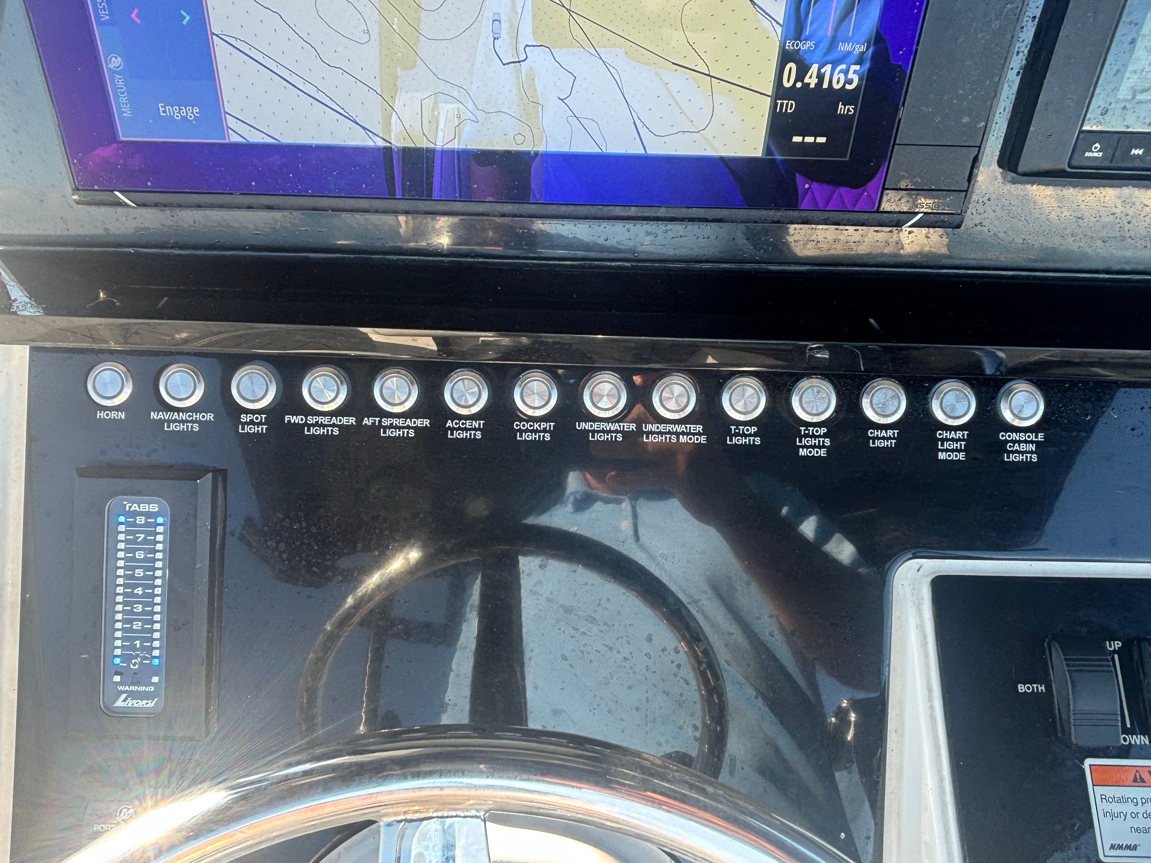At the heart of this Fountain 34 TE are two powerful engines, delivering a combined 600 horsepower. With 690 engine hours, these motors have proven their reliability and are ready to provide many more exhilarating journeys. The dual-engine setup ensures robust acceleration, smooth cruising, and impressive top speeds, making this Center Console boat for sale an ideal companion for offshore fishing, island hopping, or simply enjoying a fast-paced ride along the coast. Whether you’re navigating choppy waters or gliding across calm bays, the Fountain 34 TE’s performance is engineered to impress.