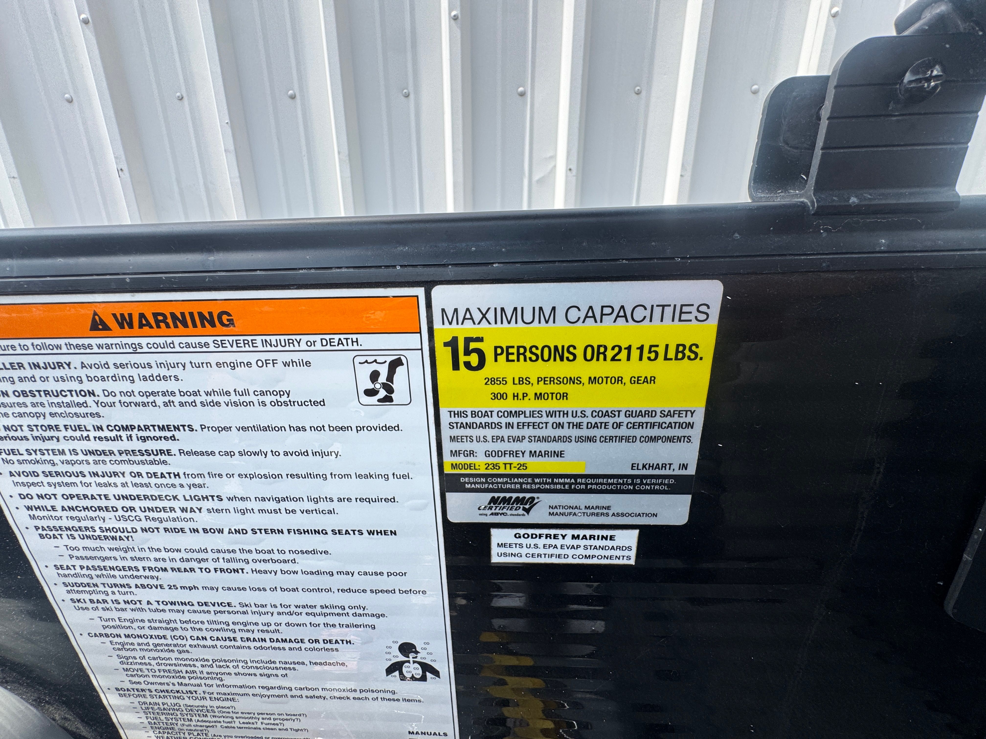 The 2021 Godfrey MC 235 SB is a standout pontoon boat for sale that combines style, performance, and versatility in one impressive package. With its 24-foot length, powerful 200 HP engine, and low engine hours, this used Godfrey boat for sale is ready to deliver unforgettable moments on the water. Special features such as plush seating and a thoughtfully designed helm enhance comfort and convenience, making every outing enjoyable.Whether you are seeking adventure, relaxation, or a little bit of both, the Godfrey MC 235 SB is equipped to meet your needs. Don’t miss your chance to own a high-quality pontoon boat that promises years of fun and excitement. Contact the dealer today to learn more about this exceptional vessel and start planning your next boating adventure!